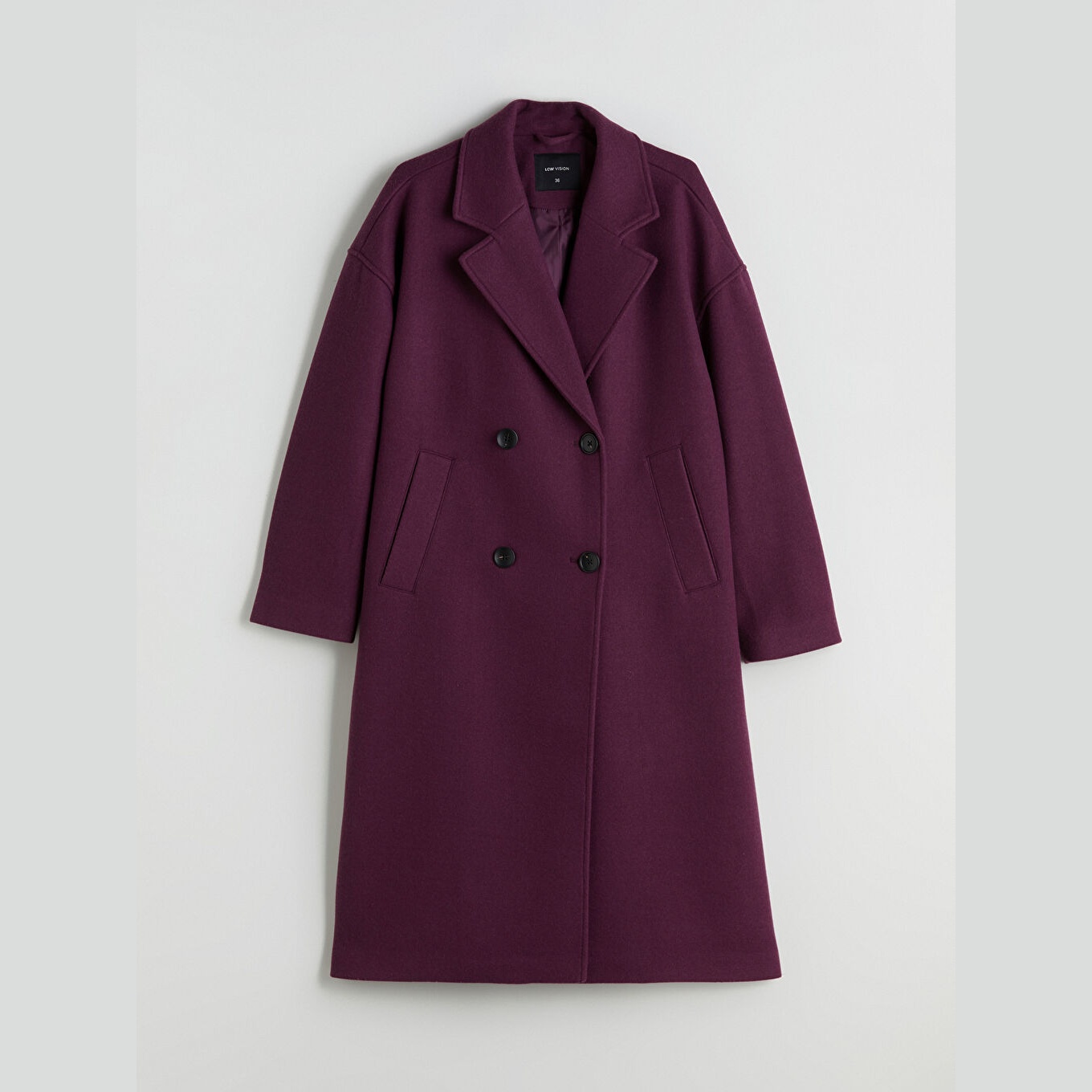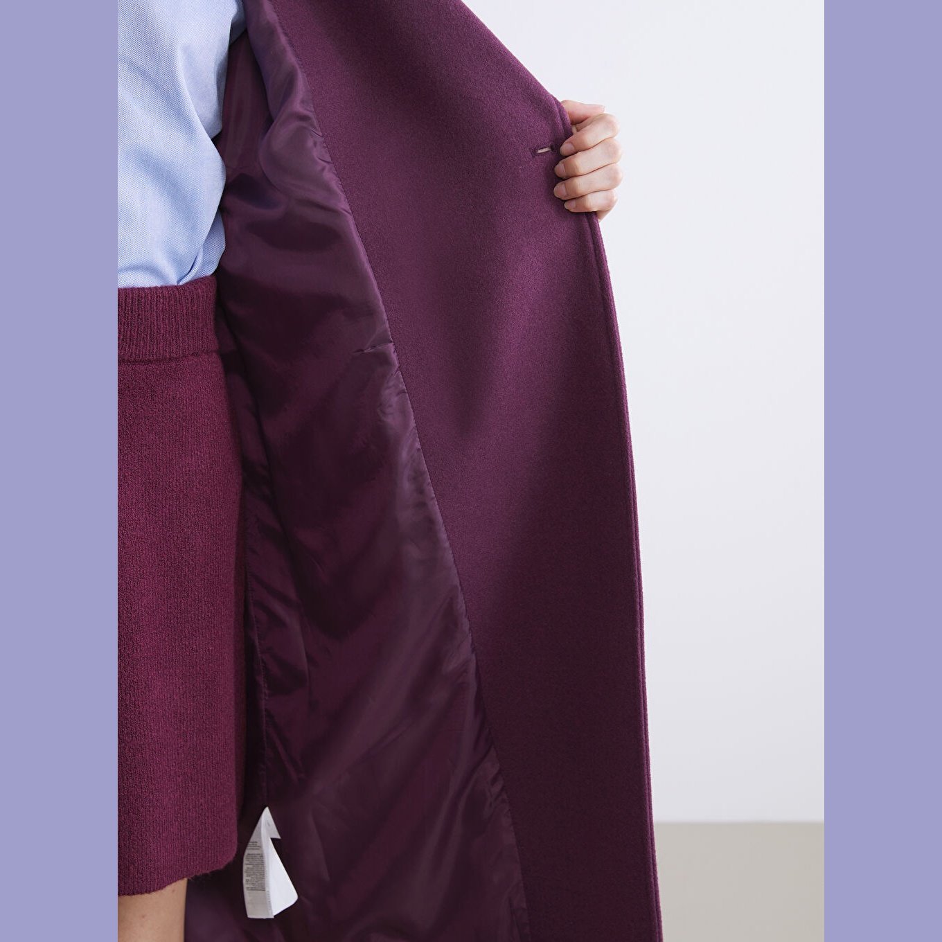 معطف بلون مُرَدّي من مجموعة LCW Vision، مصمم بياقة كروّاز تضيف لمسة فاخرة وعصرية، قصة واسعة (Loose & Bol) تمنحك مظهرًا محتشمًا وانسيابيًا، خامة كاشمير صناعي من %100 بوليستر، مبطّن بالكامل بـ%100 بوليستر، تصميم سادة بدون نقوش، بطول ميدي يُقاس من الكتف، بدون قبعة، مزود بأزرار أمامية، مثالي للإطلالات الشتوية الرسمية أو العملية.