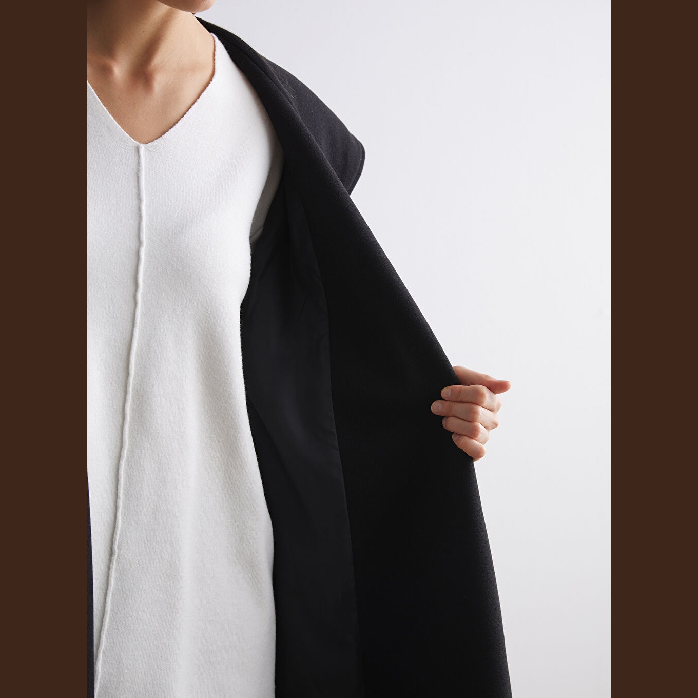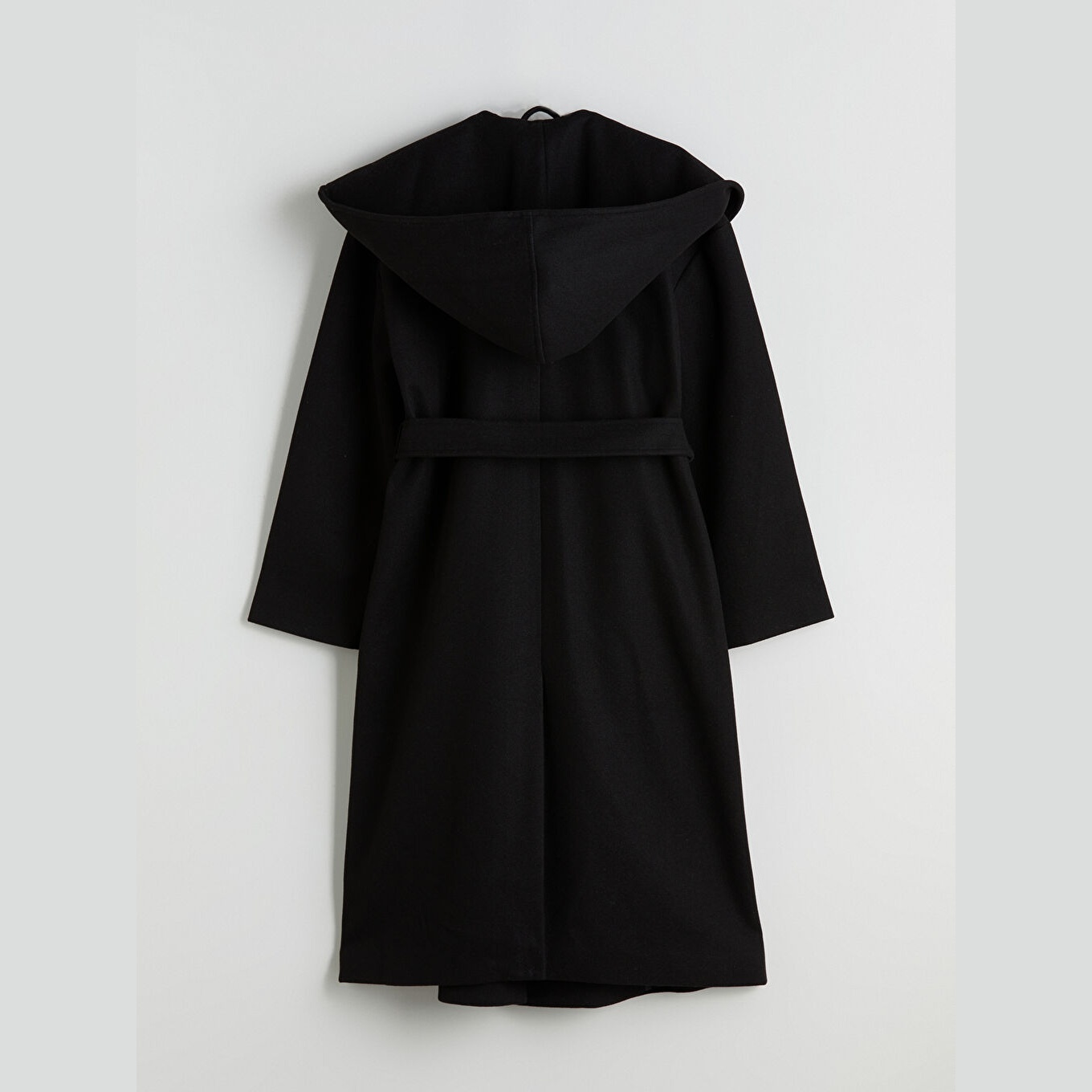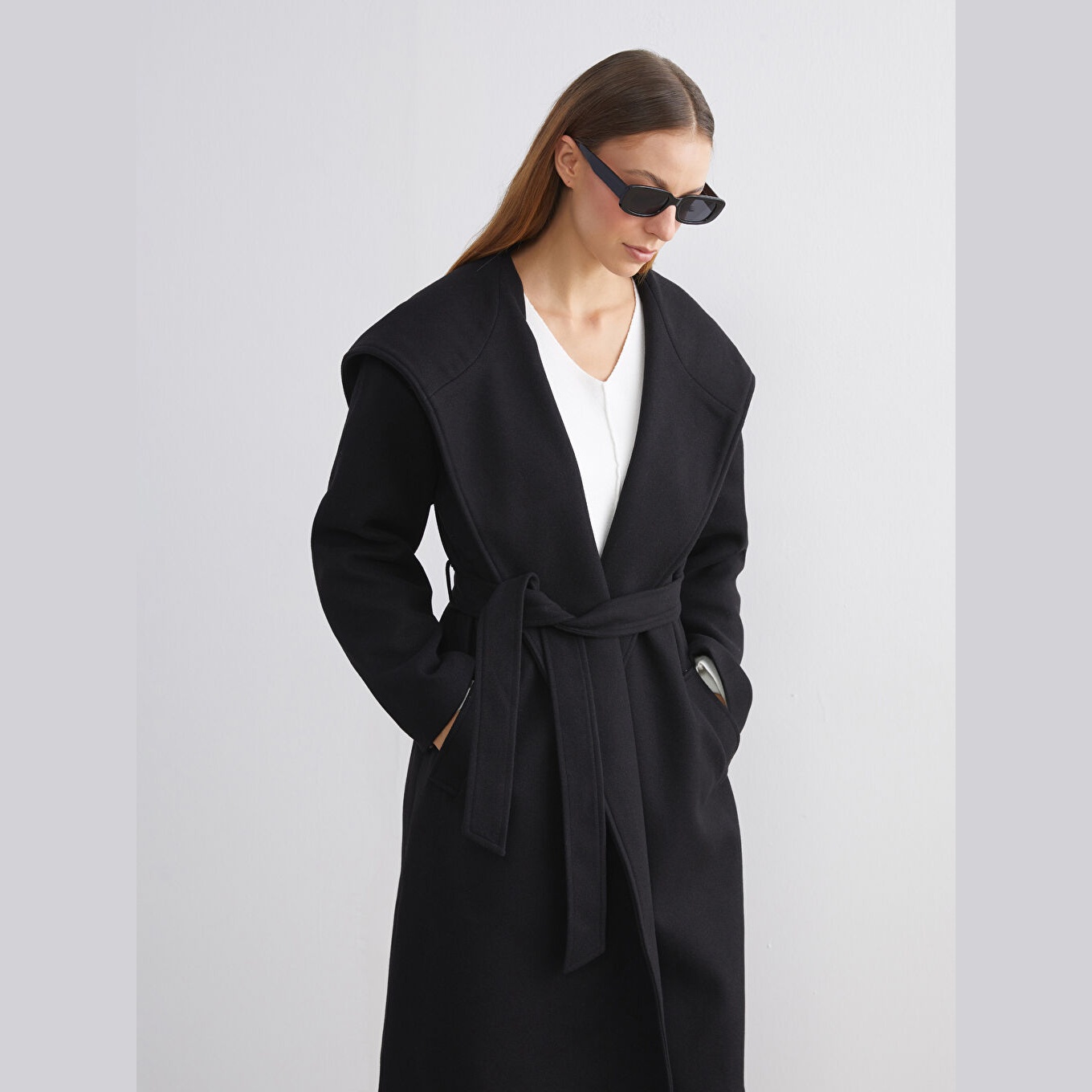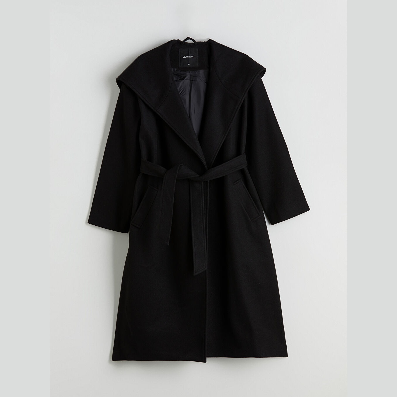 معطف بلون أسود من مجموعة LCW Modest – الأزياء المحتشمة، مصمم بياقة كلاسيكية مع قبعة ثابتة، قصة واسعة (Loose & Bol) تمنحك مظهرًا محتشمًا وانسيابيًا، خامة كاشمير صناعي من %100 بوليستر، مبطّن بالكامل بـ%100 بوليستر، تصميم سادة بدون نقوش، بطول طويل يُقاس من الكتف، مزود بأزرار أمامية وحزام خارجي، يتكون من قطعتين (المعطف + الحزام)، مثالي للإطلالات الشتوية المحتشمة والرسمية.