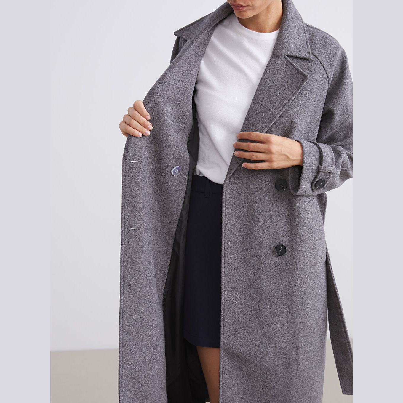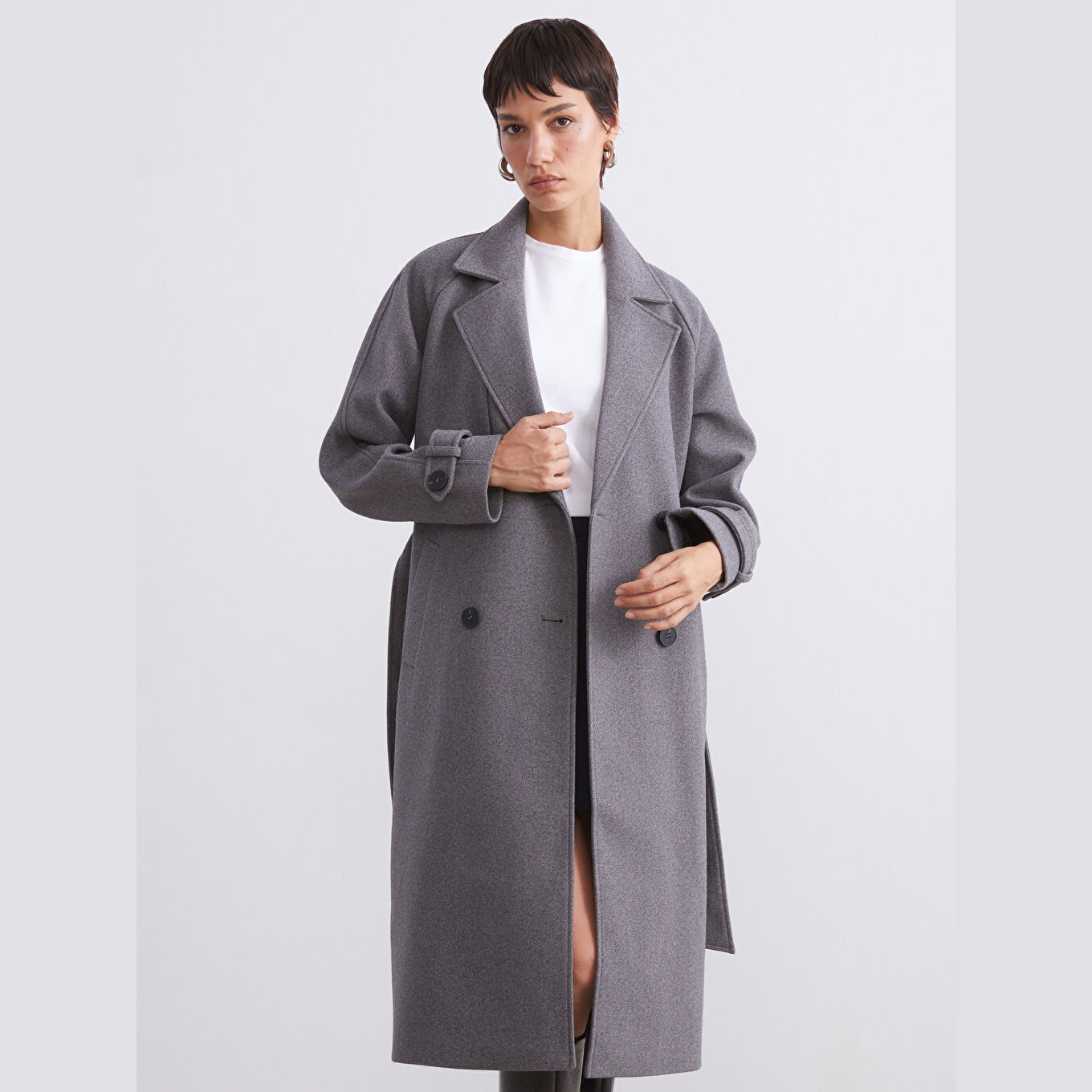 معطف بلون رمادي من مجموعة LCW Vision، مصمم بياقة جاكيت كلاسيكية تضيف لمسة رسمية، قصة أوفرسايز واسعة جدًا (Oversize) تمنحك مظهرًا عصريًا ومريحًا، خامة كاشمير صناعي من %100 بوليستر، مبطّن بالكامل بـ%100 بوليستر، تصميم سادة بدون نقوش، بطول طويل يُقاس من الكتف، بدون قبعة، مزود بأزرار أمامية وحزام خارجي، يتكون من قطعتين (المعطف + الحزام)، مثالي للإطلالات الشتوية الرسمية أو الكاجوال الراقية.