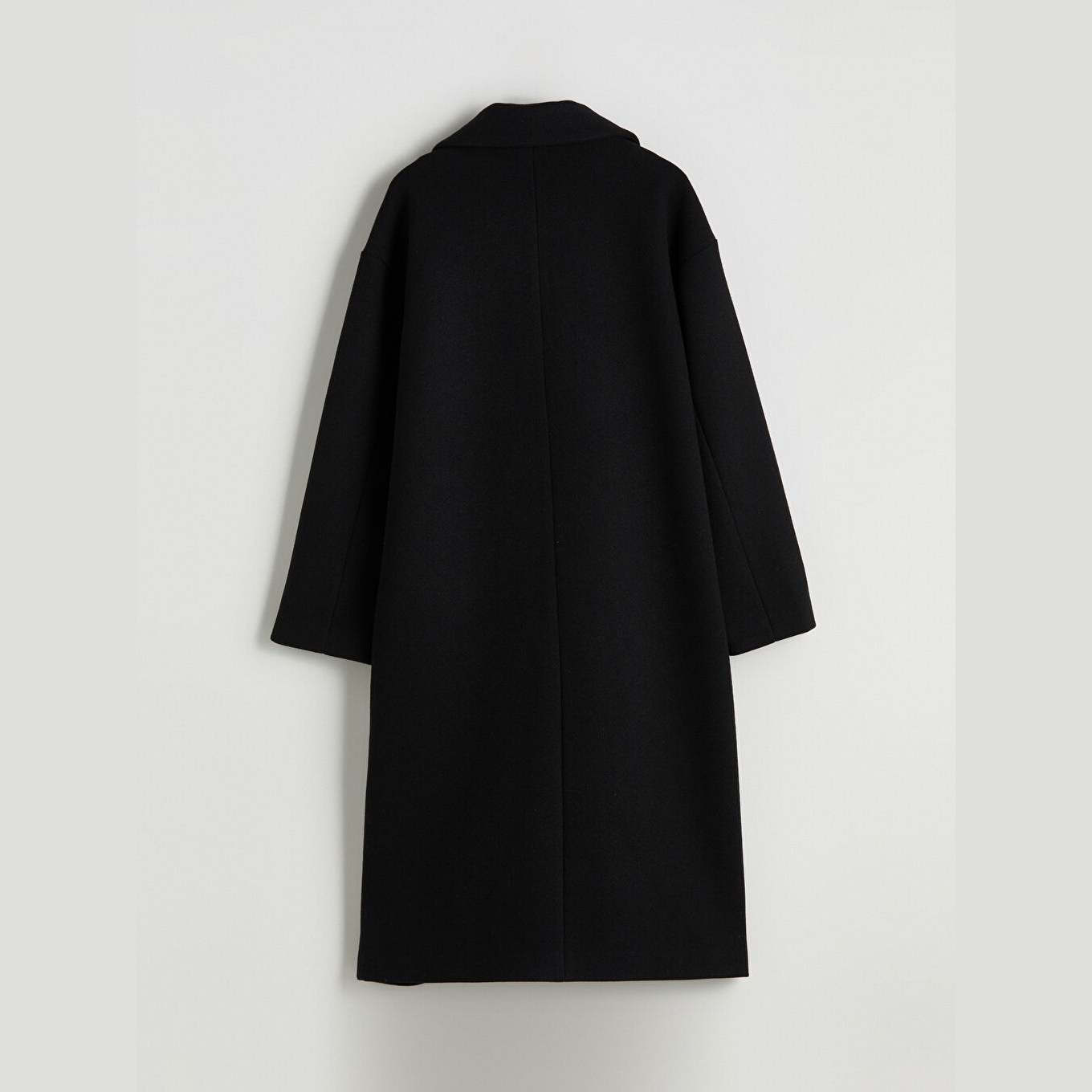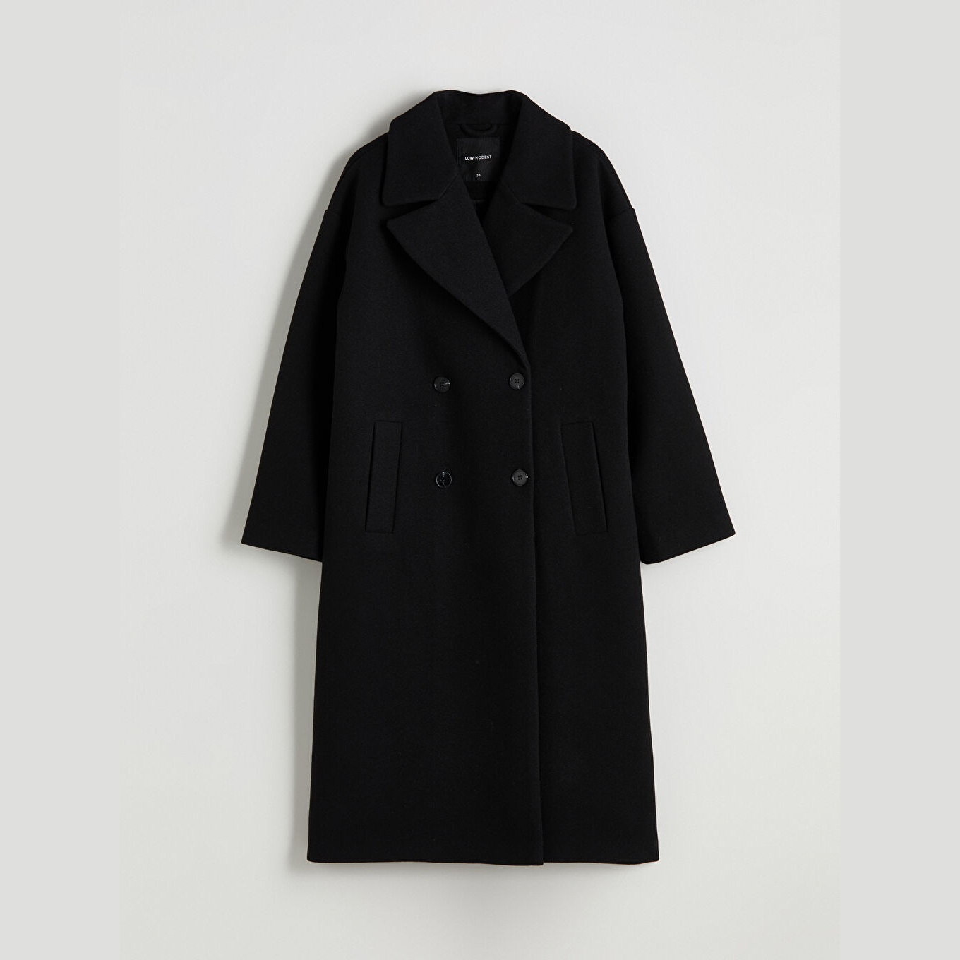 معطف بلون أسود من مجموعة LCW Modest – الأزياء المحتشمة، مصمم بياقة جاكيت كلاسيكية تضيف لمسة رسمية، قصة واسعة (Loose & Bol) تمنحك مظهرًا محتشمًا وانسيابيًا، خامة كاشمير صناعي من %100 بوليستر، مبطّن بالكامل بـ%100 بوليستر، تصميم سادة بدون نقوش، بطول طويل يُقاس من الكتف، بدون قبعة، مزود بأزرار أمامية، مثالي للإطلالات الشتوية المحتشمة والرسمية.
