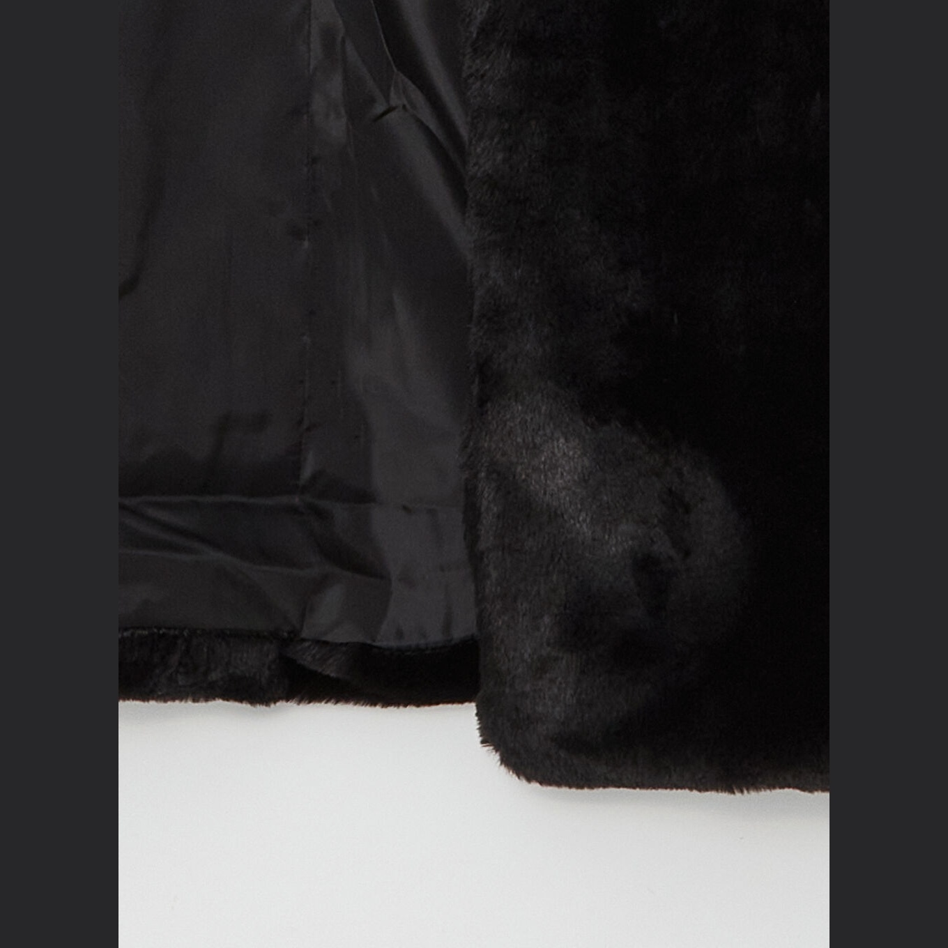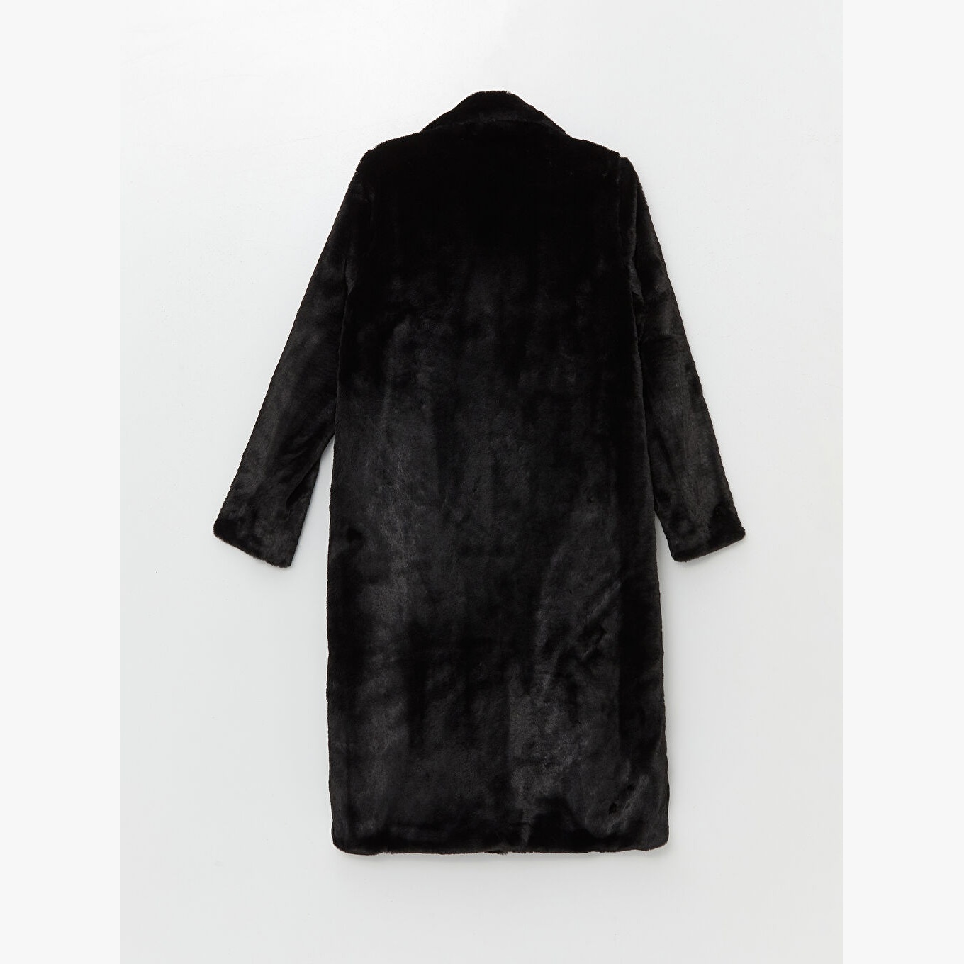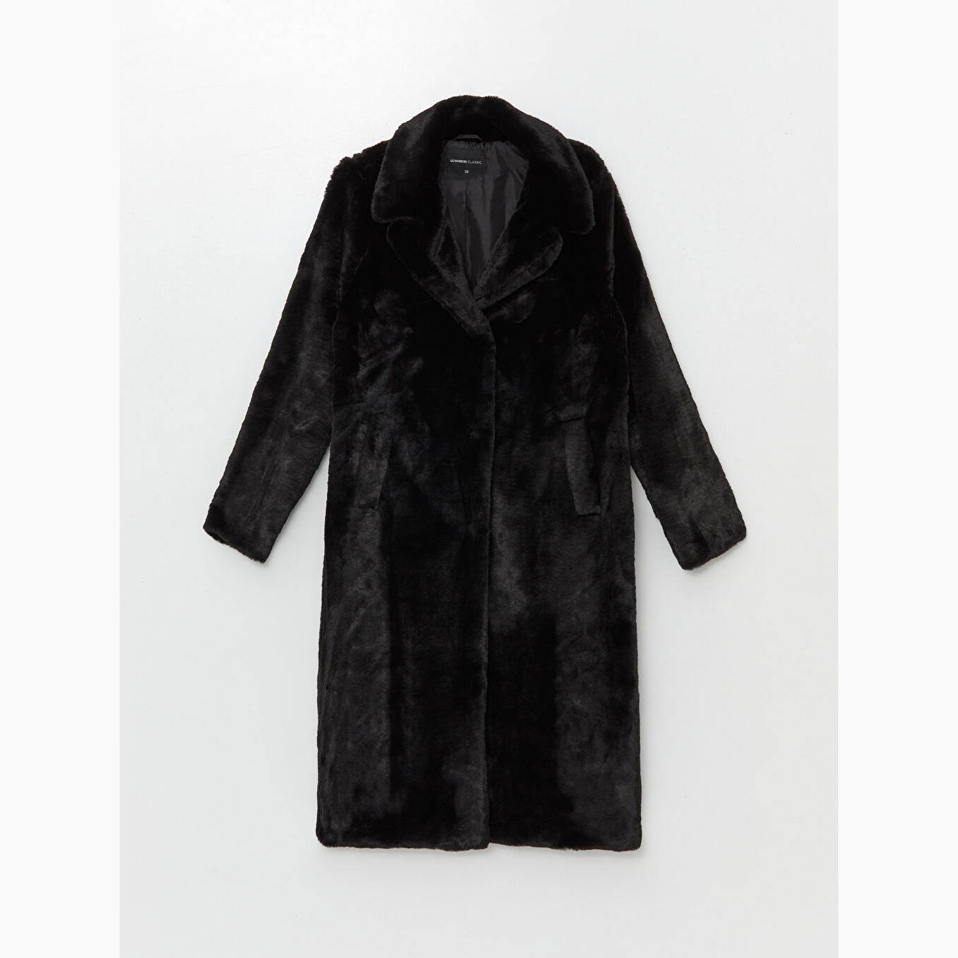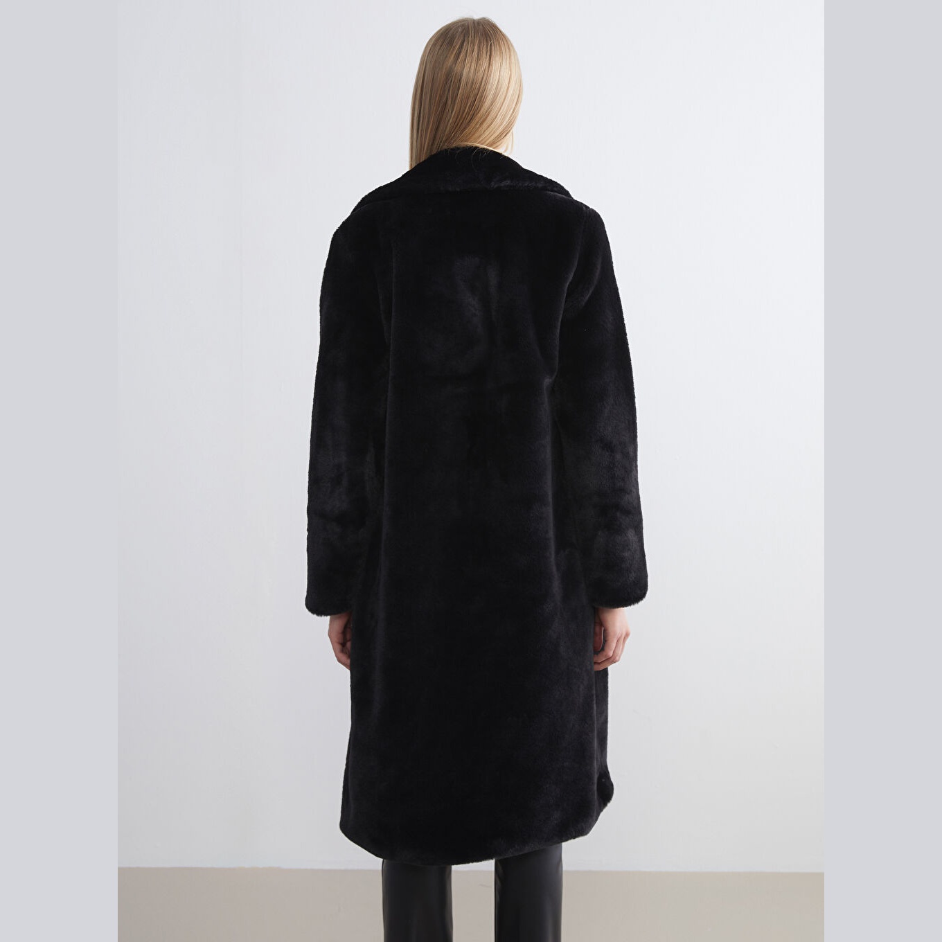 كاب نسائي بياقة جاكيت من LCW Classic – أسود (قصة قياسية، تصميم شتوي طويل، خامة فرو صناعي بسمك متوسط، مبطّن بالكامل، بدون قبعة، مثالي للإطلالات الرسمية والدافئة ضمن مجموعة المقاسات الكبيرة)