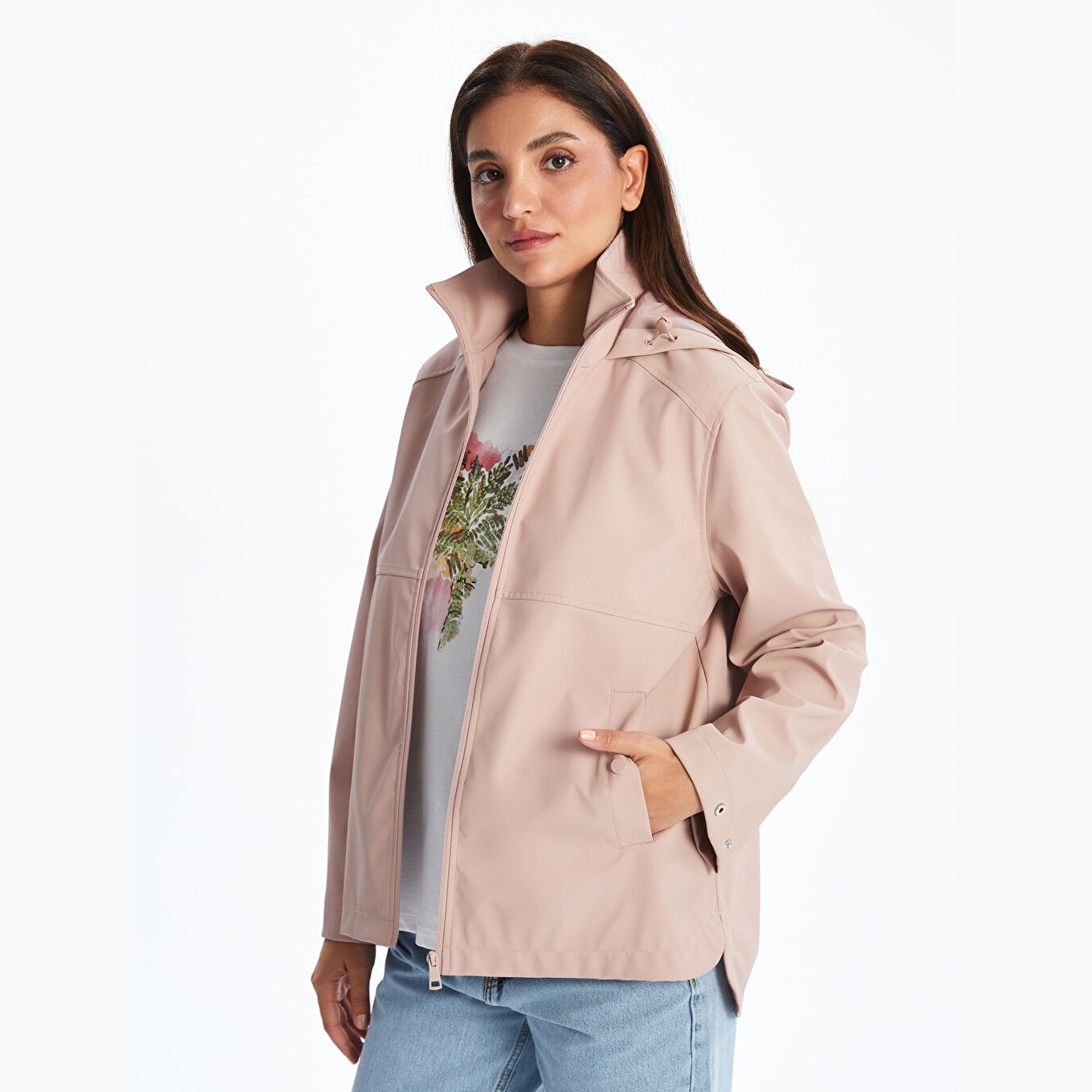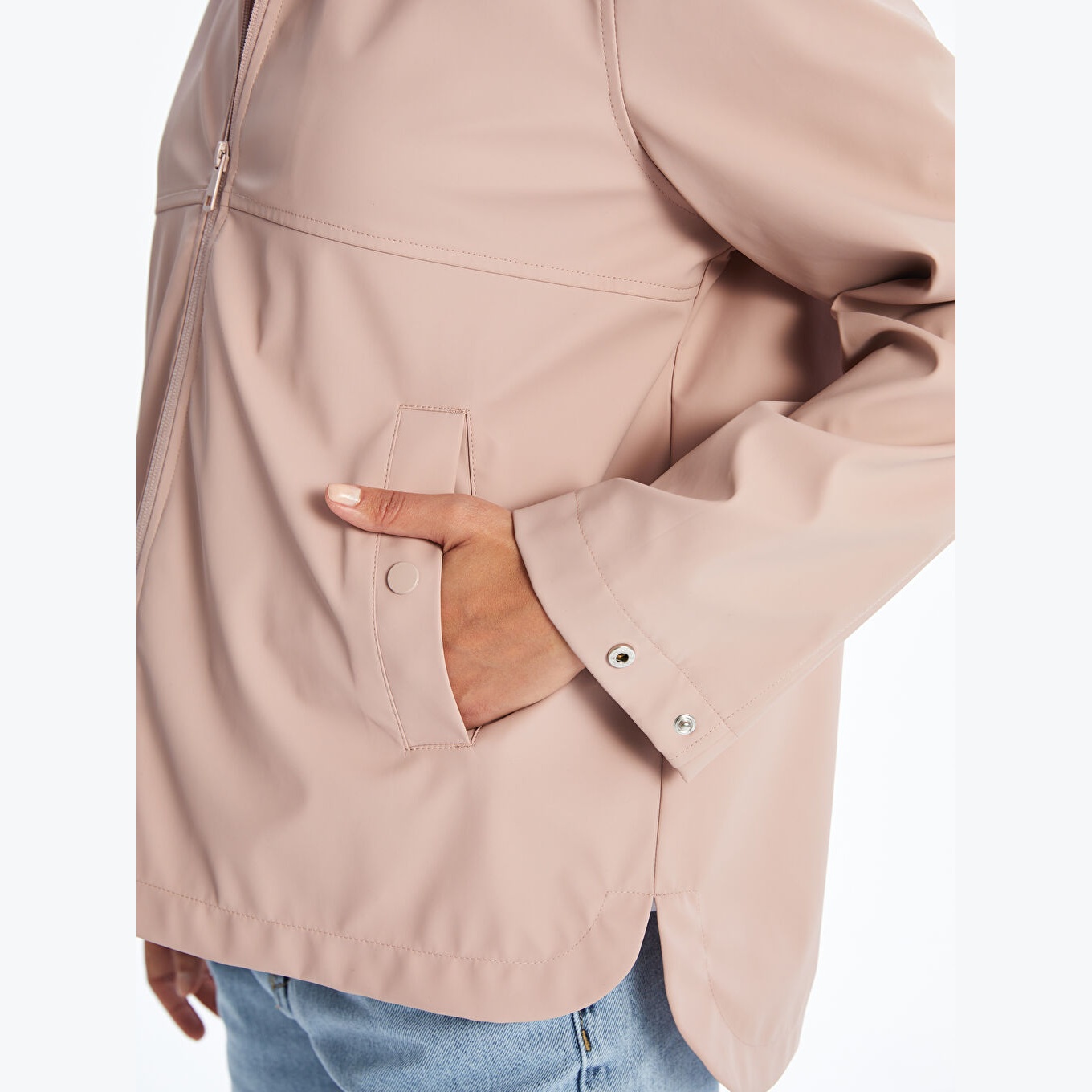 معطف نسائي مطري بقبعة من LCW Classic – وردي (قصة واسعة، تصميم عصري قصير، خامة جلد صناعي مقاوم للماء، مبطّن بالكامل، مزود بسحاب أمامي وقبعة ثابتة، مثالي للإطلالات اليومية الجريئة)