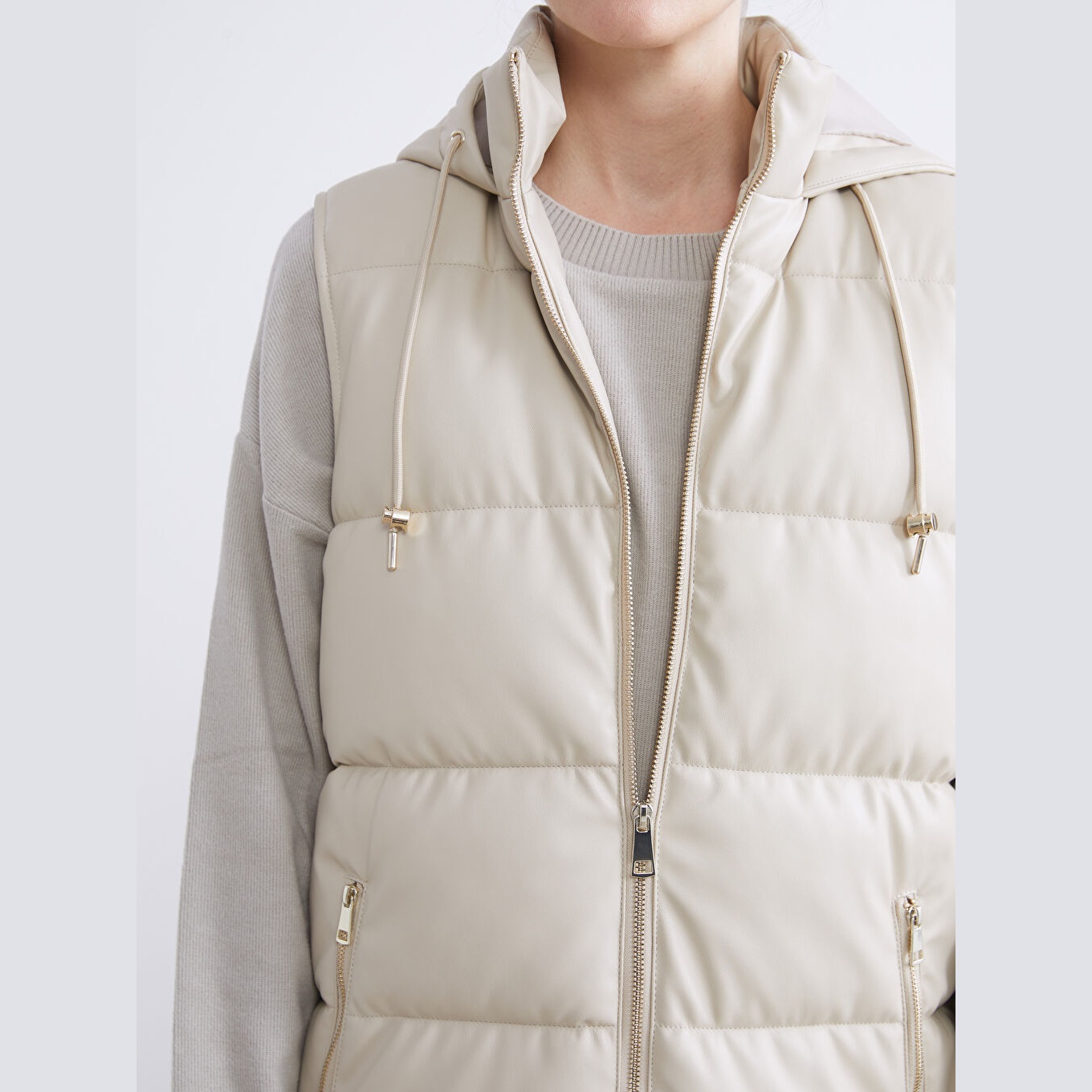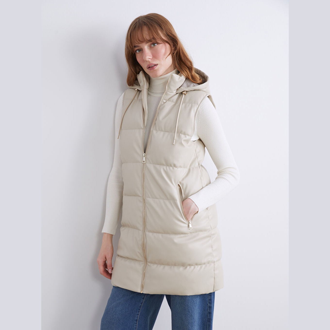 سترة نسائية شتوية بقبعة من LCW Classic – بيج (قصة قياسية، تصميم متوسط الطول، خامة جلد صناعي سميكة، مبطّنة بالكامل، مزودة بسحاب أمامي وقبعة ثابتة، مثالية للإطلالات الشتوية ضمن مجموعة المقاسات الكبيرة)