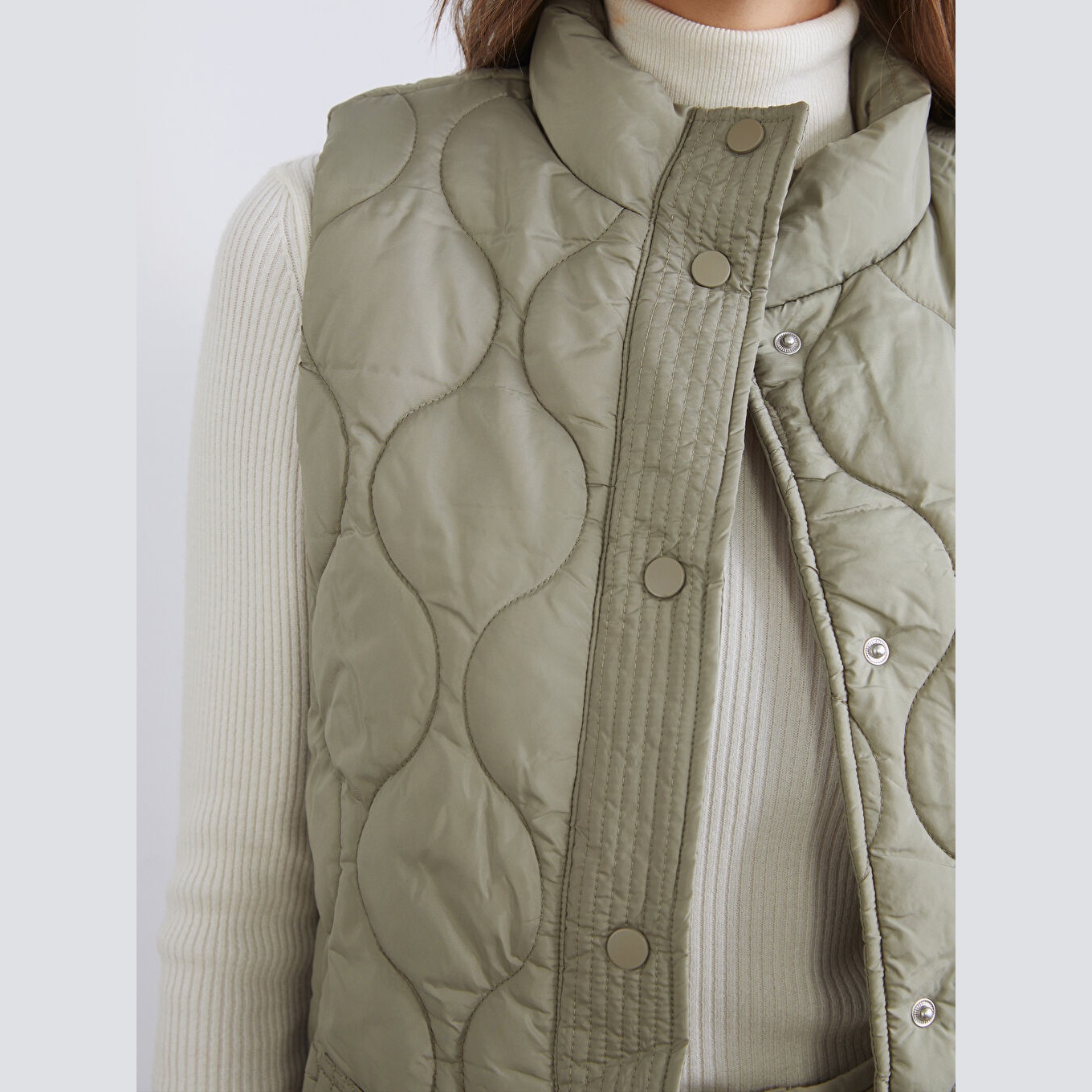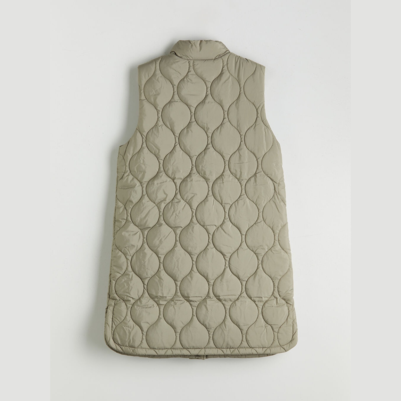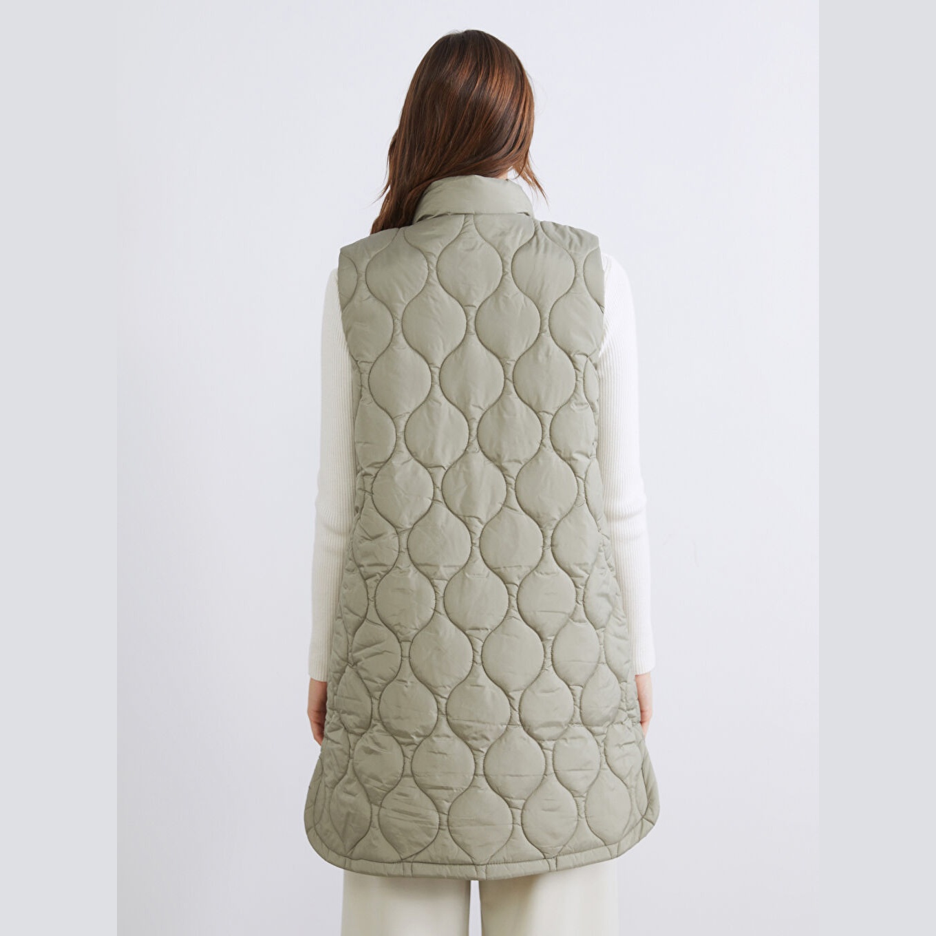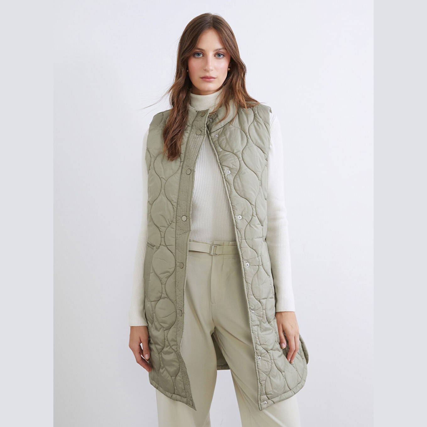 سترة نسائية شتوية بياقة مستقيمة من LCW Modest – زيتي (قصة واسعة، تصميم محتشم متوسط الطول، خامة كابيتوني خفيفة، بدون قبعة، مزودة بسحاب أمامي، مثالية للإطلالات اليومية المحتشمة ضمن مجموعة المقاسات الكبيرة)