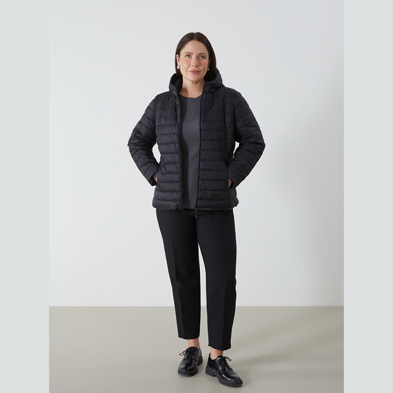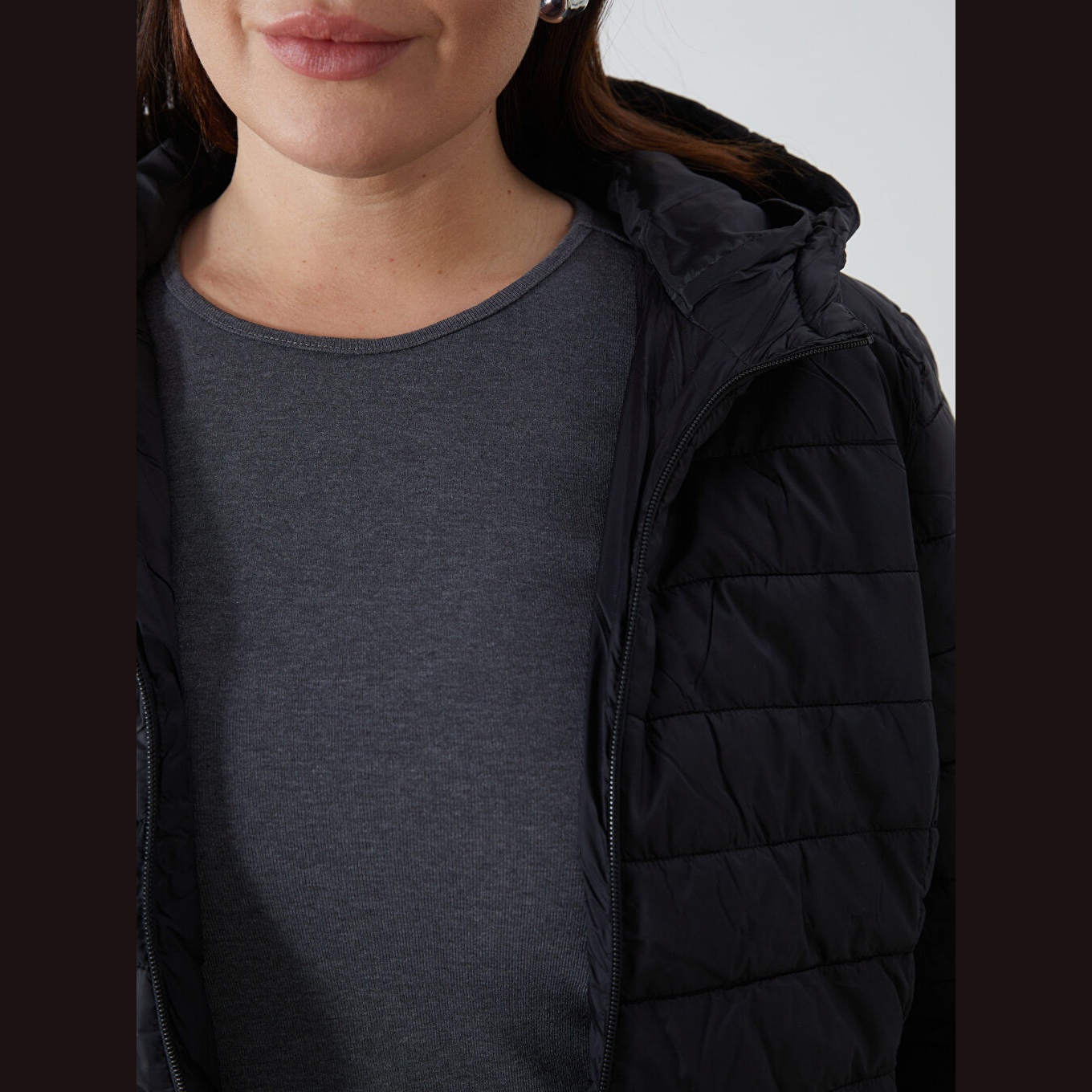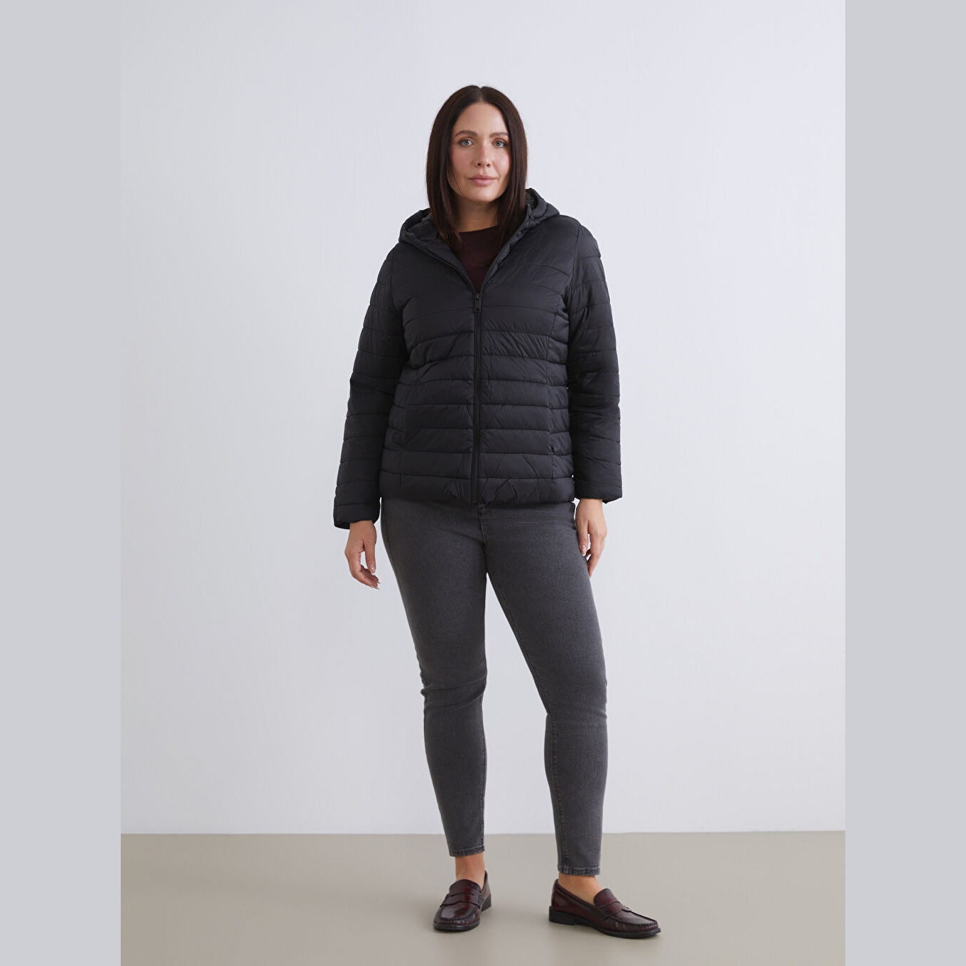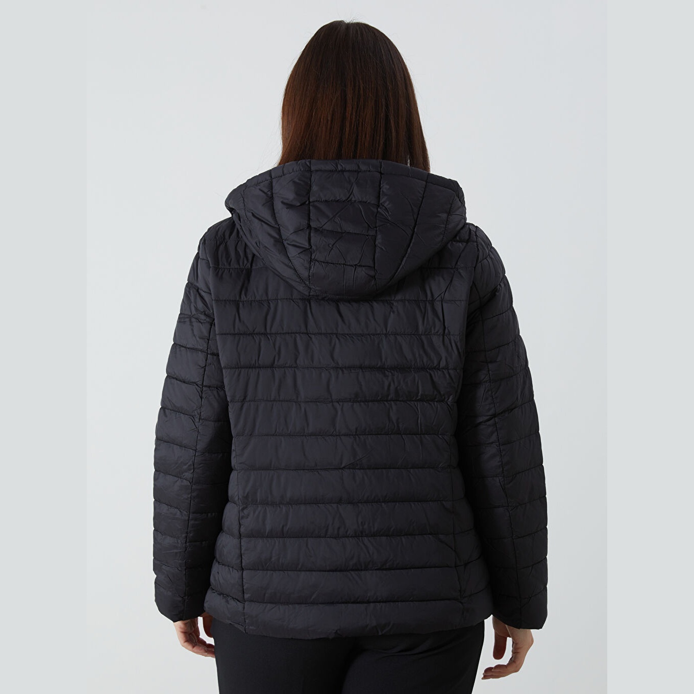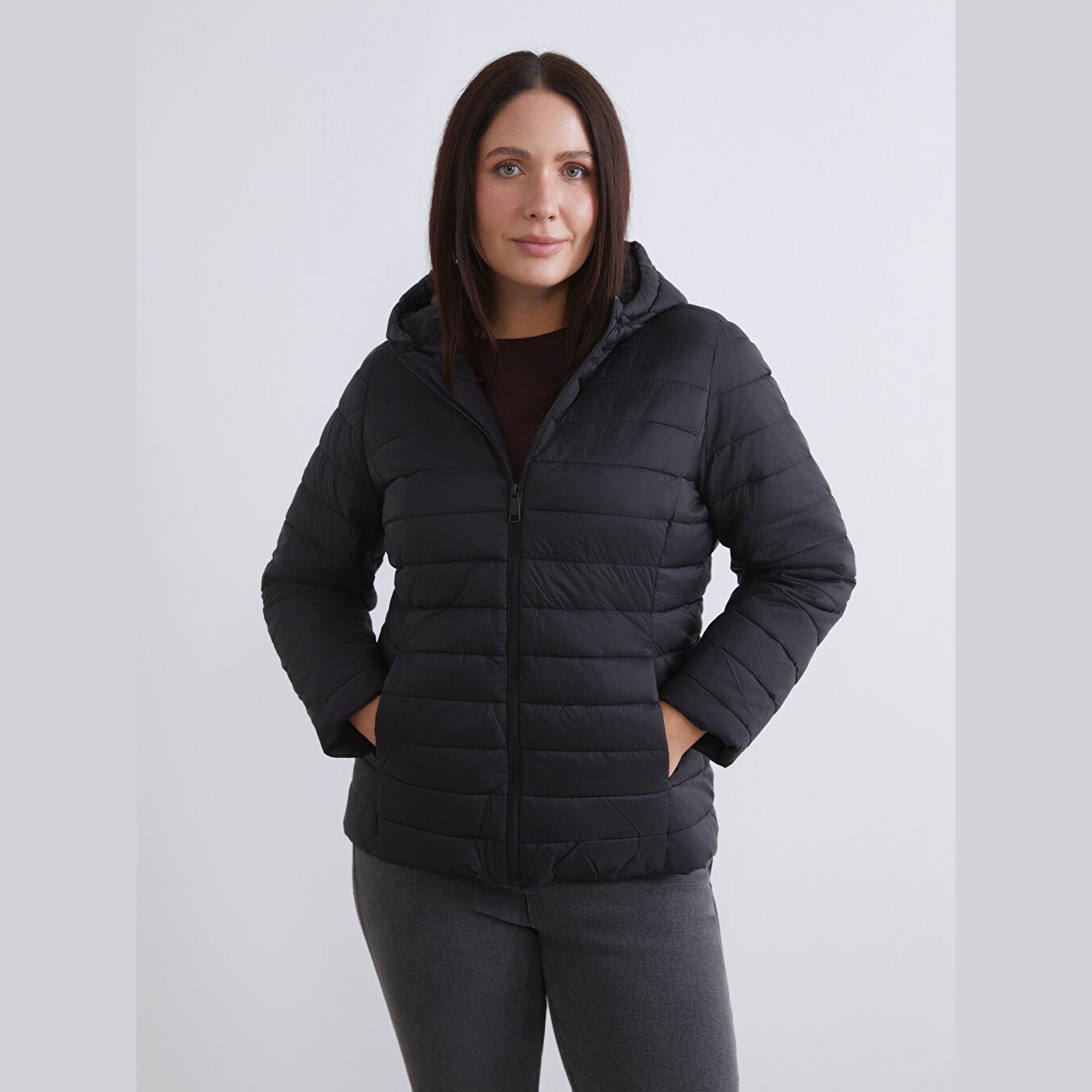 معطف نسائي شتوي بقبعة من LCW Classic – أسود (قصة قياسية، تصميم قصير، خامة بولياميد مبطّنة بسماكة متوسطة، مزود بسحاب أمامي وقبعة ثابتة، مثالي للإطلالات الشتوية اليومية ضمن مجموعة المقاسات الكبيرة)