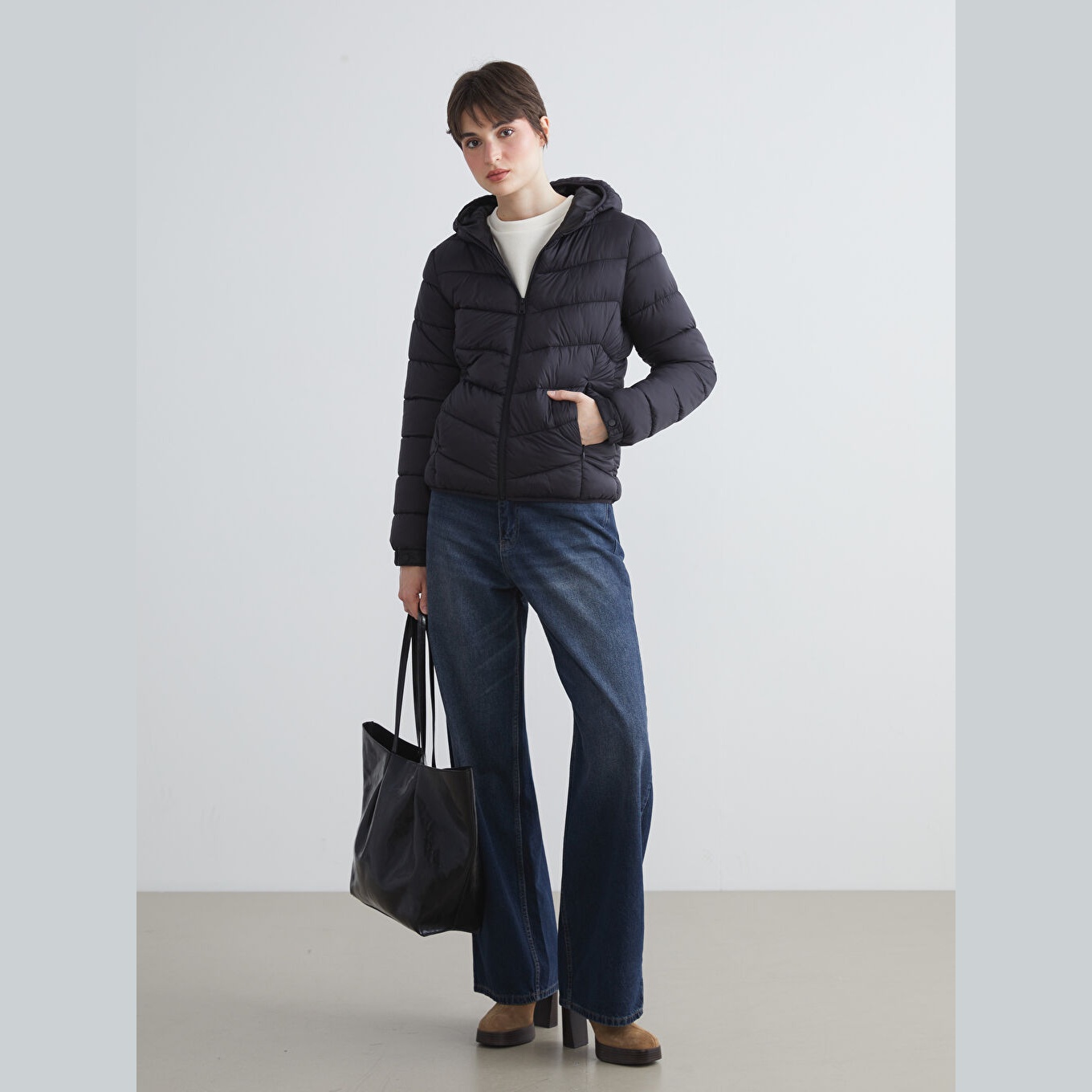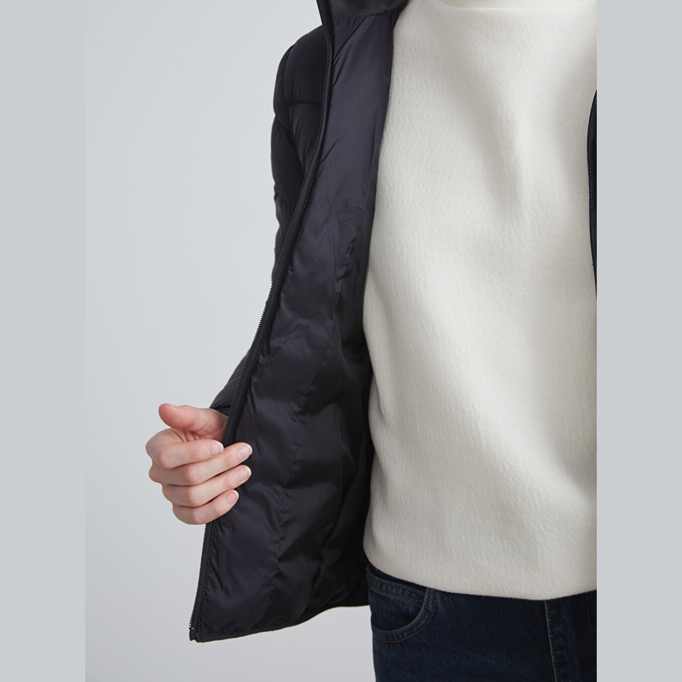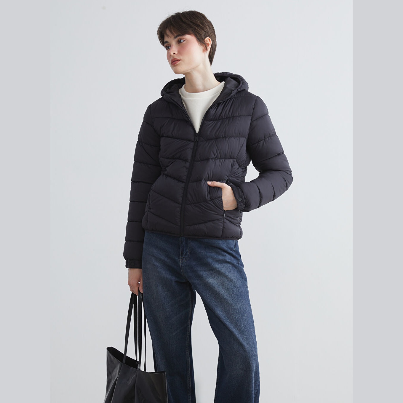 معطف نسائي شتوي بقبعة من LCW Vision – أسود (قصة قياسية، تصميم قصير، خامة بولياميد مبطّنة بسماكة متوسطة، مزود بسحاب أمامي وقبعة ثابتة، مثالي للإطلالات الشتوية اليومية)