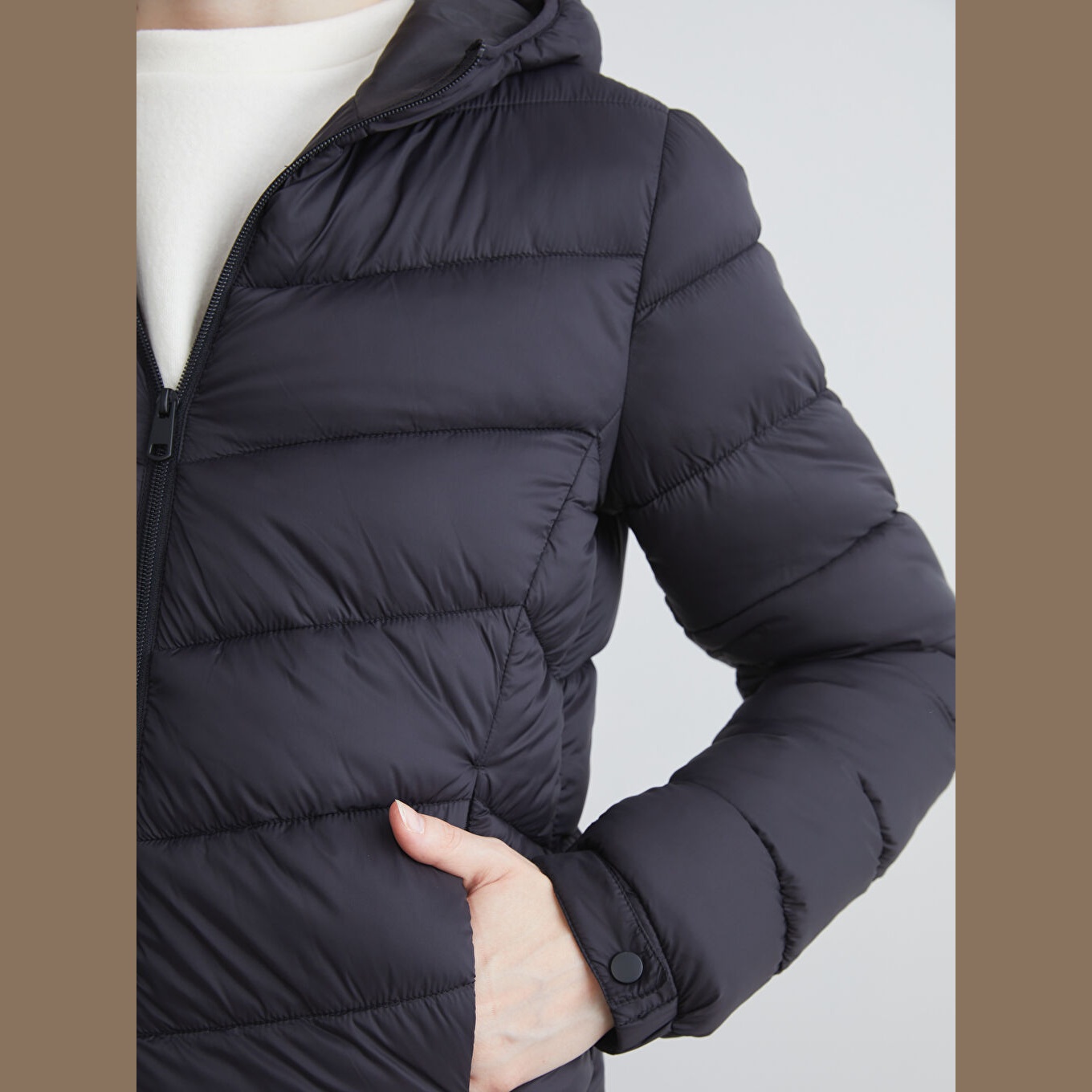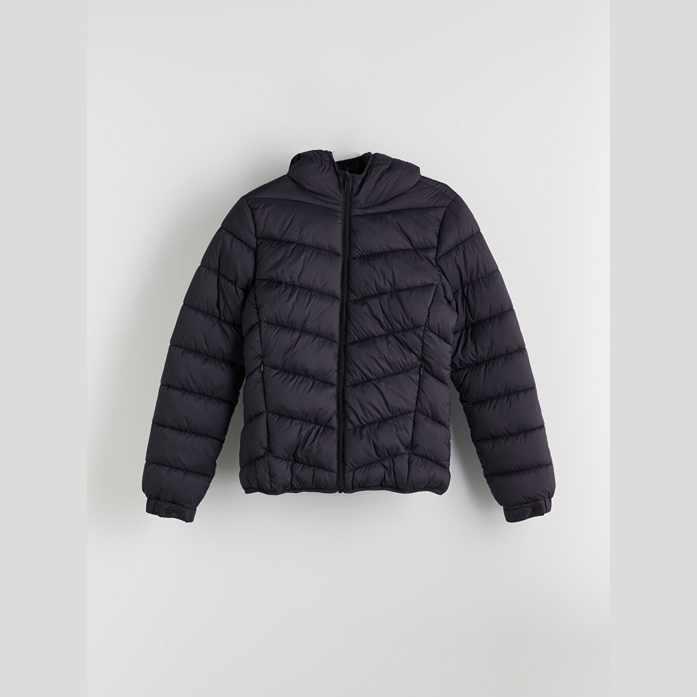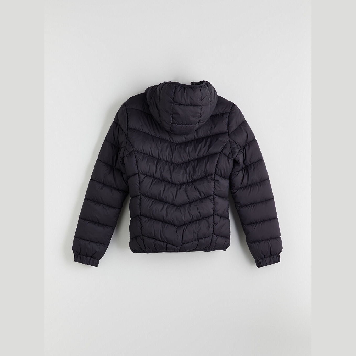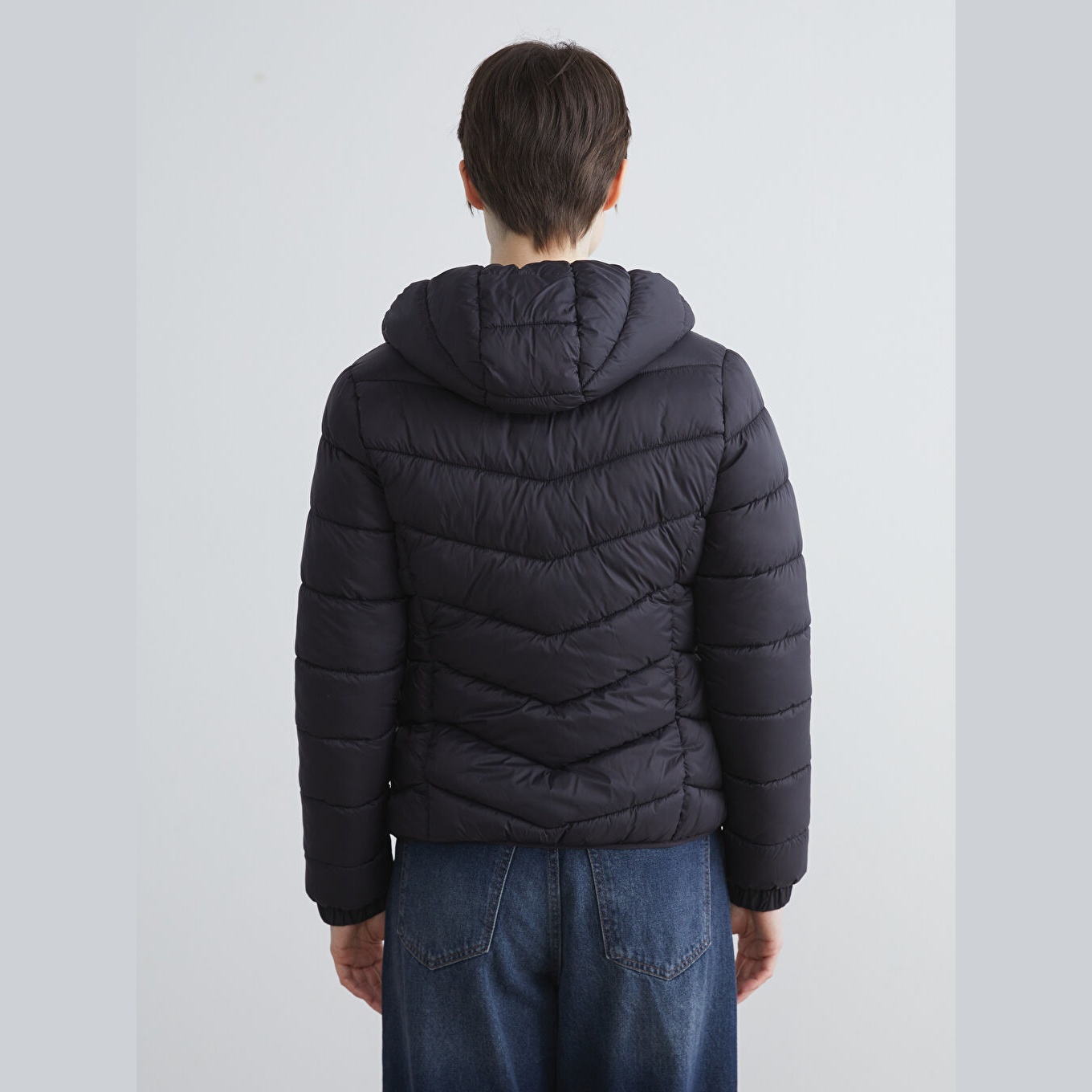 معطف نسائي شتوي بقبعة من LCW Vision – أسود (قصة قياسية، تصميم قصير، خامة بولياميد مبطّنة بسماكة متوسطة، مزود بسحاب أمامي وقبعة ثابتة، مثالي للإطلالات الشتوية اليومية)