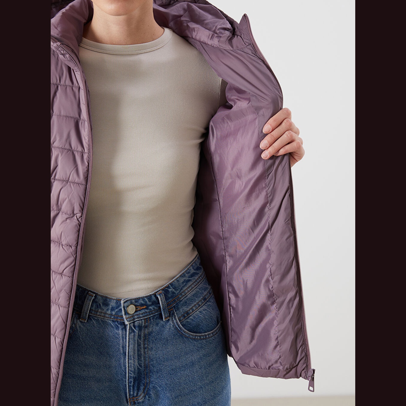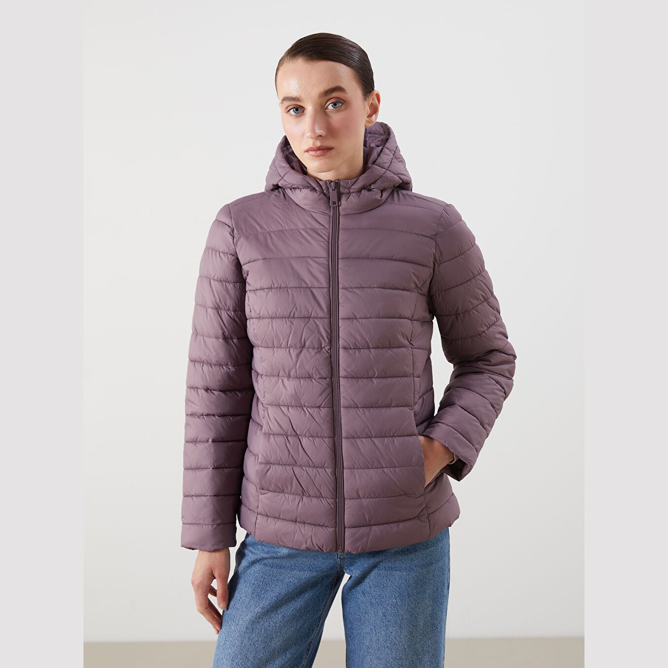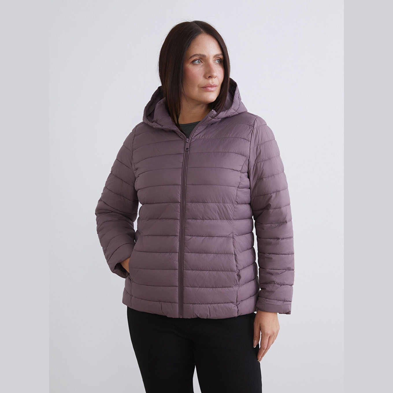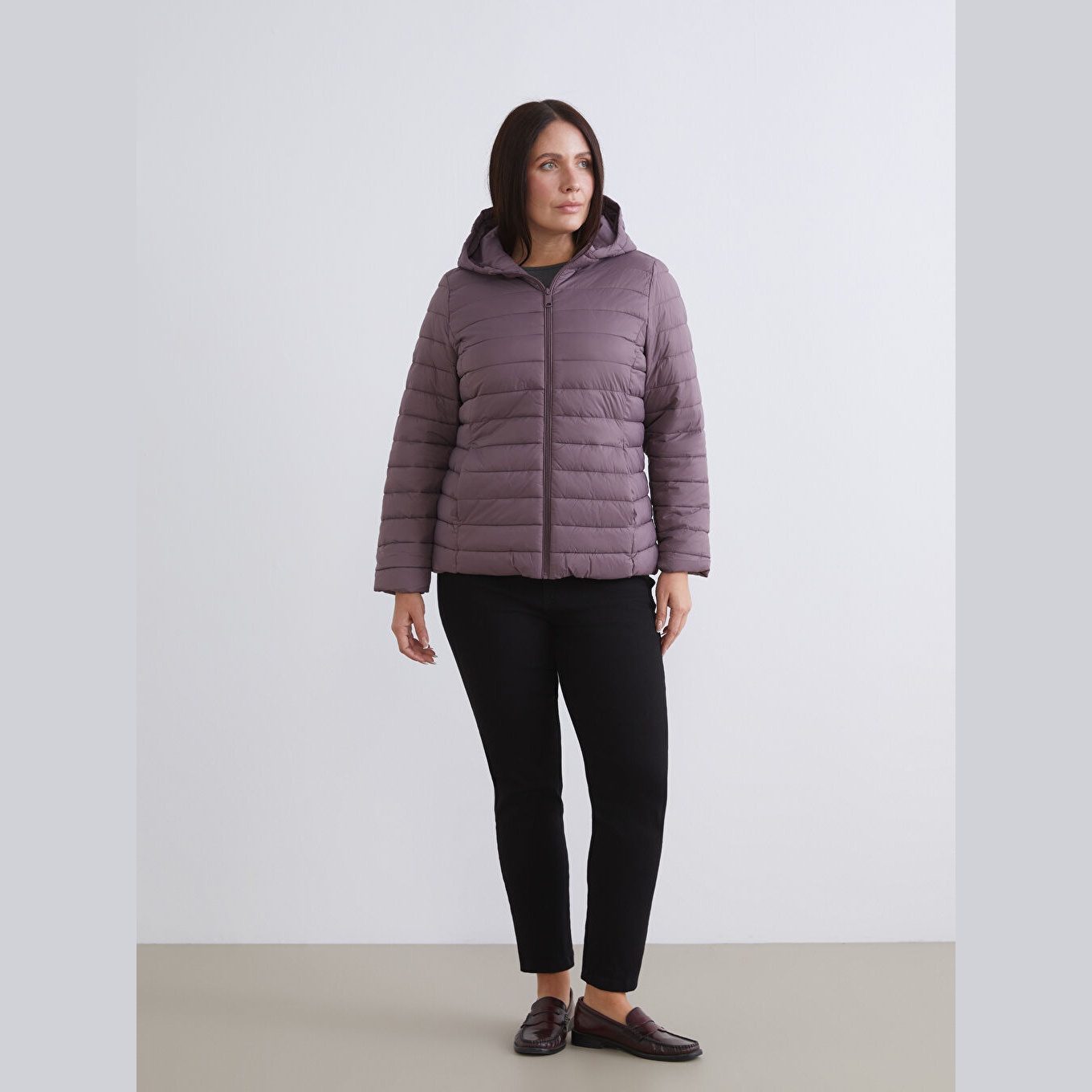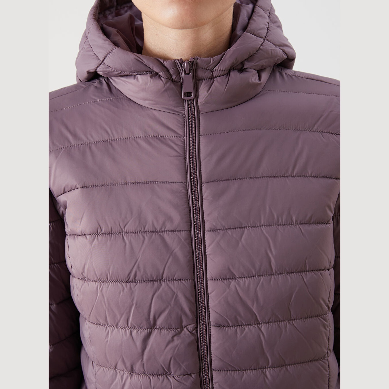 معطف نسائي شتوي بقبعة من LCW Classic – بنفسجي غامق (قصة قياسية، تصميم قصير، خامة بولياميد مبطّنة بسماكة متوسطة، مزود بسحاب أمامي وقبعة ثابتة، مثالي للإطلالات الشتوية اليومية ضمن مجموعة المقاسات الكبيرة)
