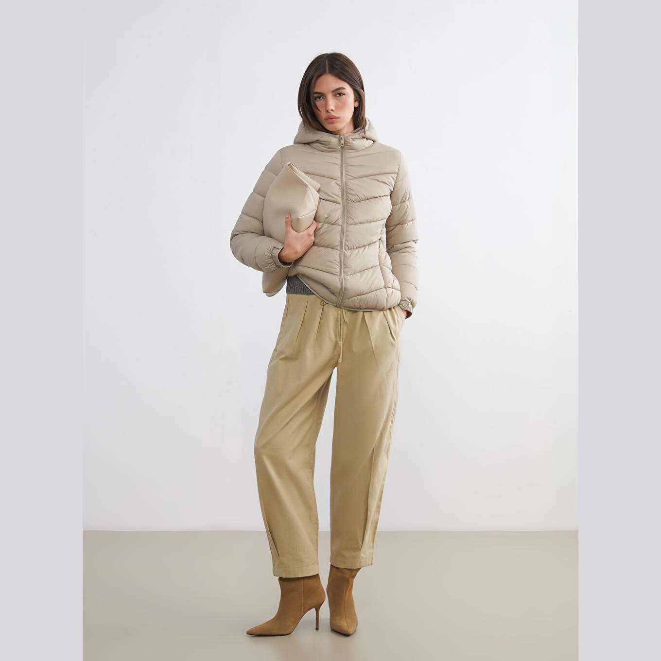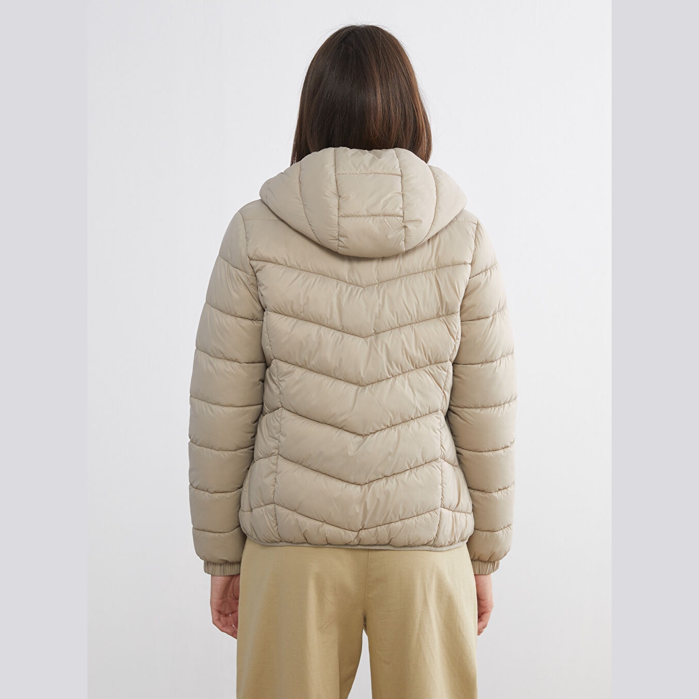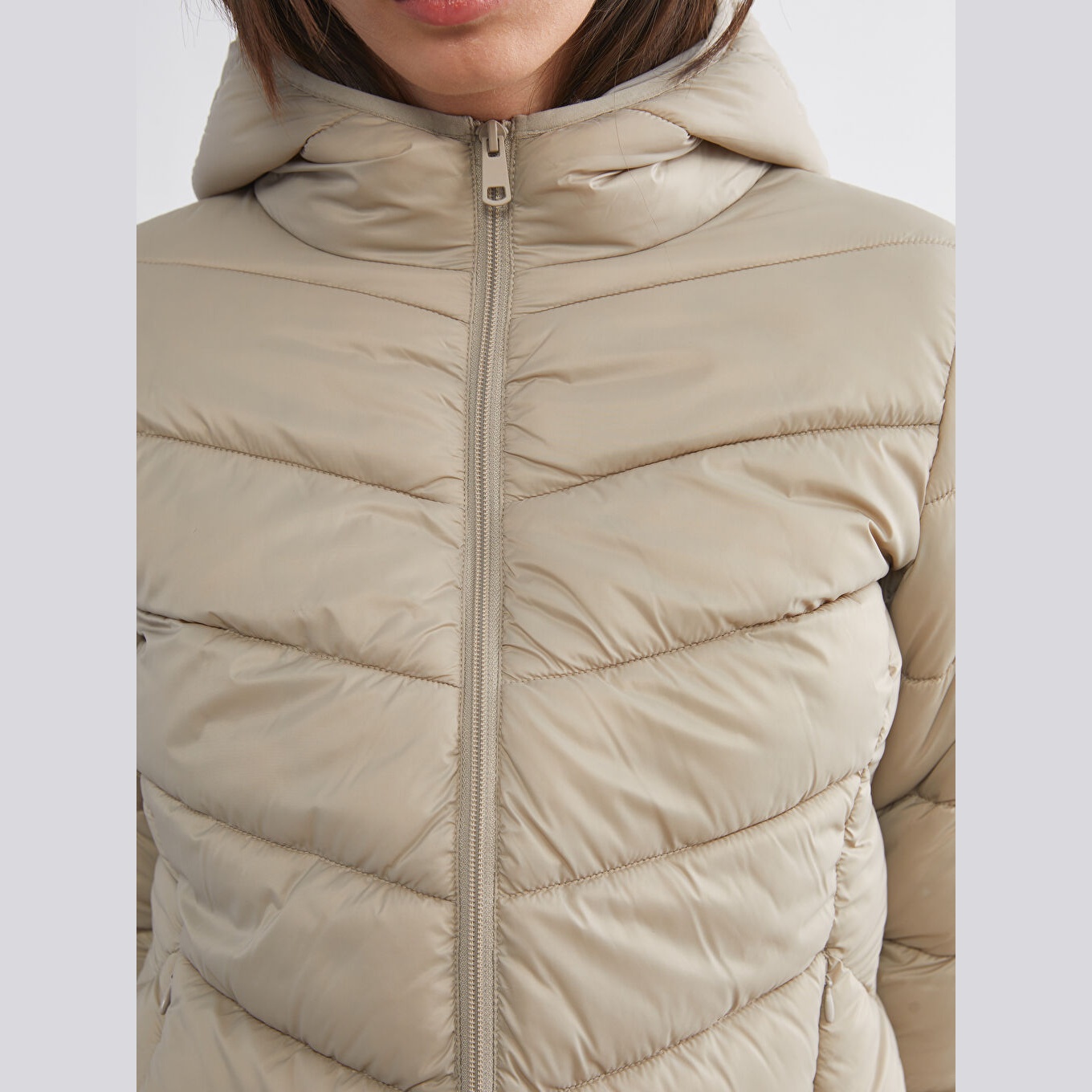 معطف نسائي شتوي بقبعة من LCW ECO – بيج (قصة قياسية، تصميم قصير، خامة بولياميد بسماكة عالية، مزود بسحاب أمامي وقبعة ثابتة، مثالي للإطلالات الشتوية اليومية بأسلوب عملي ومستدام)