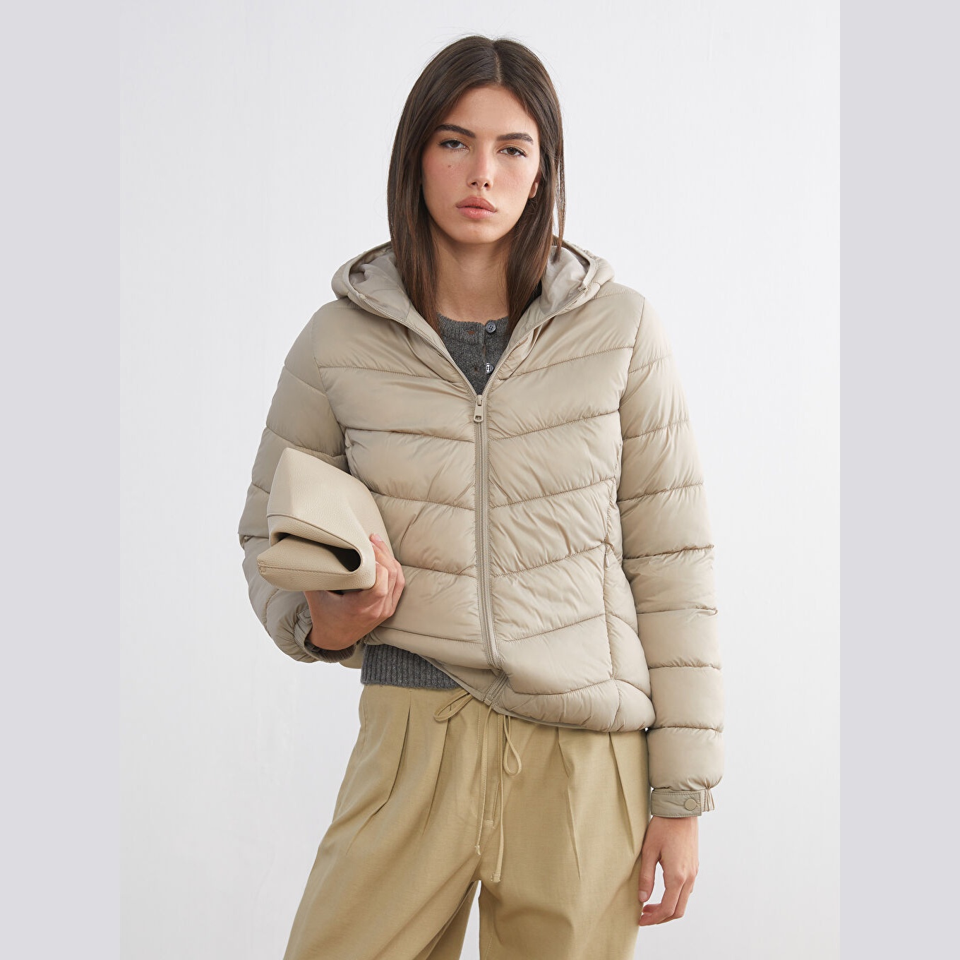 معطف شتوي بلون بيج (Bej) من مجموعة LCW ECO، تصميم عملي بقبعة ثابتة (Sabit Kapüşonlu) للحماية من الرياح، قصة قياسية (Regular Fit) تمنحك راحة وأناقة، خامة خارجية من %100 بولياميد بسماكة عالية (Kalın)، مبطّنة بالكامل بـ%100 بوليستر، مع حشوة داخلية من %100 بوليستر، تصميم سادة بدون نقوش، بطول قصير (Kısa) يُقاس من الكتف، مزود بسحاب أمامي، مثالي للإطلالات اليومية في الطقس البارد ضمن أسلوب مستدام.