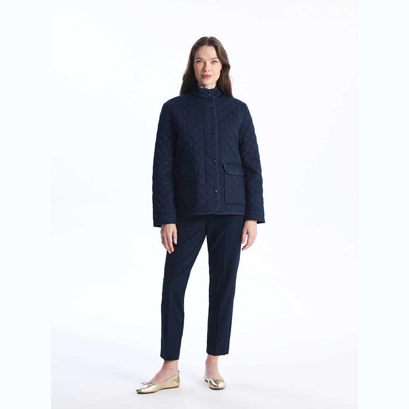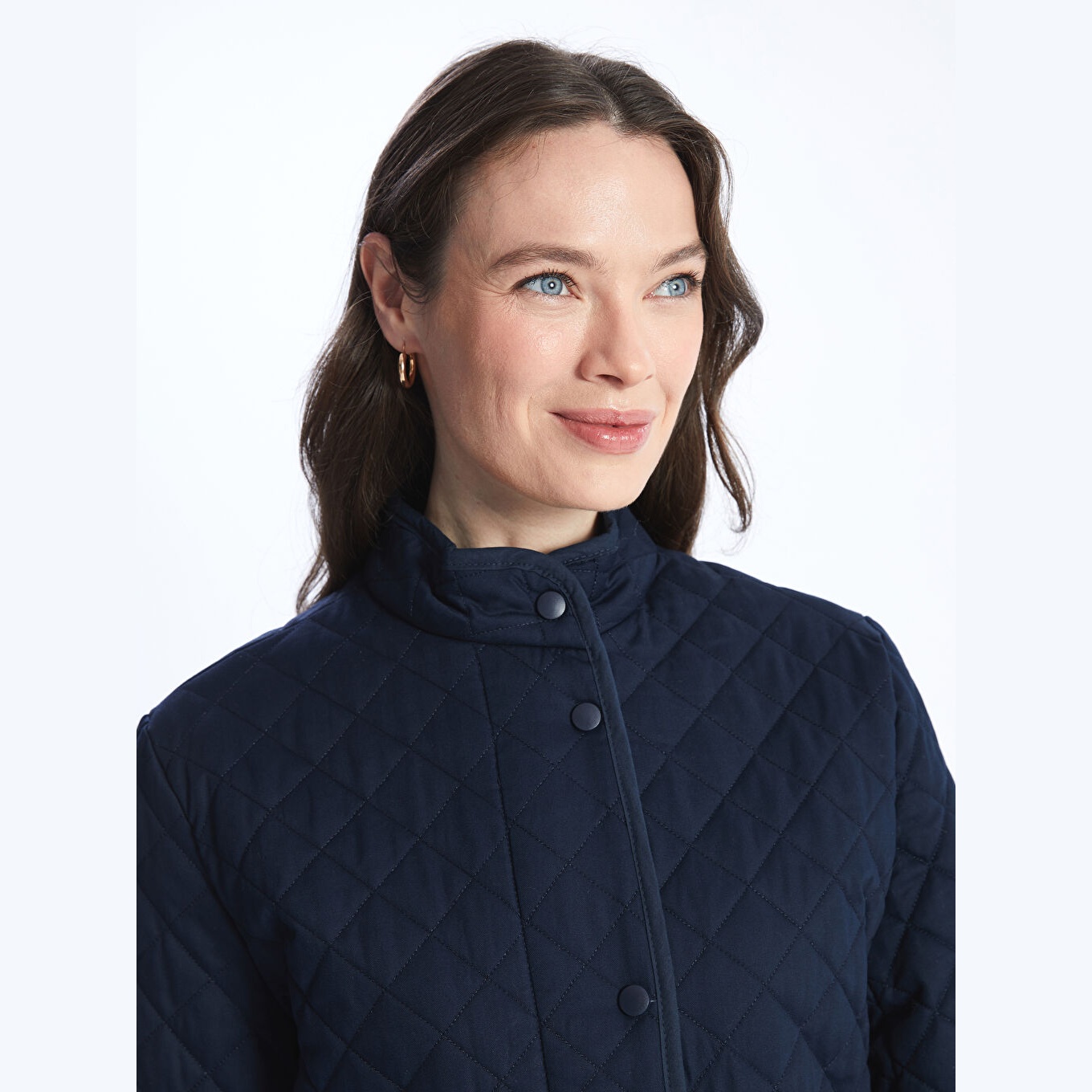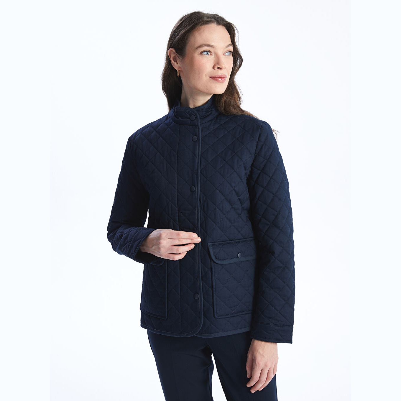 معطف نسائي شتوي بياقة مستقيمة بنمط مبطّن من LCW Grace – كحلي (قصة قياسية، تصميم قصير، خامة قطنية خفيفة، مزود بسحاب أمامي، مثالي للإطلالات اليومية الشتوية ضمن مجموعة المقاسات الكبيرة)