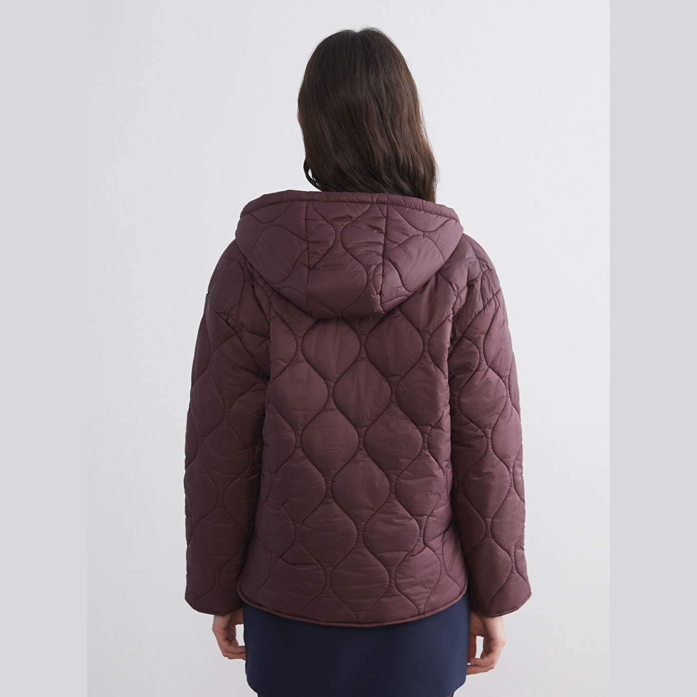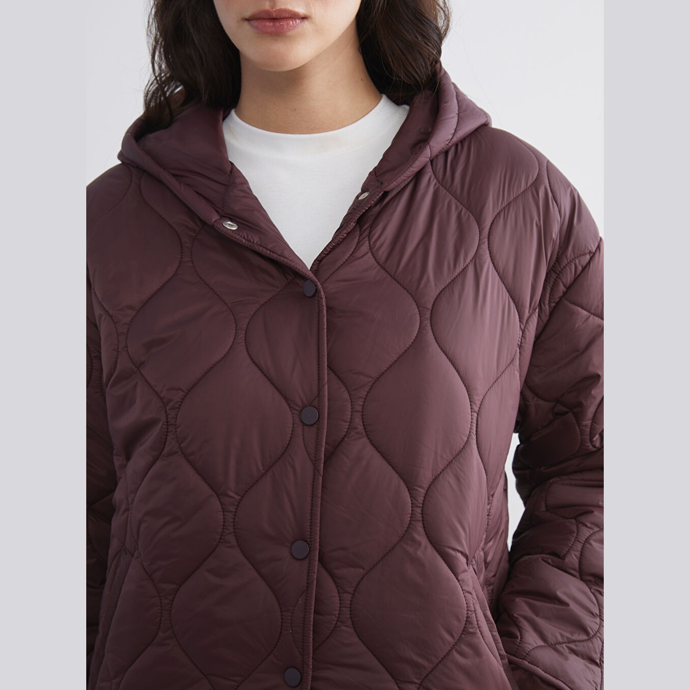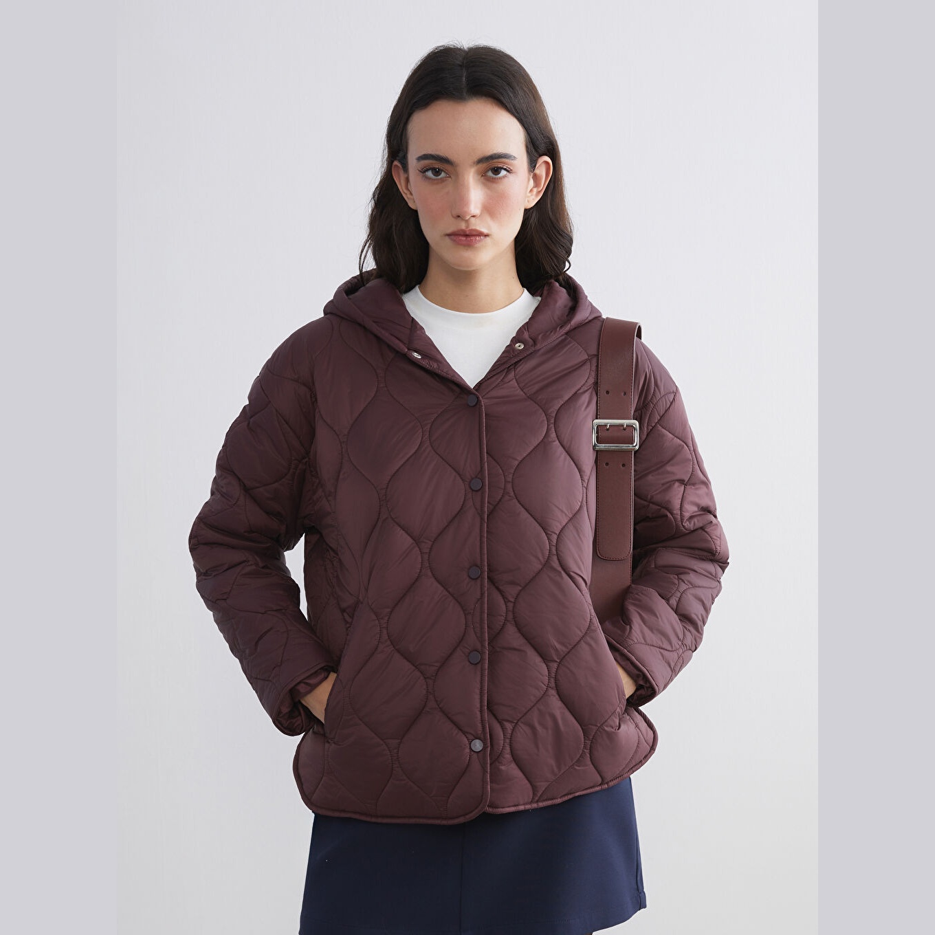 معطف نسائي شتوي بقبعة من LCW Vision – خمري (قصة واسعة، بطول يصل إلى الورك، خامة بولياميد بنمط مبطّن وسماكة متوسطة، مزود بسحاب أمامي، بدون قبعة، مثالي للإطلالات الشتوية اليومية)