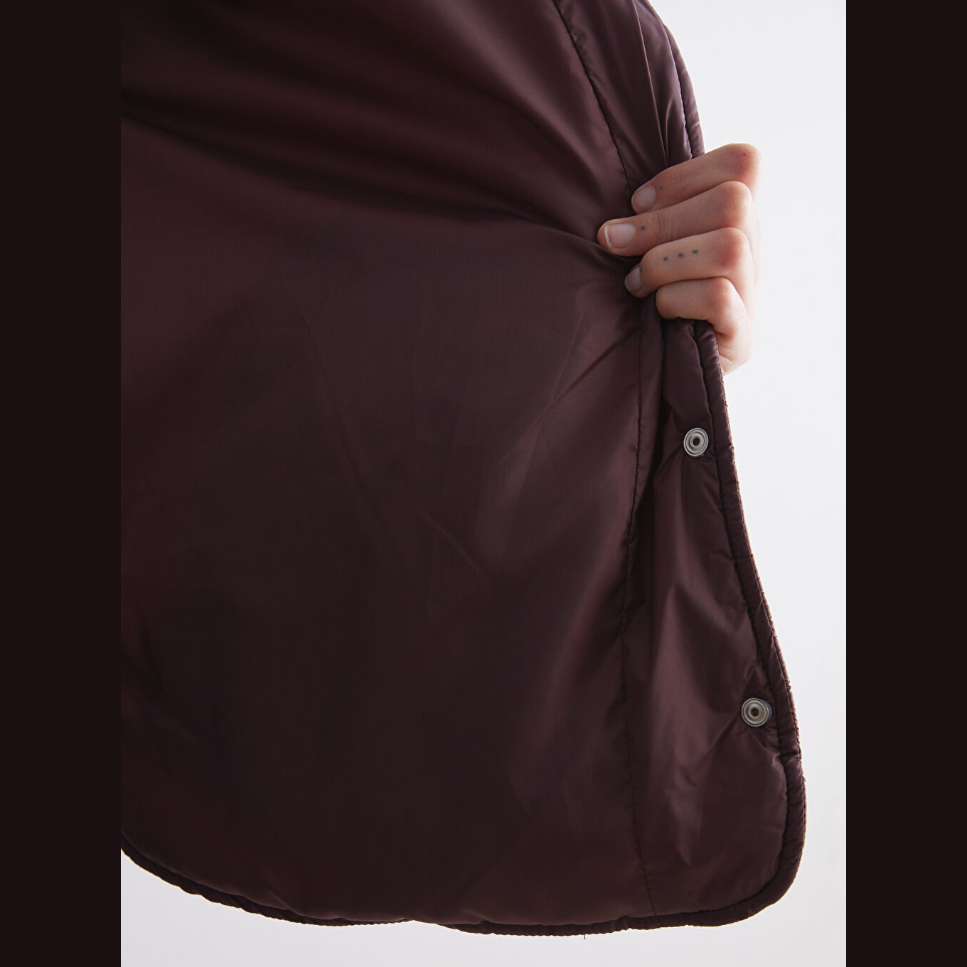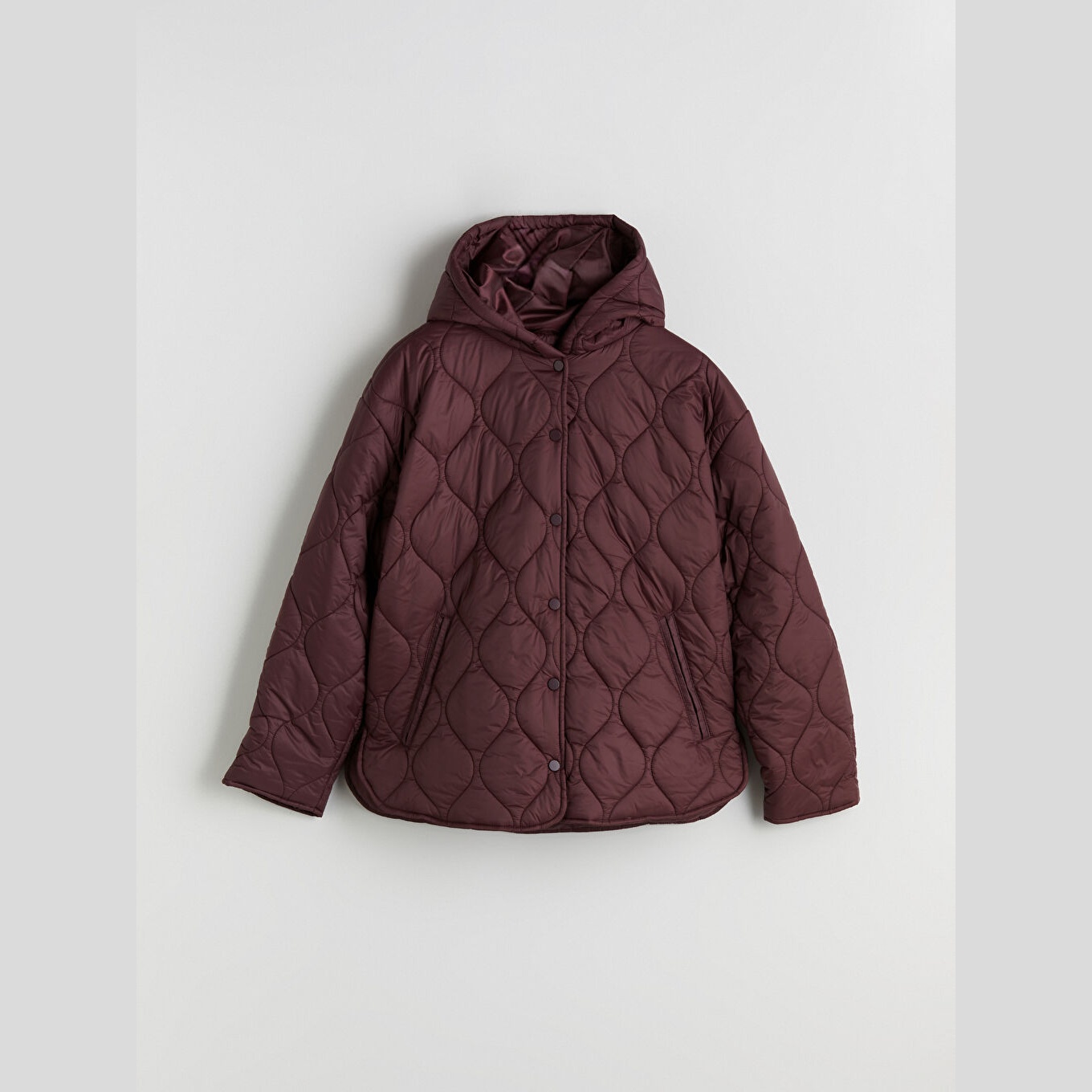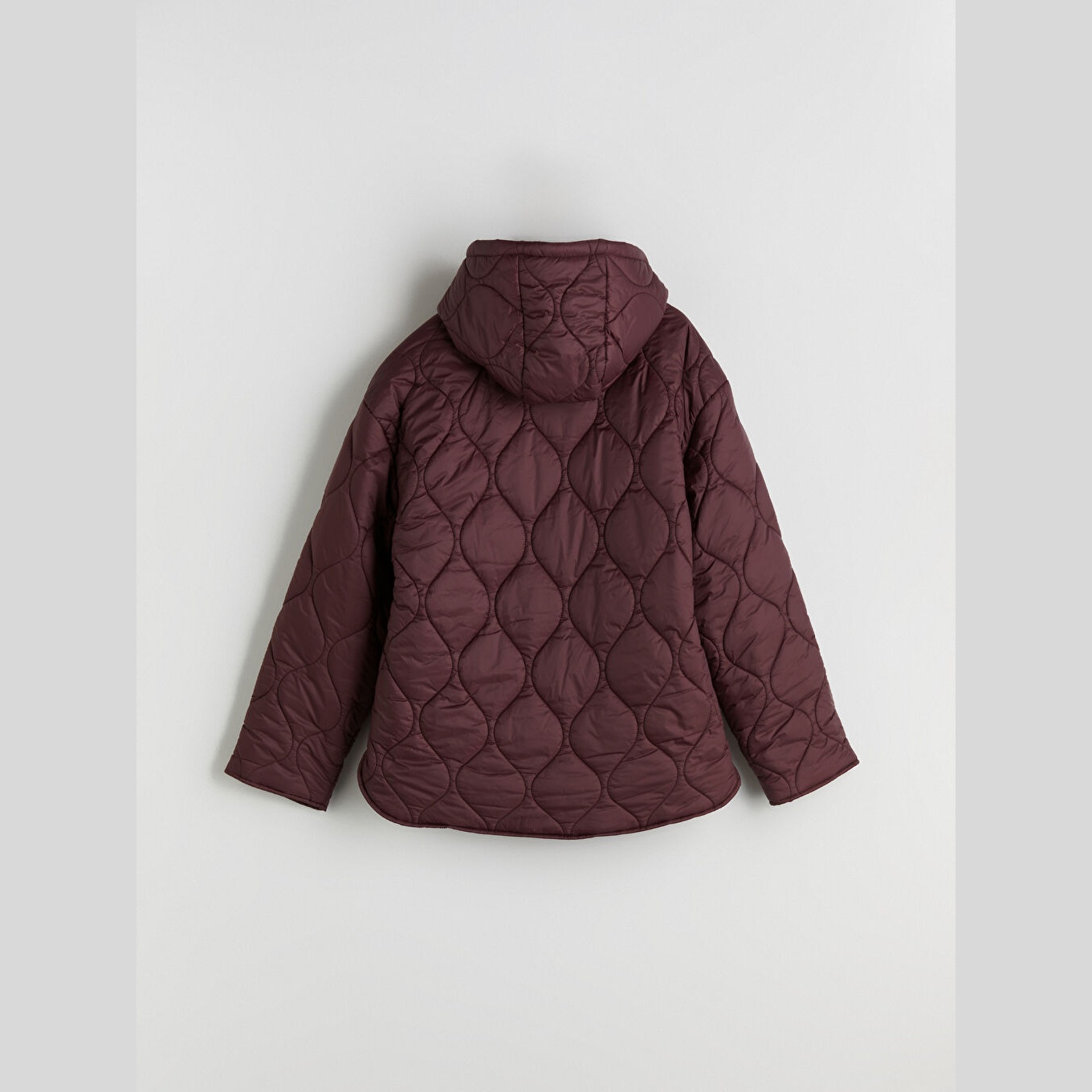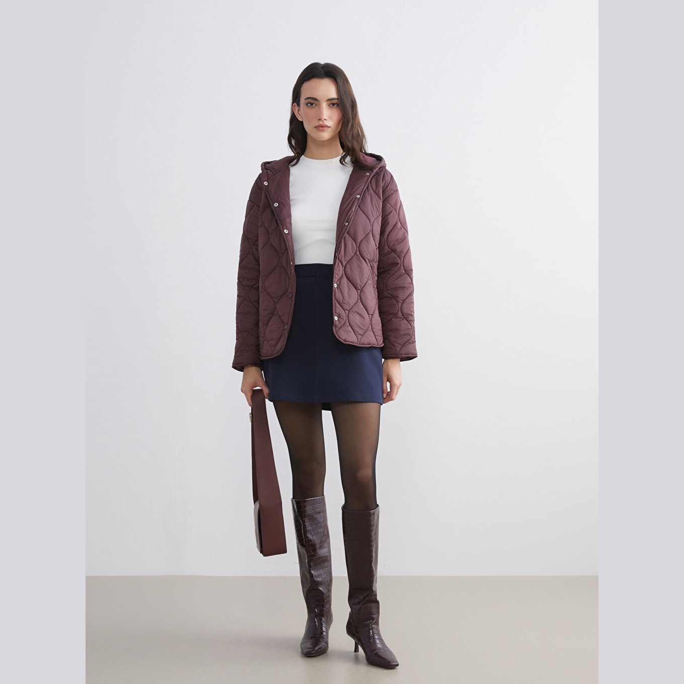 معطف نسائي شتوي بقبعة من LCW Vision – خمري (قصة واسعة، بطول يصل إلى الورك، خامة بولياميد بنمط مبطّن وسماكة متوسطة، مزود بسحاب أمامي، بدون قبعة، مثالي للإطلالات الشتوية اليومية)