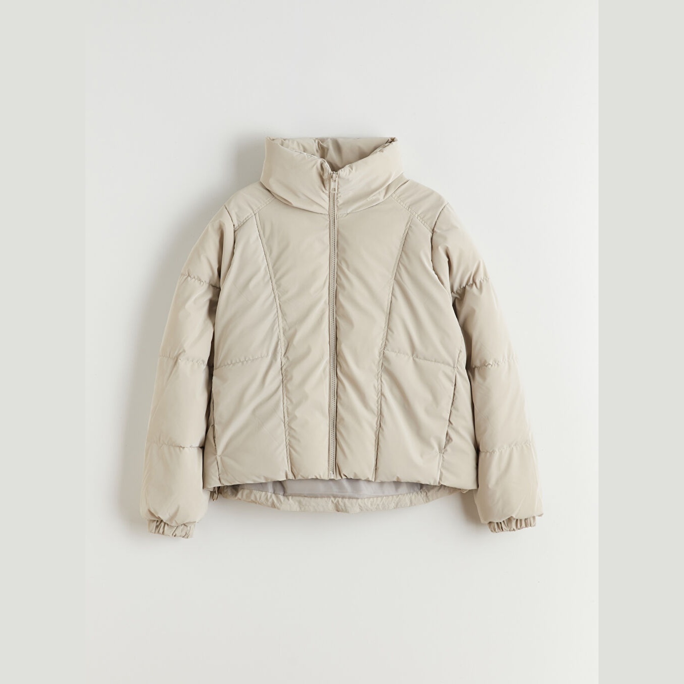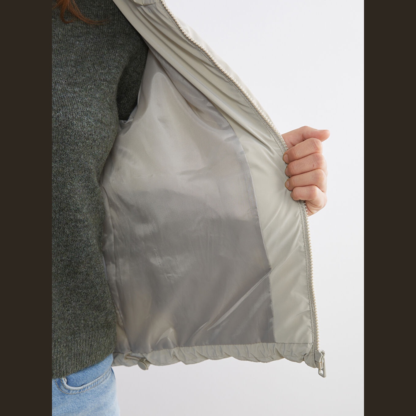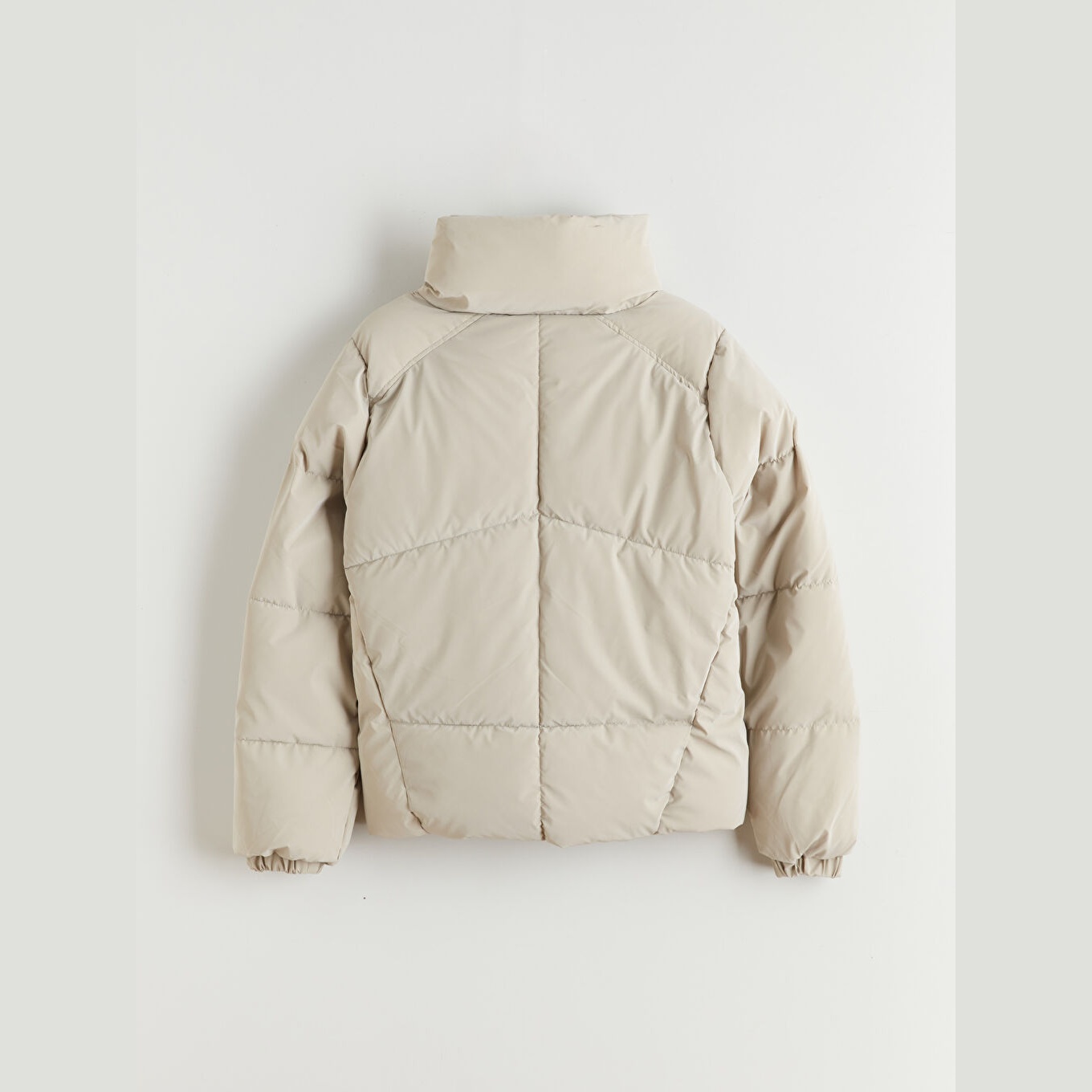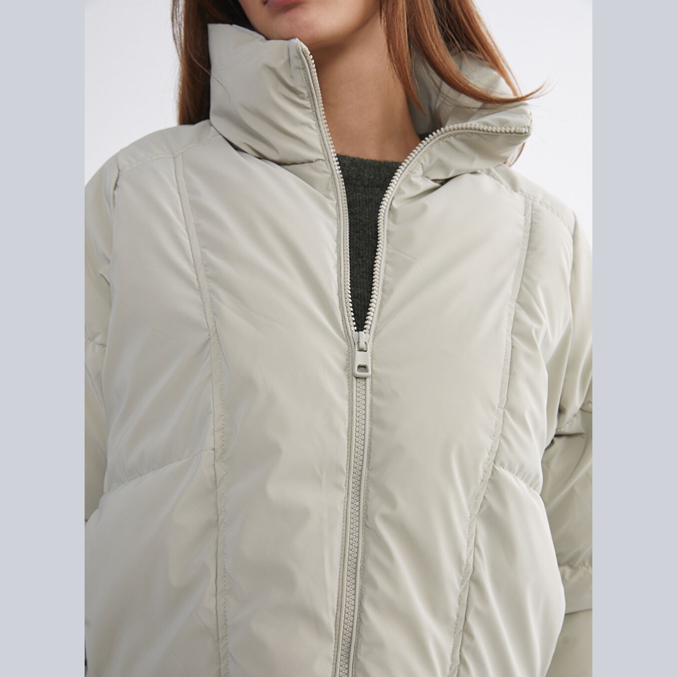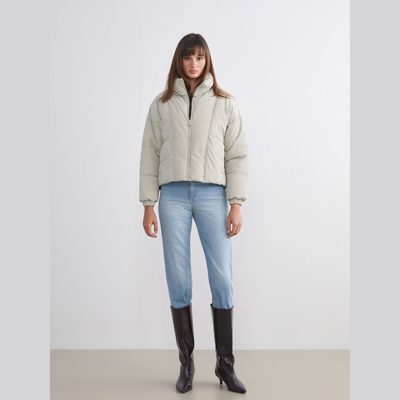 معطف شتوي بلون إكرو من مجموعة LCW Vision، تصميم بياقة مستقيمة بدون قبعة، قصة واسعة (Oversize) تمنحك مظهرًا عصريًا ومريحًا، خامة خارجية من جلد صناعي (طبقة بولي يوريثان فوق قماش بوليستر)، مبطّنة بالكامل بـ%100 بوليستر، مع حشوة داخلية من %100 بوليستر، تصميم سادة بدون نقوش، بطول قصير يُقاس من الكتف، مزود بسحاب أمامي، مع تفصيل بُزُوغ عند الخصر لإبراز الشكل، مثالي للإطلالات اليومية في الطقس البارد بأسلوب أنيق وجريء.