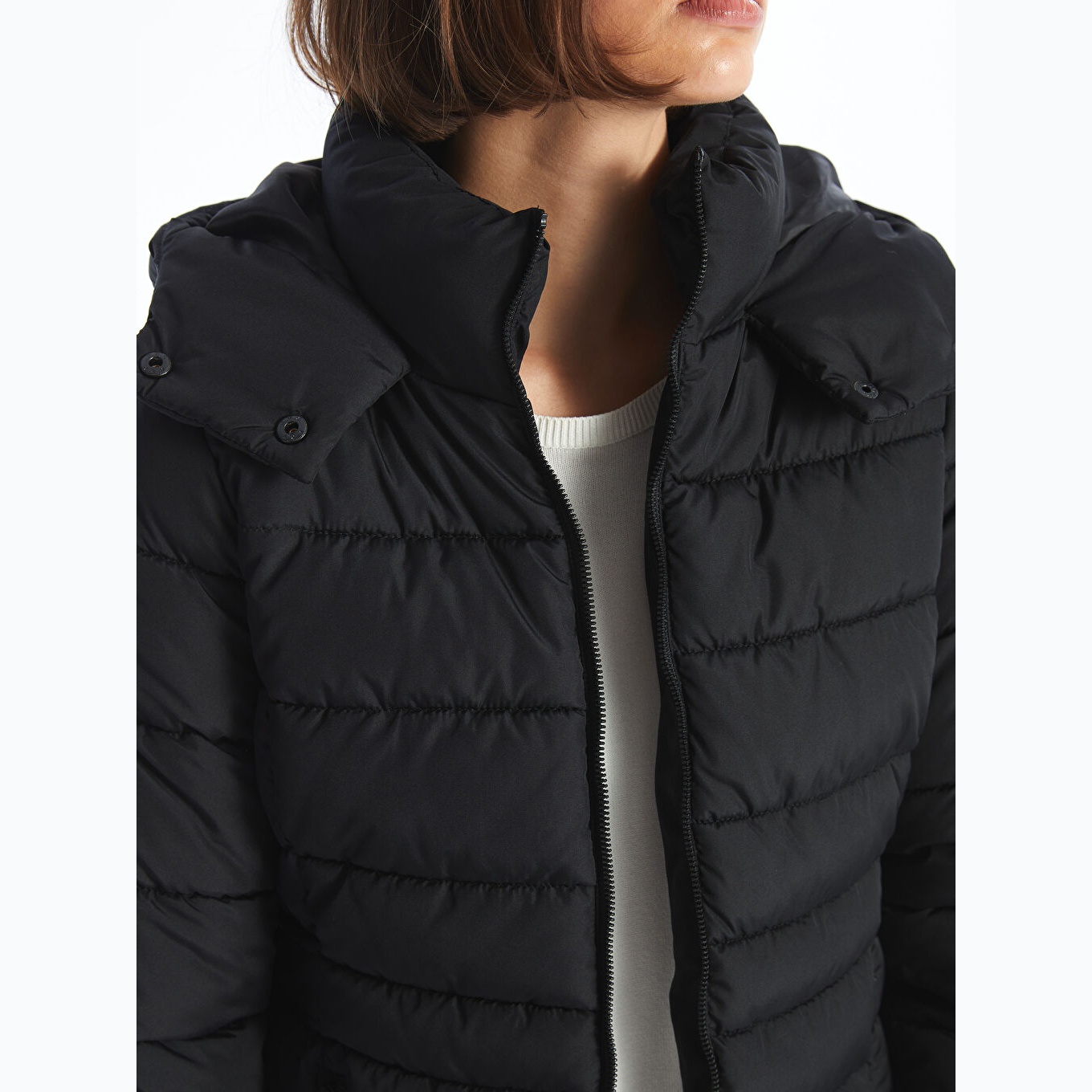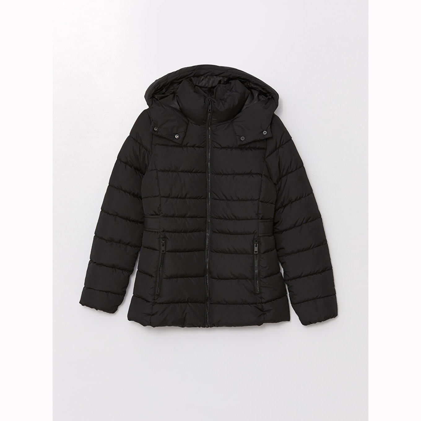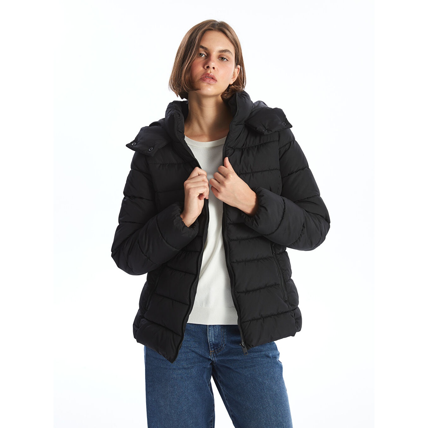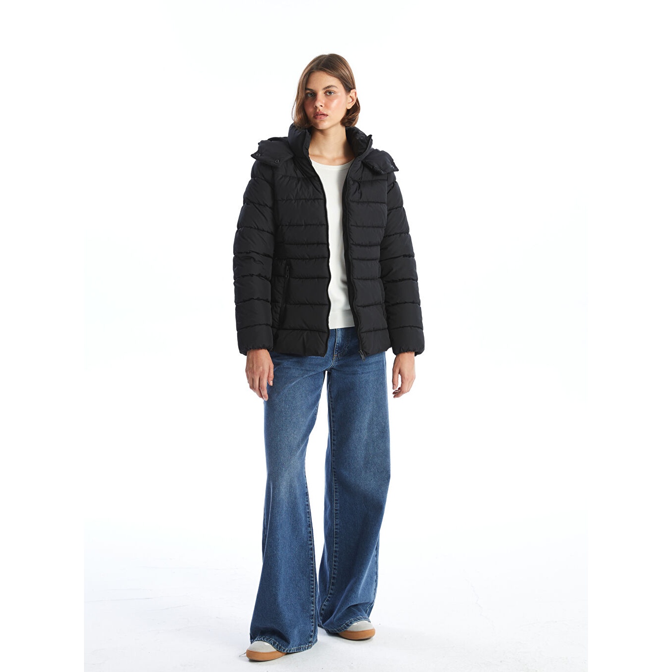 معطف نسائي شتوي بقبعة من LCW Vision – أسود (قصة قياسية، تصميم قصير، خامة بوليستر سادة بسماكة متوسطة، مزود بسحاب أمامي وقبعة ثابتة، مثالي للإطلالات الشتوية اليومية بأسلوب عملي وأنيق)