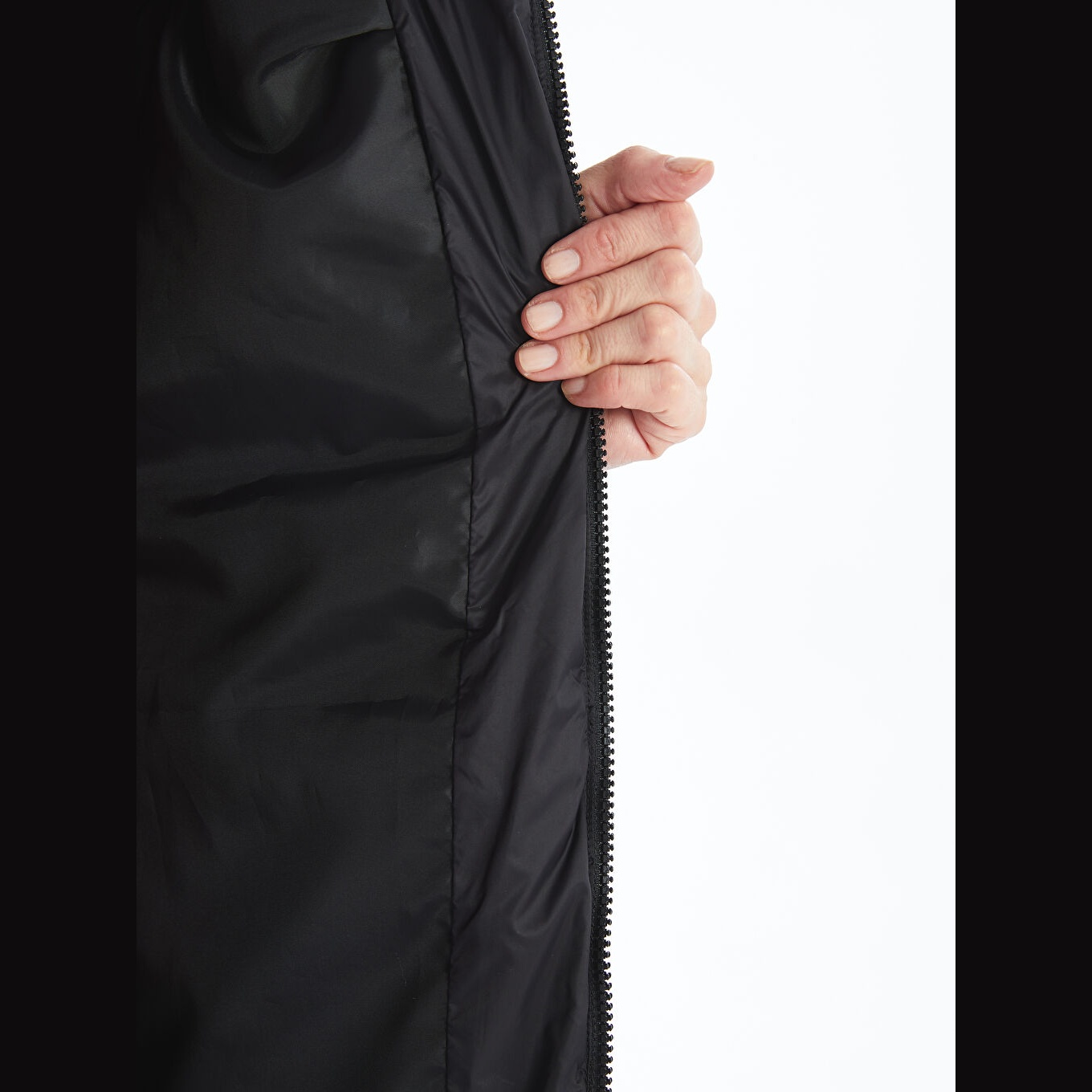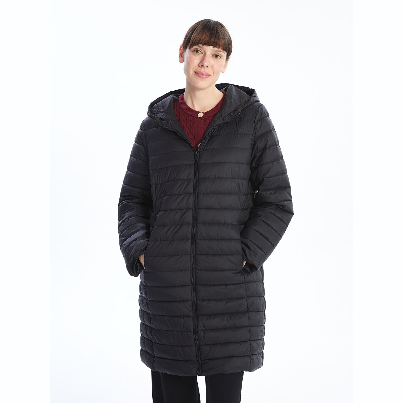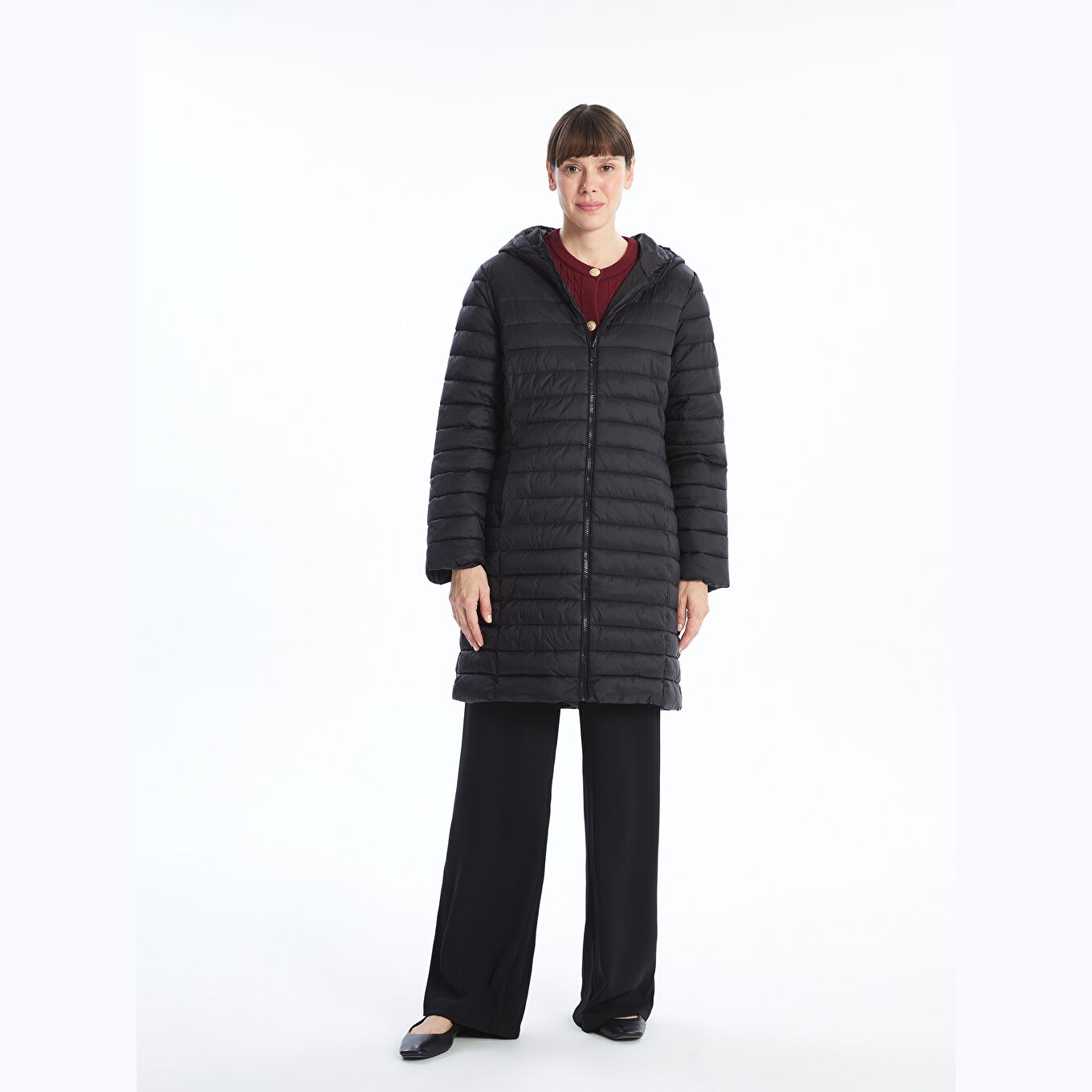 معطف نسائي شتوي بقبعة من LCWAIKIKI Classic – أسود (قصة قياسية، تصميم ميدي، خامة بولياميد سادة بسماكة متوسطة، مزود بسحاب أمامي وقبعة ثابتة، مثالي للإطلالات الشتوية اليومية بأسلوب عملي وأنيق)