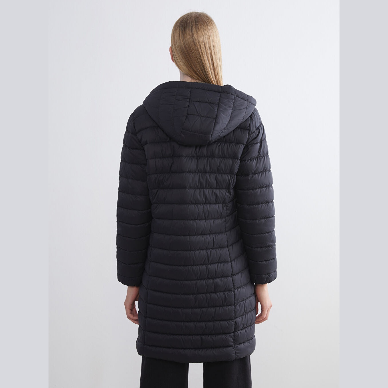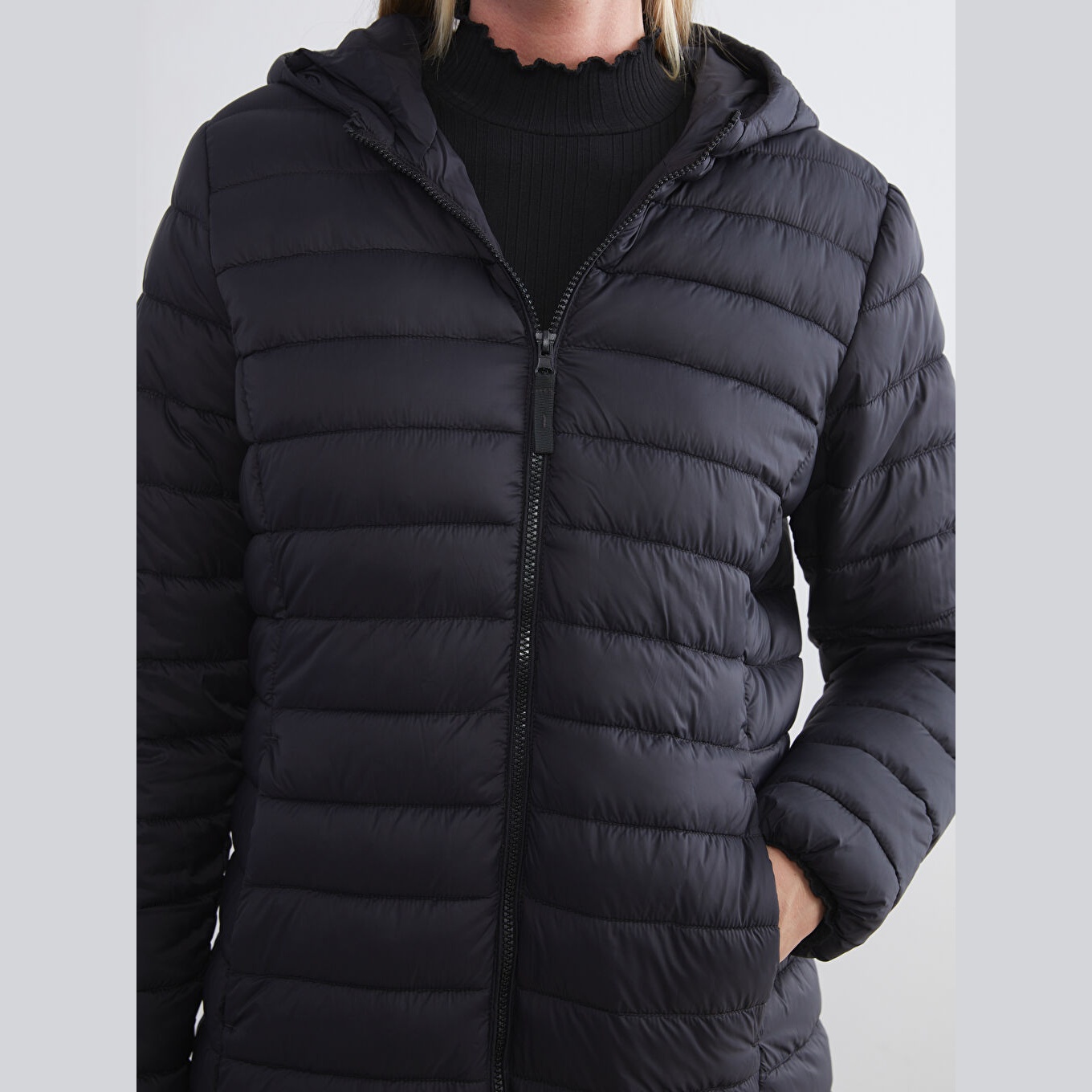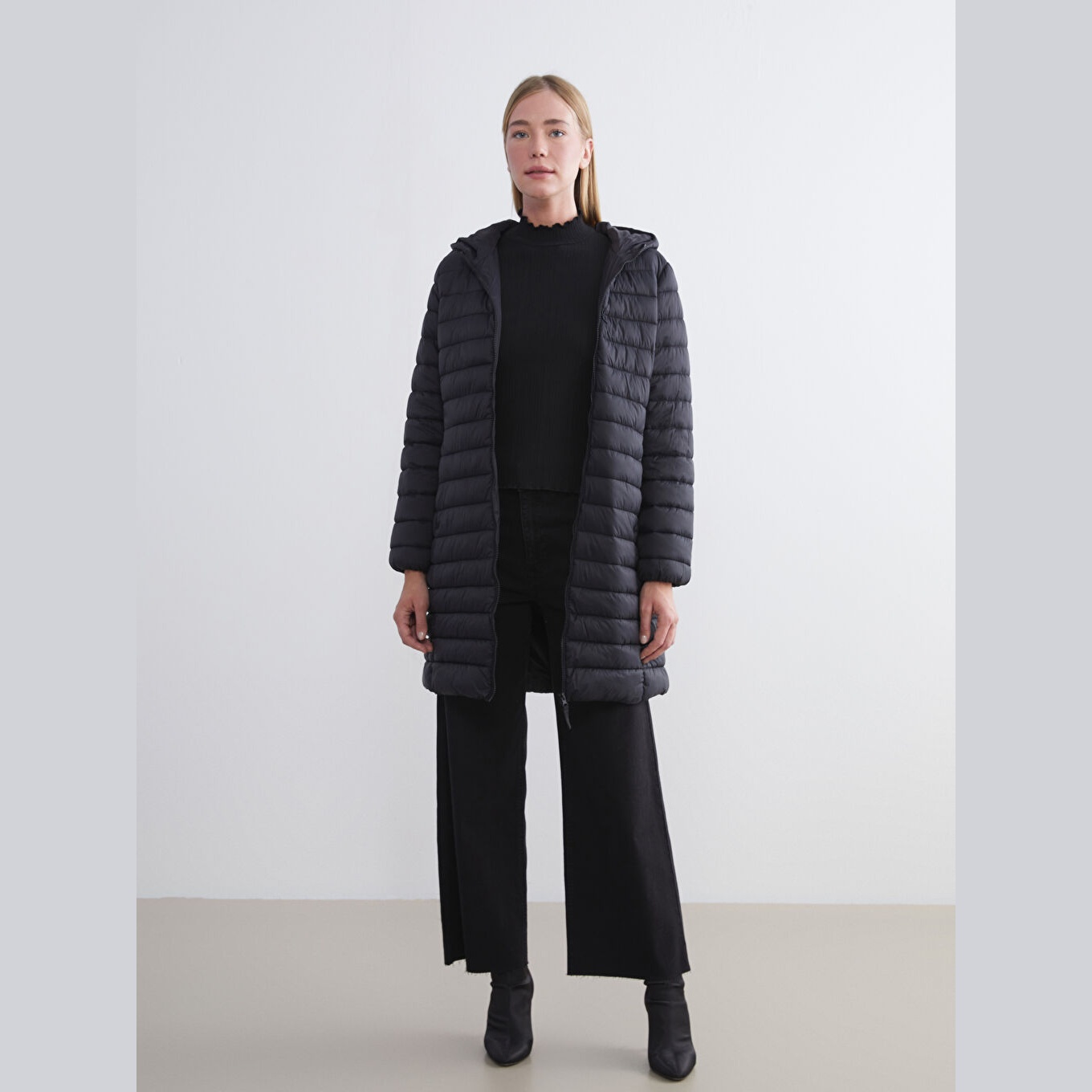 معطف نسائي شتوي بقبعة من LCWAIKIKI Büyük Beden – أسود (قصة قياسية، تصميم ميدي، خامة بولياميد سادة بسماكة متوسطة، مزود بسحاب أمامي وقبعة ثابتة، مثالي للإطلالات الشتوية اليومية بأسلوب عملي ومريح للمقاسات الكبيرة)
