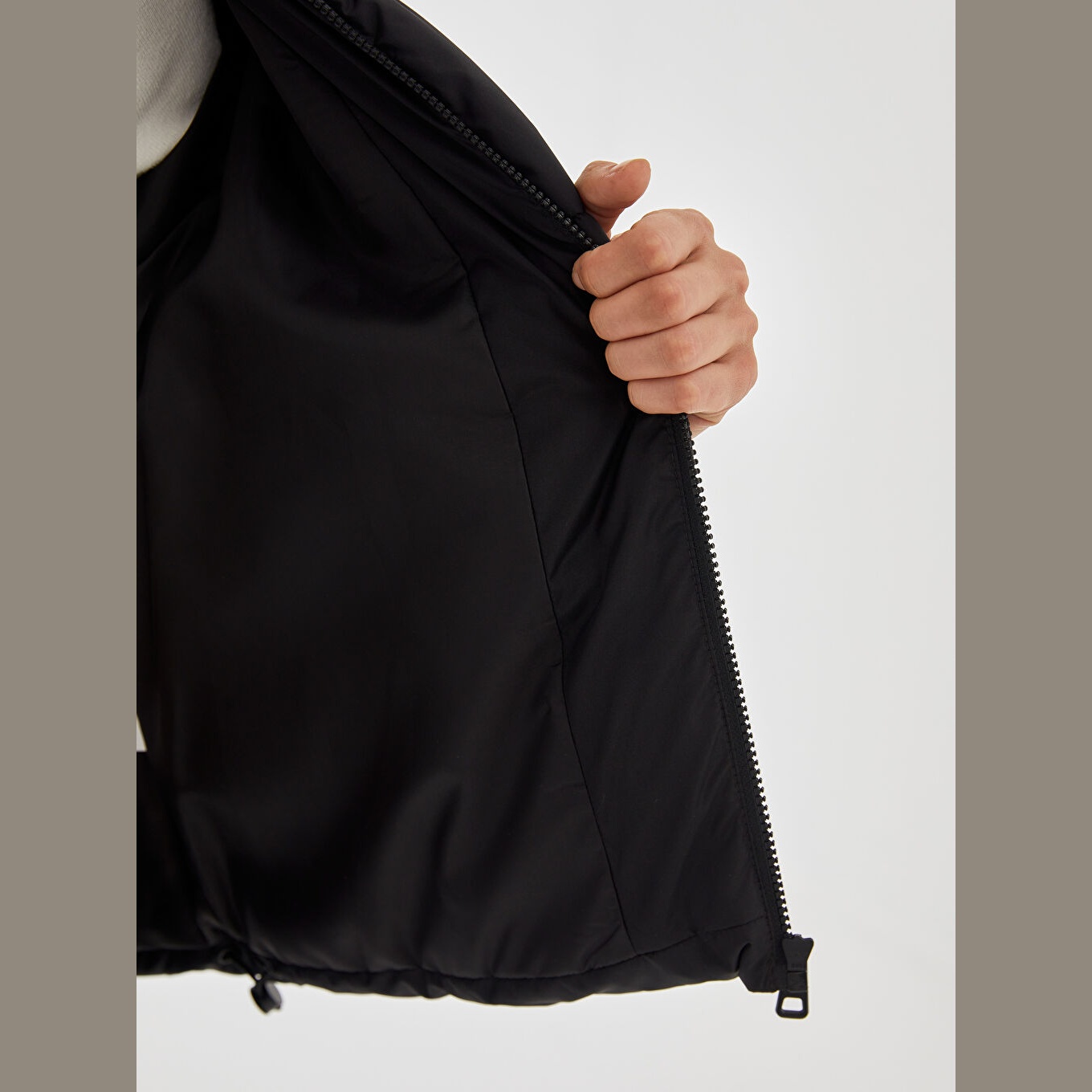 جاكيت شتوي بلون أسود من مجموعة LCW Vision، تصميم بقبعة ثابتة للحماية من الرياح، قصة واسعة (Loose Fit) تمنحك مظهرًا مريحًا وعصريًا، خامة خارجية من %100 بوليستر، مبطّنة بالكامل بـ%100 بوليستر، مع حشوة داخلية من %100 بوليستر، تصميم سادة بدون نقوش، بطول قصير يُقاس من الكتف، مزود بسحاب أمامي، مثالي للإطلالات اليومية في الطقس البارد بأسلوب عملي.