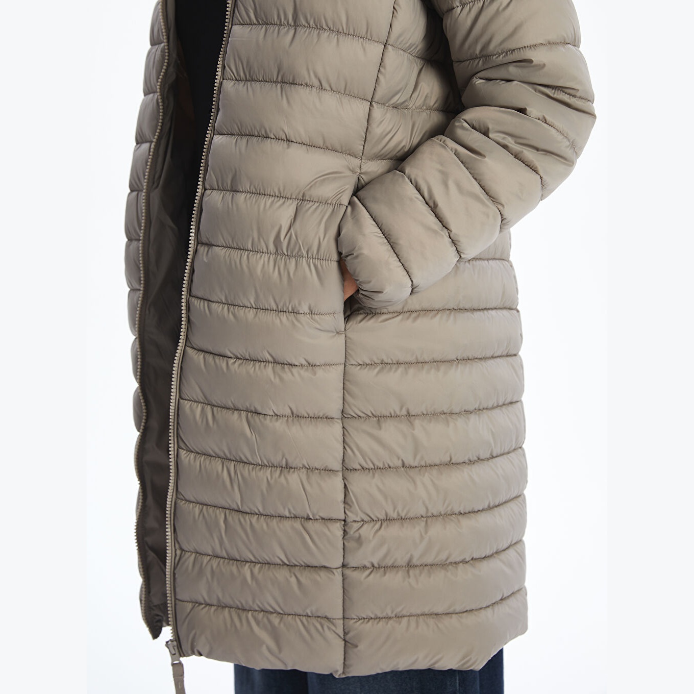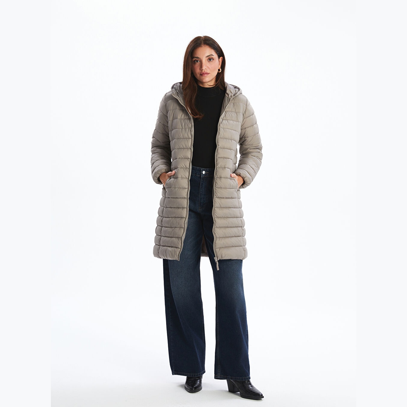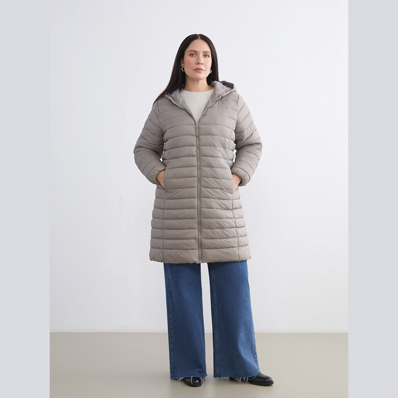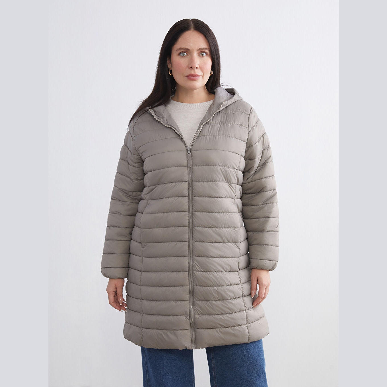 معطف نسائي شتوي بقبعة من LCWAIKIKI Büyük Beden – بني (قصة قياسية، تصميم ميدي، خامة بولياميد سادة بسماكة متوسطة، مزود بسحاب أمامي وقبعة ثابتة، مثالي للإطلالات الشتوية اليومية بأسلوب عملي ومريح للمقاسات الكبيرة)