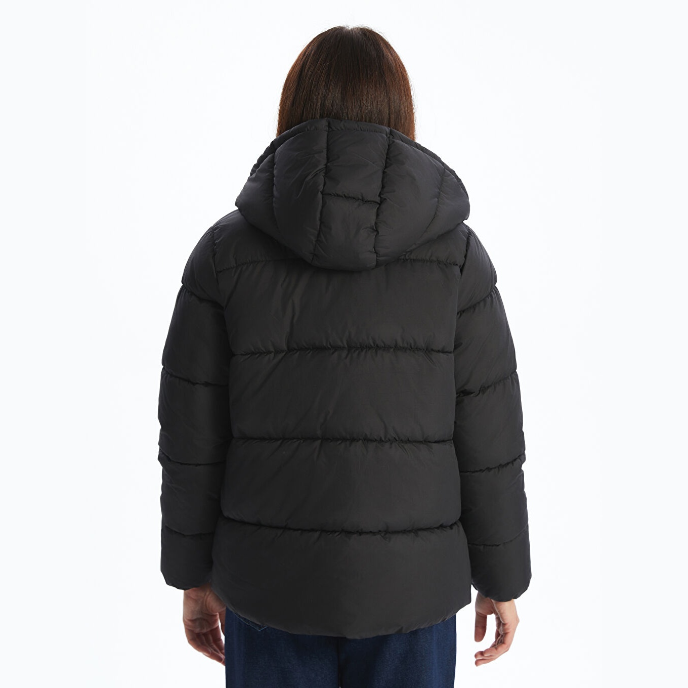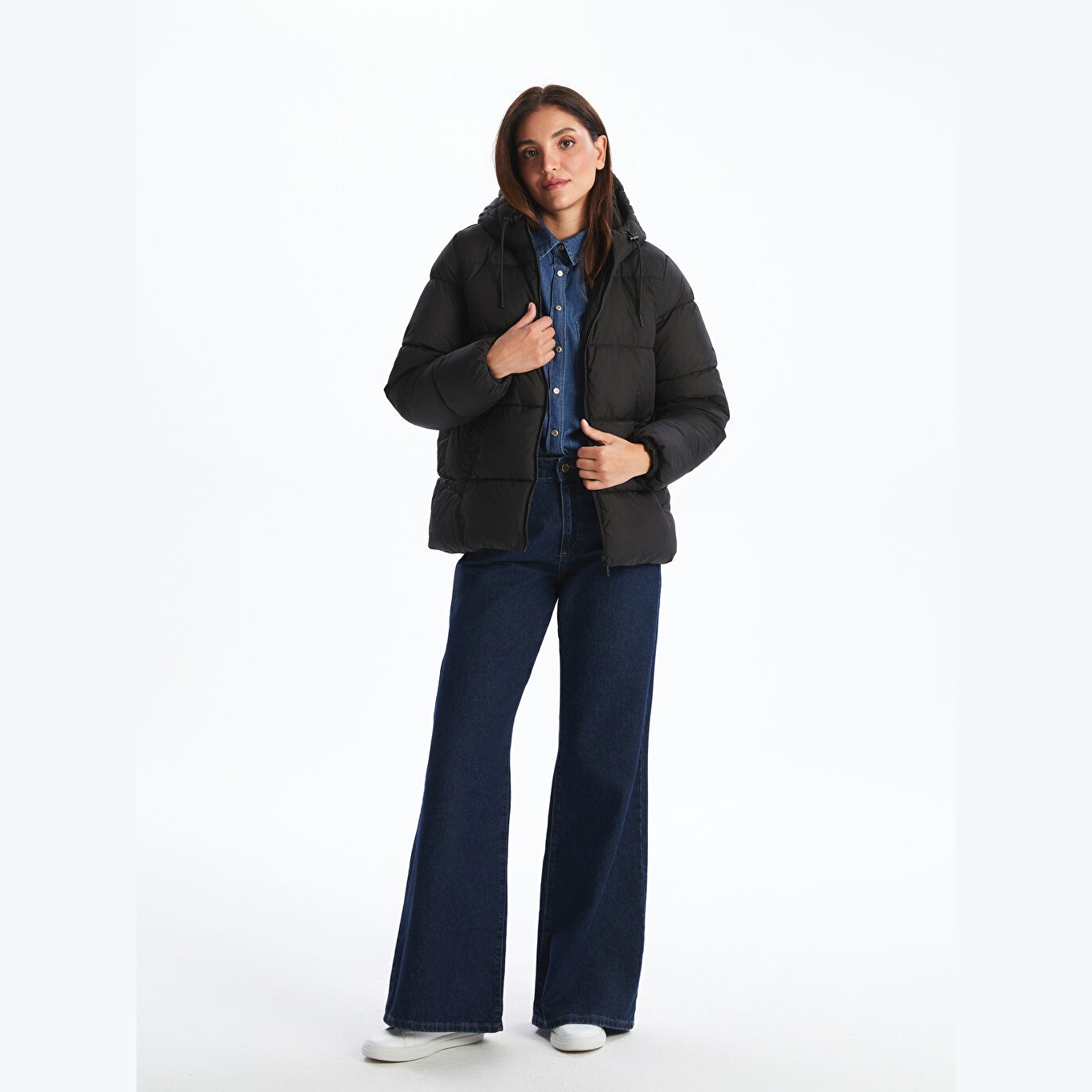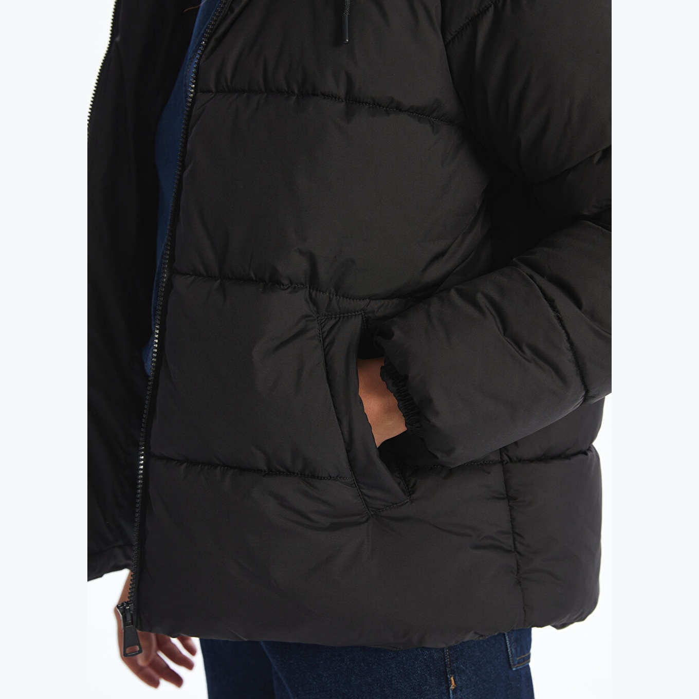 جاكيت نسائي شتوي بقبعة من LCWAIKIKI Büyük Beden – أسود (قصة واسعة، تصميم قصير، خامة بوليستر سادة بسماكة عالية، مزود بسحاب أمامي وقبعة ثابتة، مثالي للإطلالات الشتوية اليومية بأسلوب عملي ومريح للمقاسات الكبيرة)