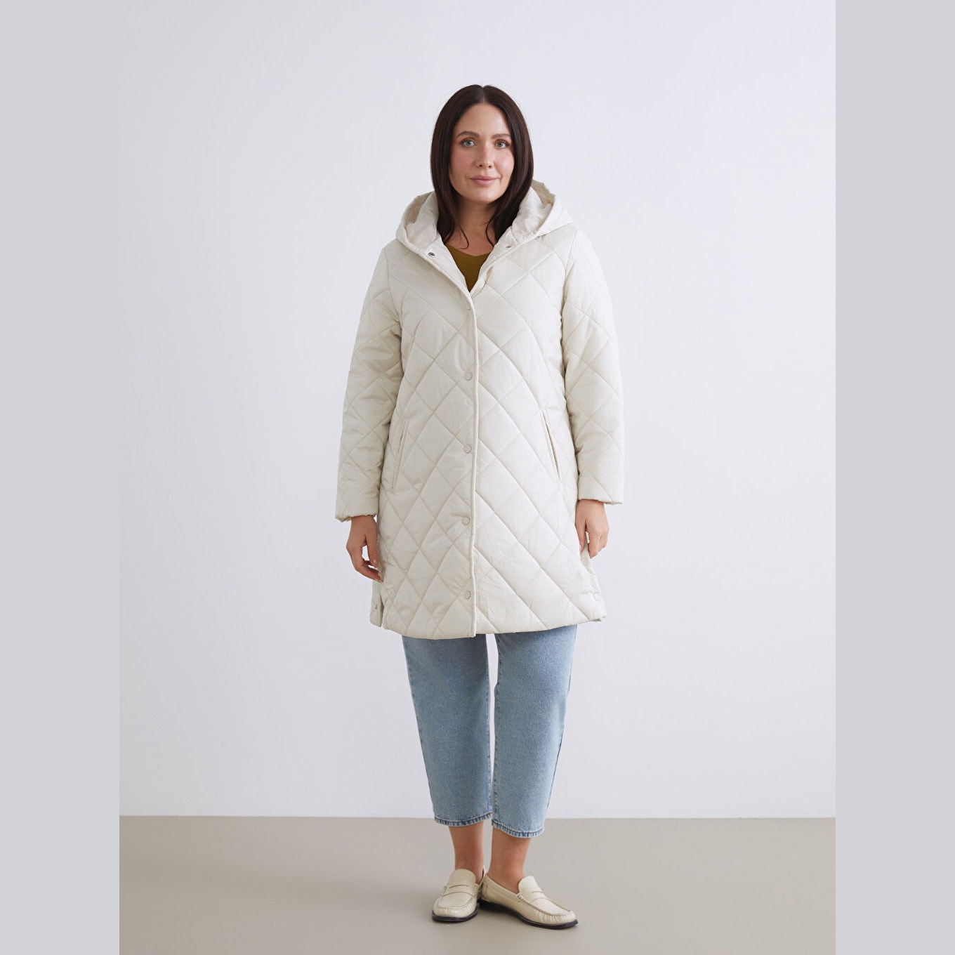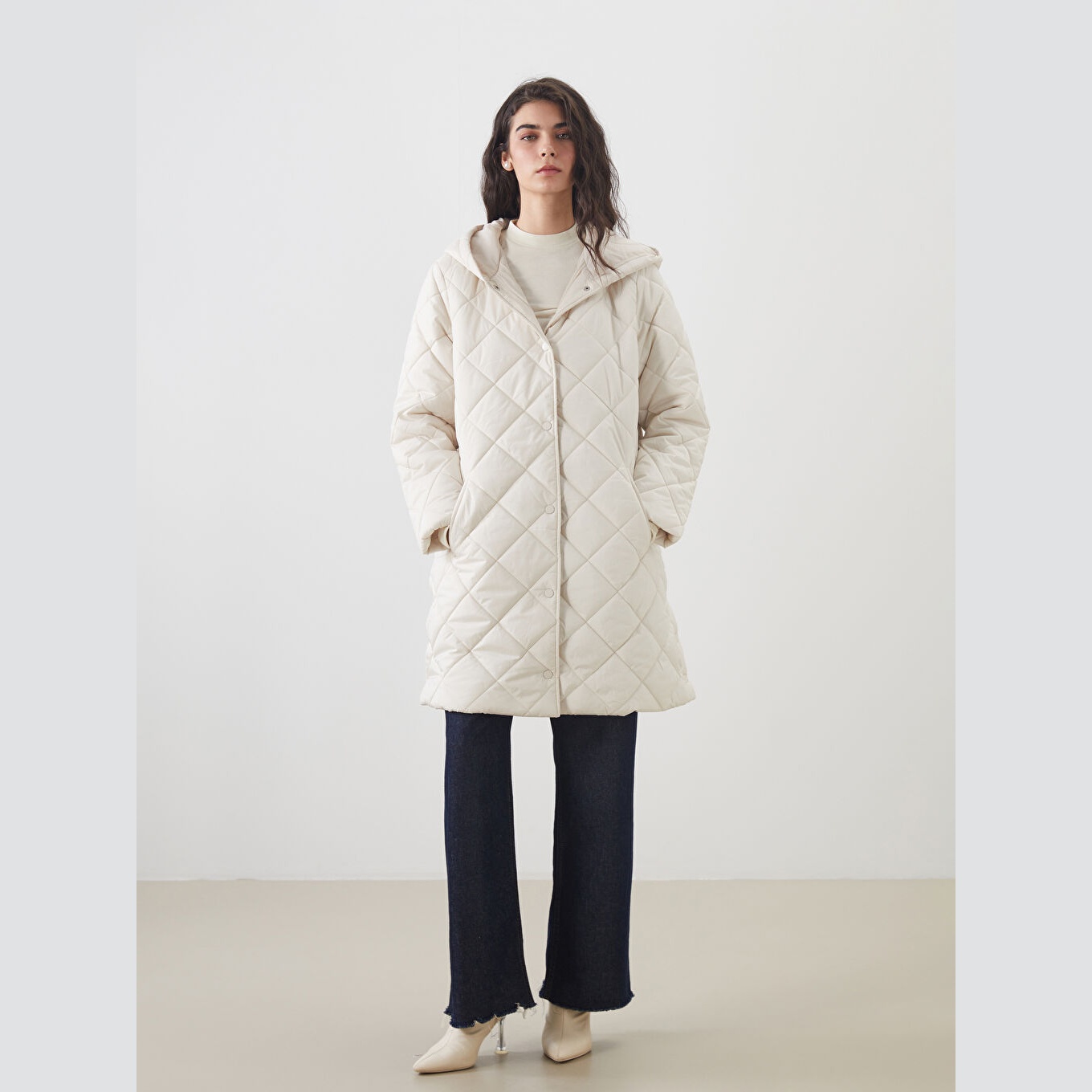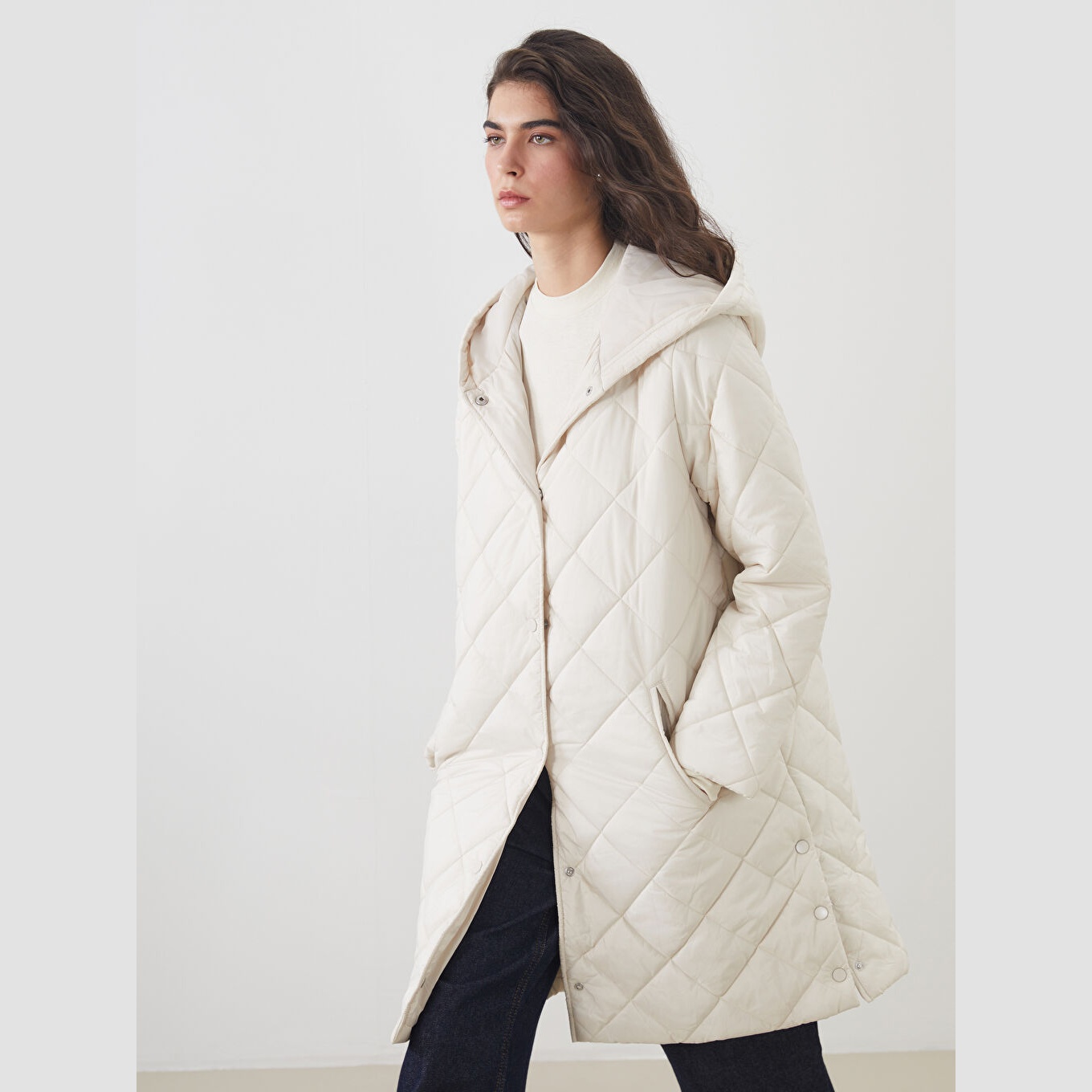 معطف نسائي شتوي بستايل كابيتوني من LCW Modest – بيج (قصة واسعة، تصميم ميدي، خامة بوليستر بنمط كابيتوني، سماكة خفيفة، مزود بسحاب أمامي وقبعة ثابتة، مثالي للإطلالات الشتوية اليومية بأسلوب عملي ومحافظ)