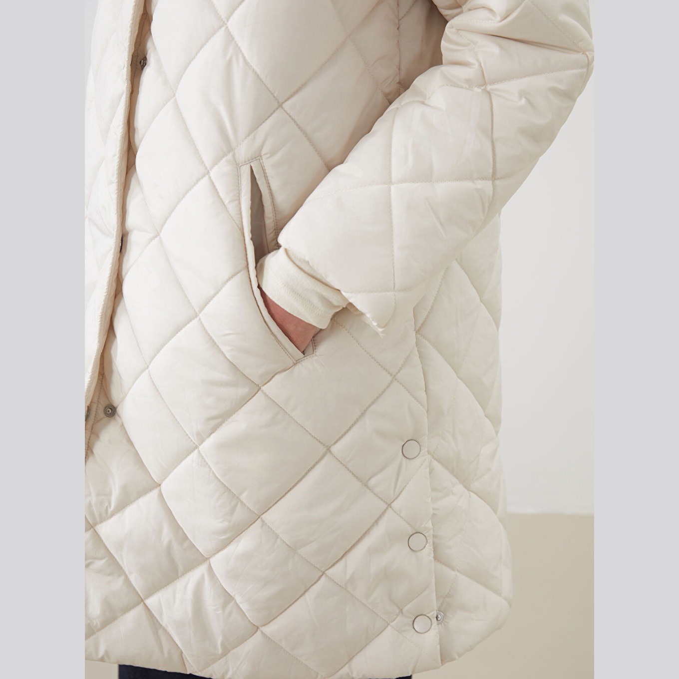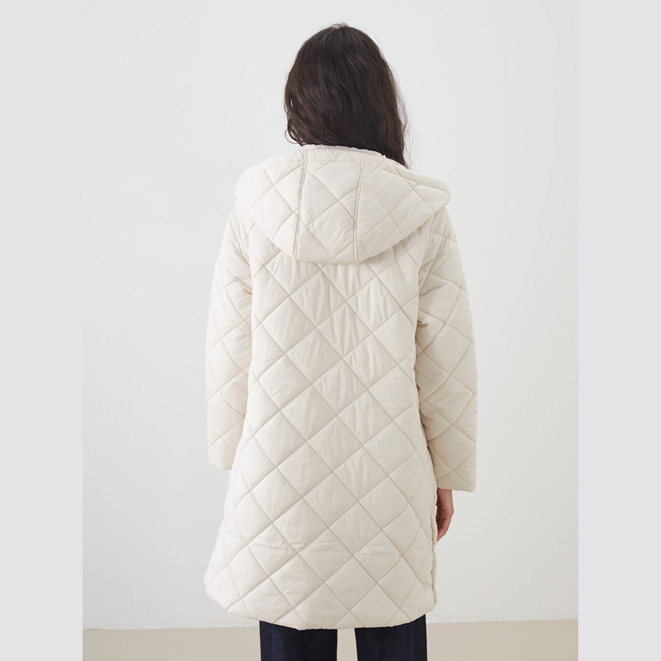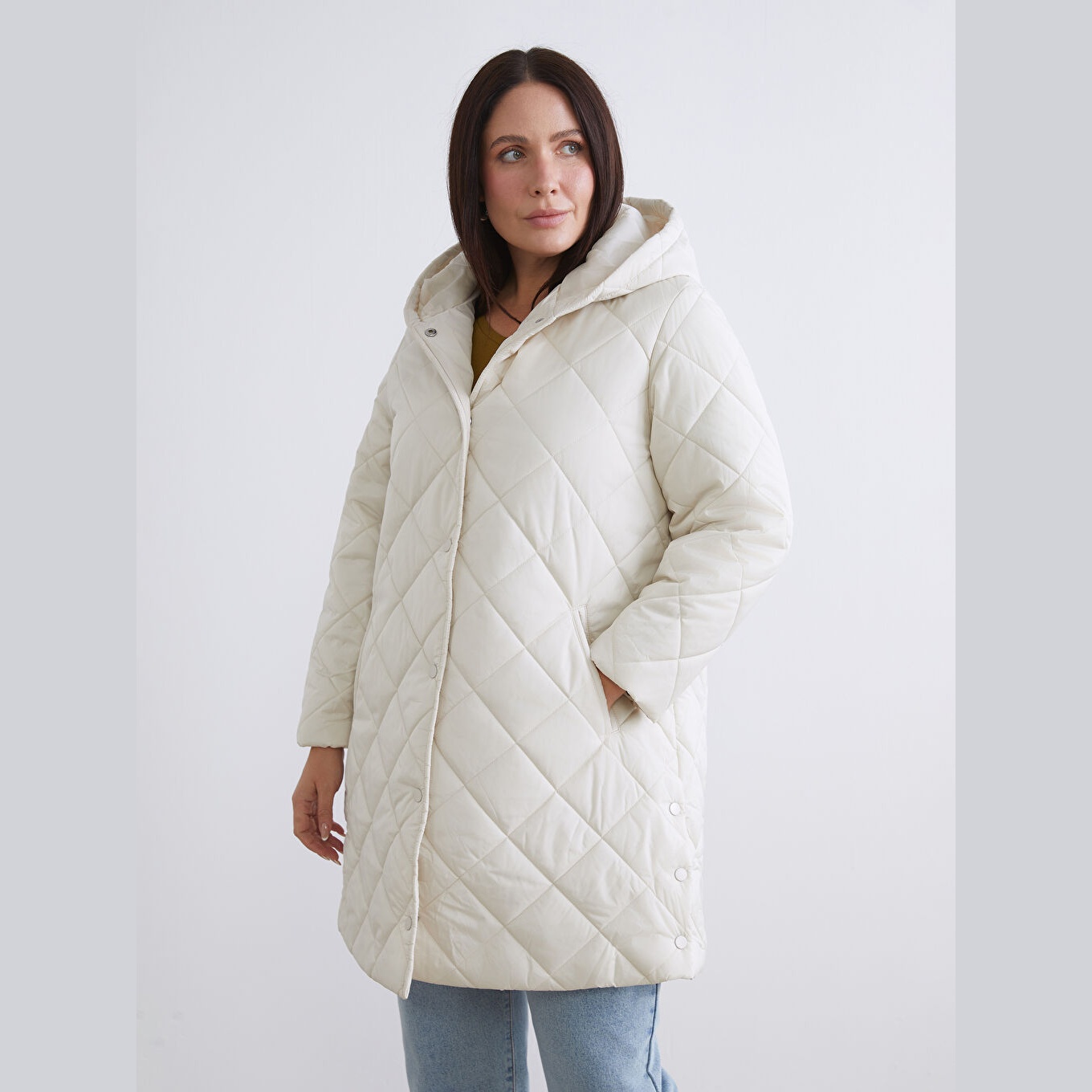 معطف نسائي شتوي بستايل كابيتوني من LCW Modest – بيج (قصة واسعة، تصميم ميدي، خامة بوليستر بنمط كابيتوني، سماكة خفيفة، مزود بسحاب أمامي وقبعة ثابتة، مثالي للإطلالات الشتوية اليومية بأسلوب عملي ومحافظ)