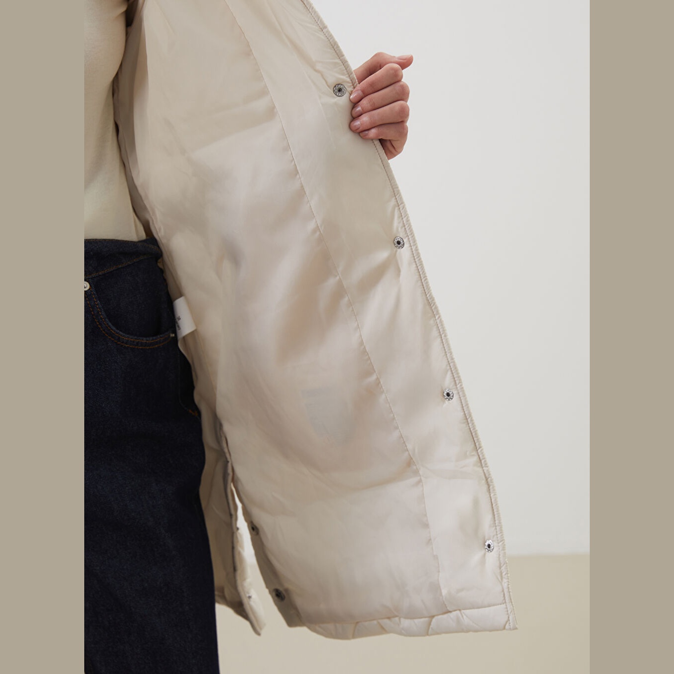 معطف شتوي بلون بيج من مجموعة LCW Modest، تصميم بقبعة ثابتة للحماية من الرياح، قصة واسعة (Loose Fit) تمنحك مظهرًا مريحًا ومحافظًا، خامة خارجية من %100 بوليستر بنمط كابيتوني، مبطّنة بالكامل بـ%100 بوليستر، مع حشوة داخلية من %100 بوليستر، تصميم سادة، بطول ميدي يُقاس من الكتف، مزود بسحاب أمامي، مثالي للإطلالات اليومية في الطقس البارد بأسلوب عملي وأنيق.
