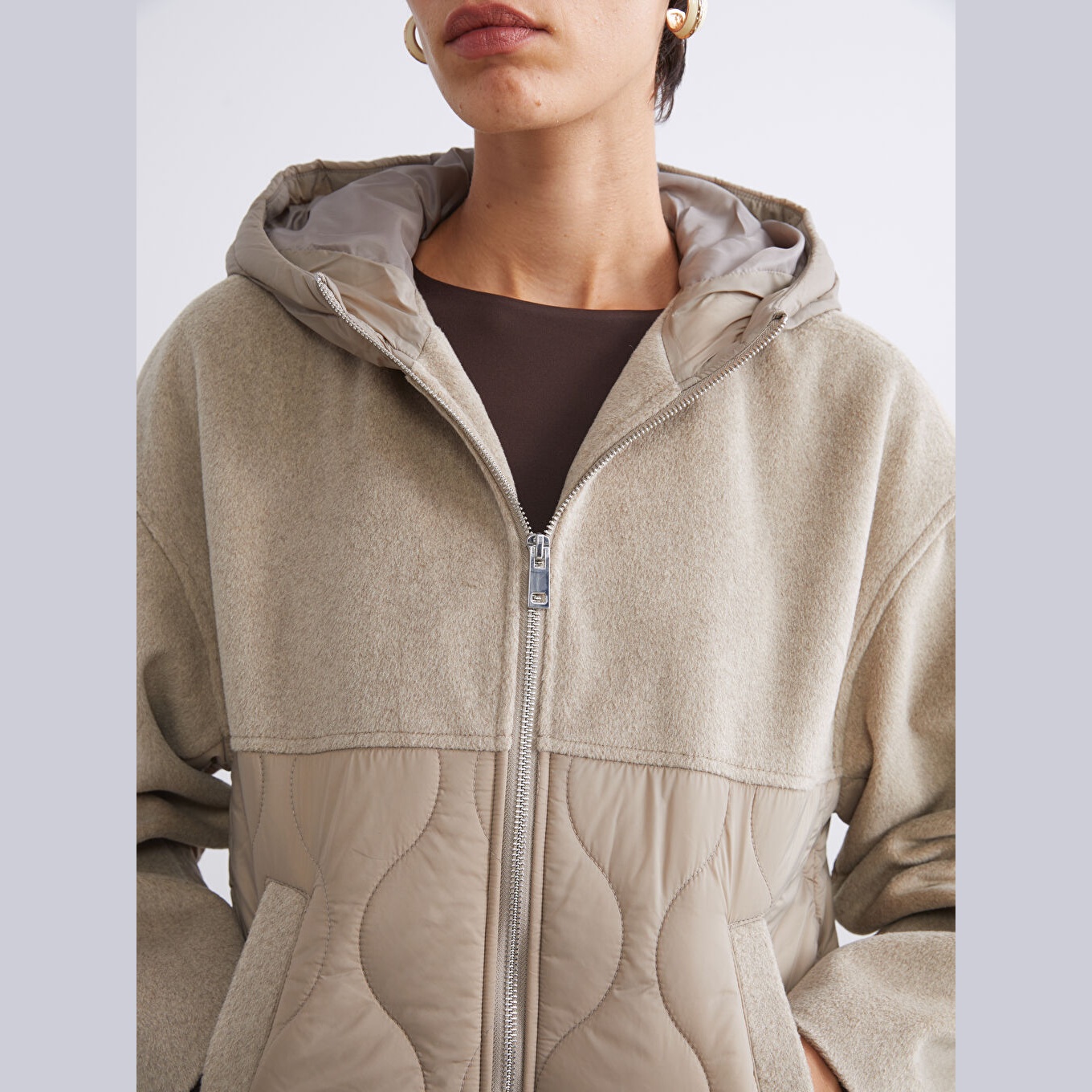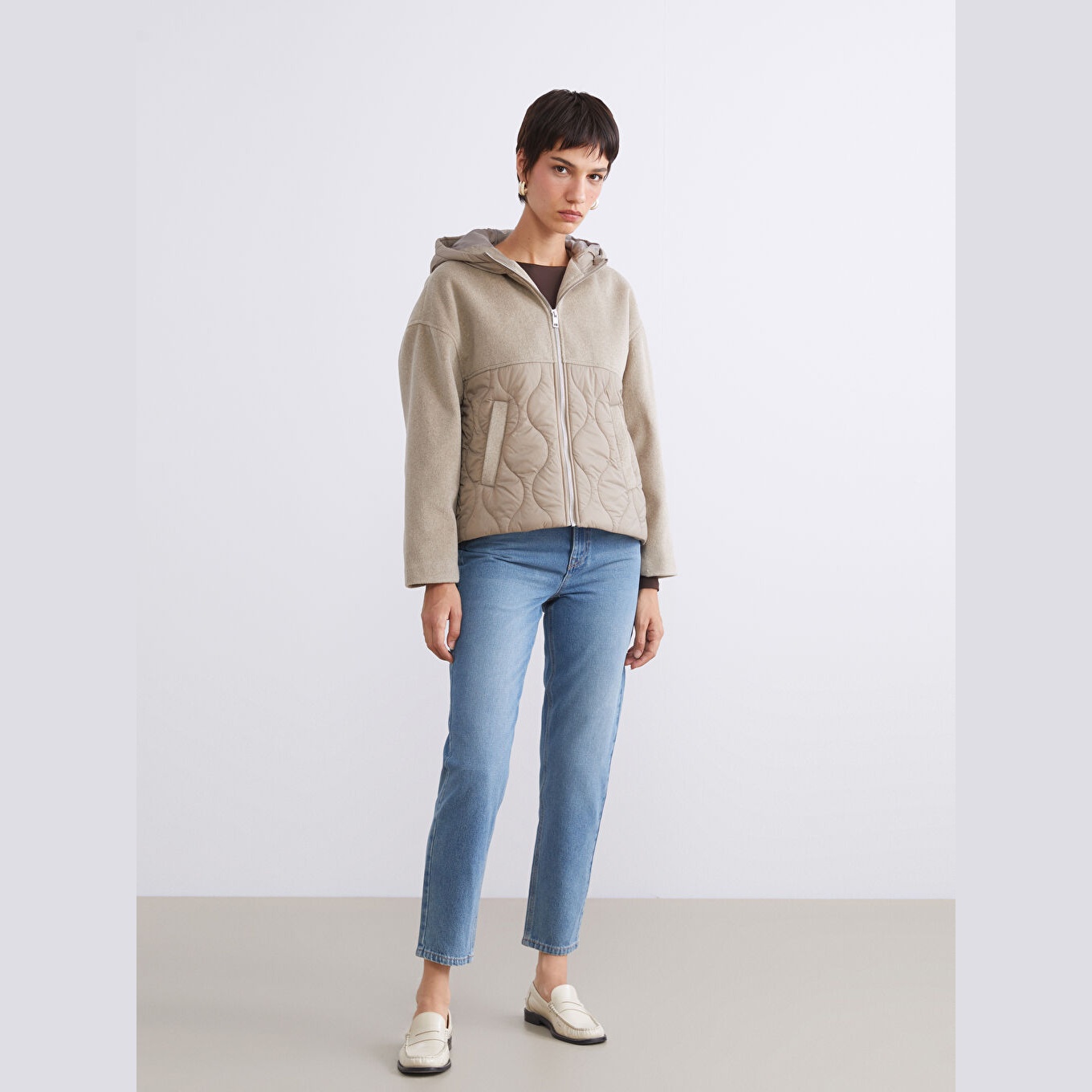 جاكيت شتوي بلون بني من مجموعة LCW Vision، تصميم بقبعة ثابتة للحماية من الرياح، قصة واسعة (Oversize Fit) تمنحك مظهرًا مريحًا وعصريًا، خامة خارجية من %100 بولياميد، مع طبقة ثانية من %100 بوليستر، مبطّنة بالكامل بـ%100 بوليستر، وحشوة داخلية من %100 بوليستر، تصميم كابيتوني سادة، بطول قصير يُقاس من الكتف، مزود بسحاب أمامي، مثالي للإطلالات اليومية في الطقس البارد بأسلوب عملي.