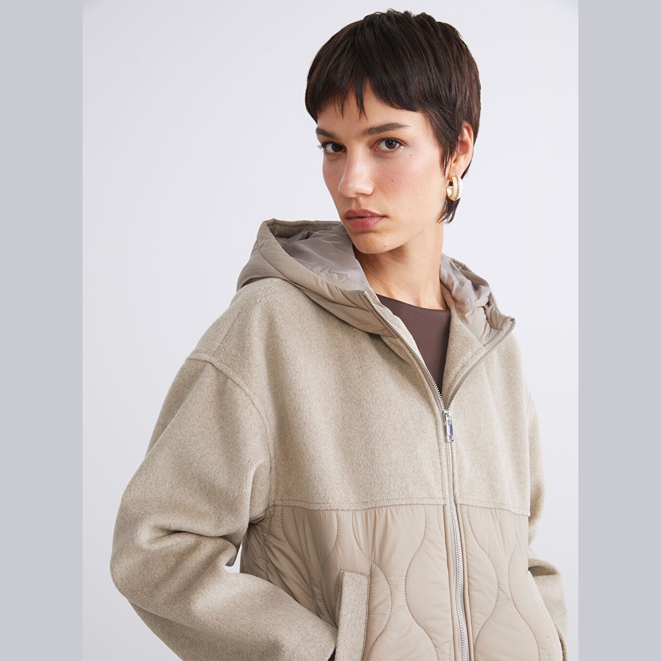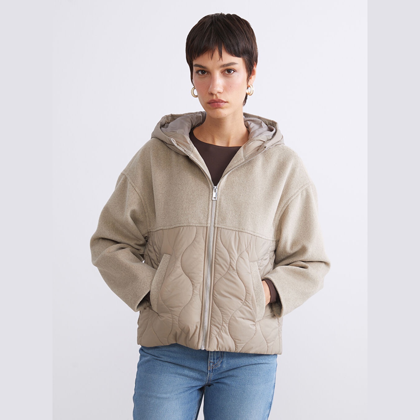 جاكيت نسائي شتوي بستايل كابيتوني من LCW Vision – بني (قصة واسعة، تصميم قصير، خامة بولياميد وبطانة بوليستر بنمط كابيتوني، سماكة متوسطة، مزود بسحاب أمامي وقبعة ثابتة، مثالي للإطلالات الشتوية اليومية بأسلوب عملي وعصري)