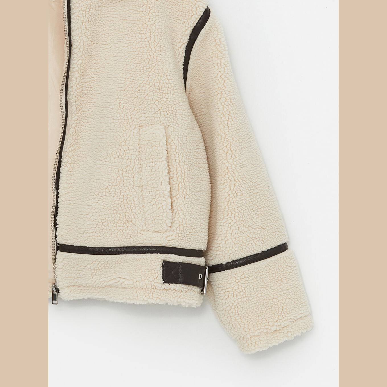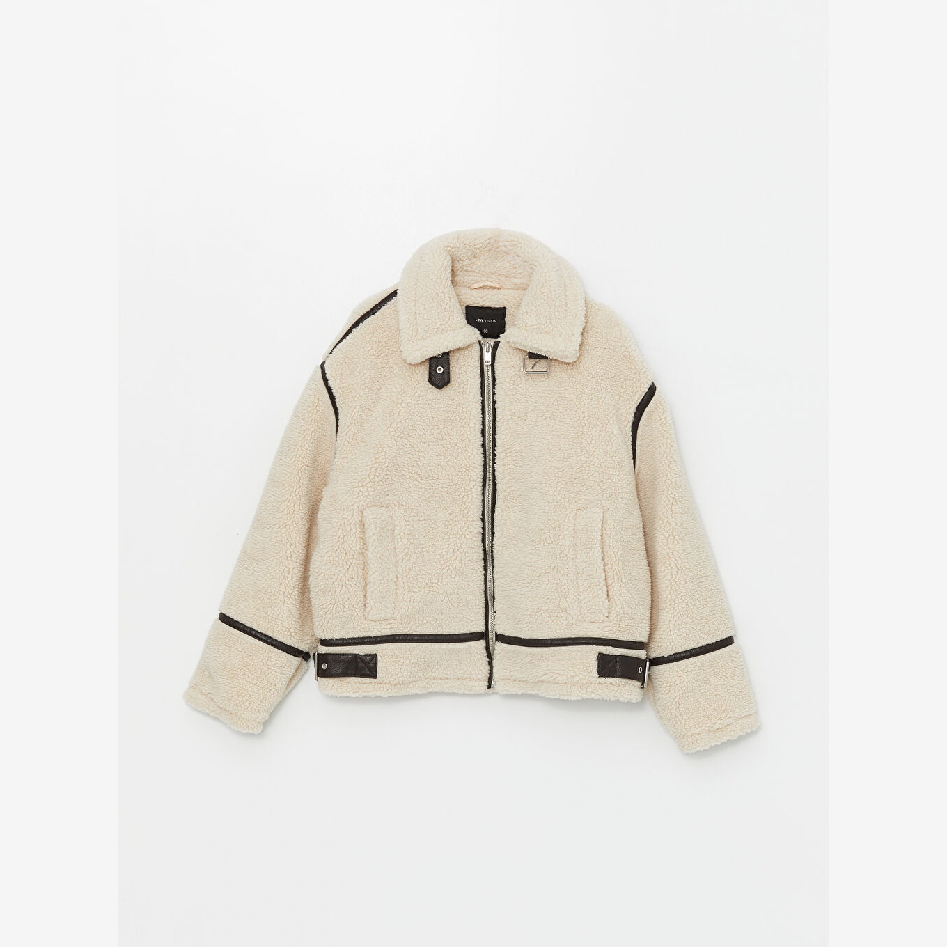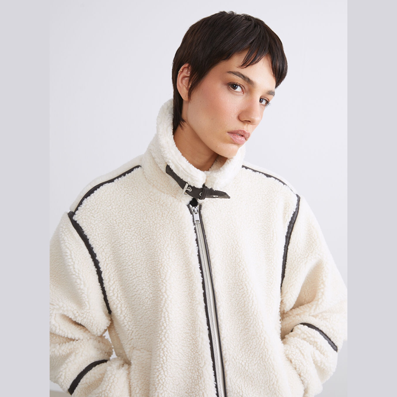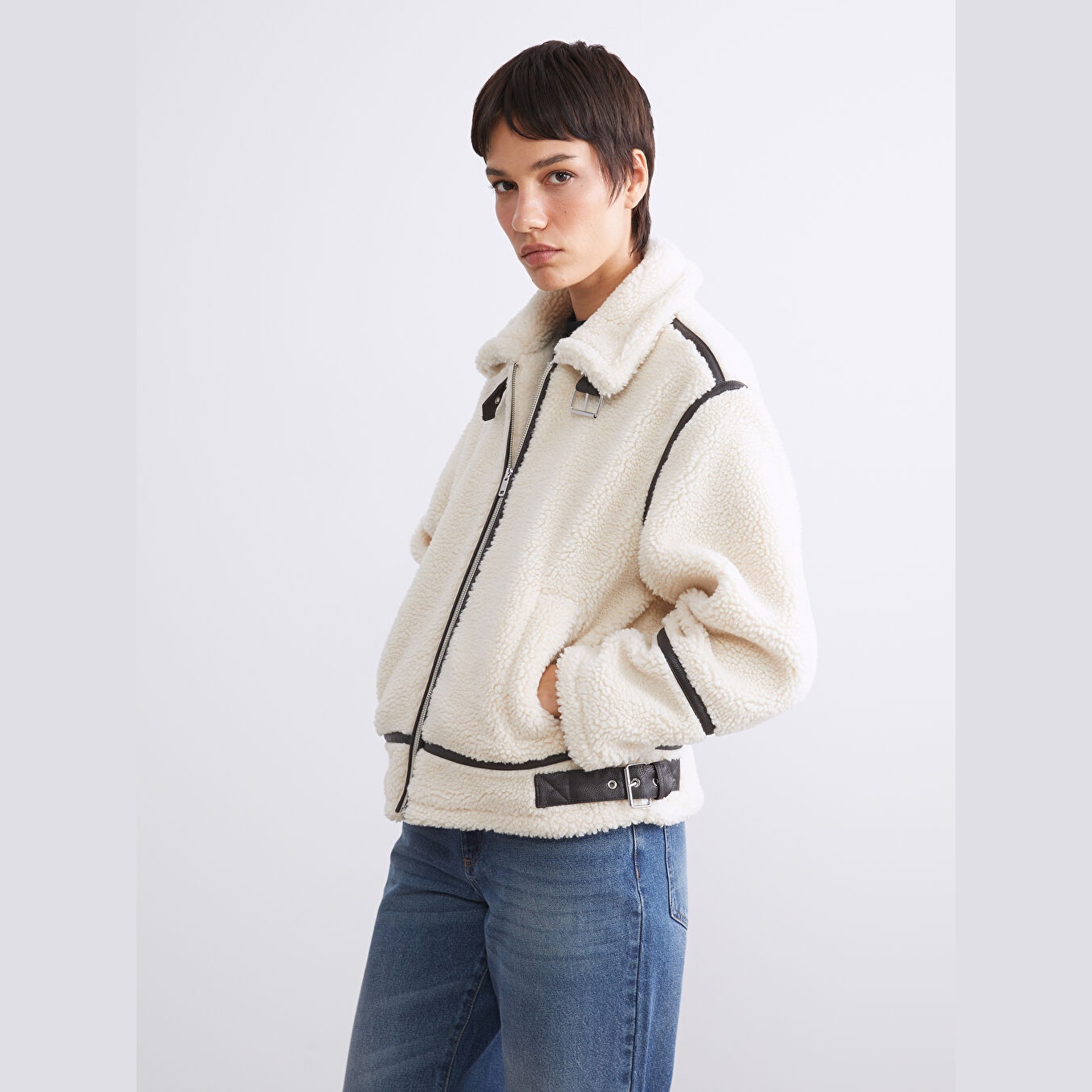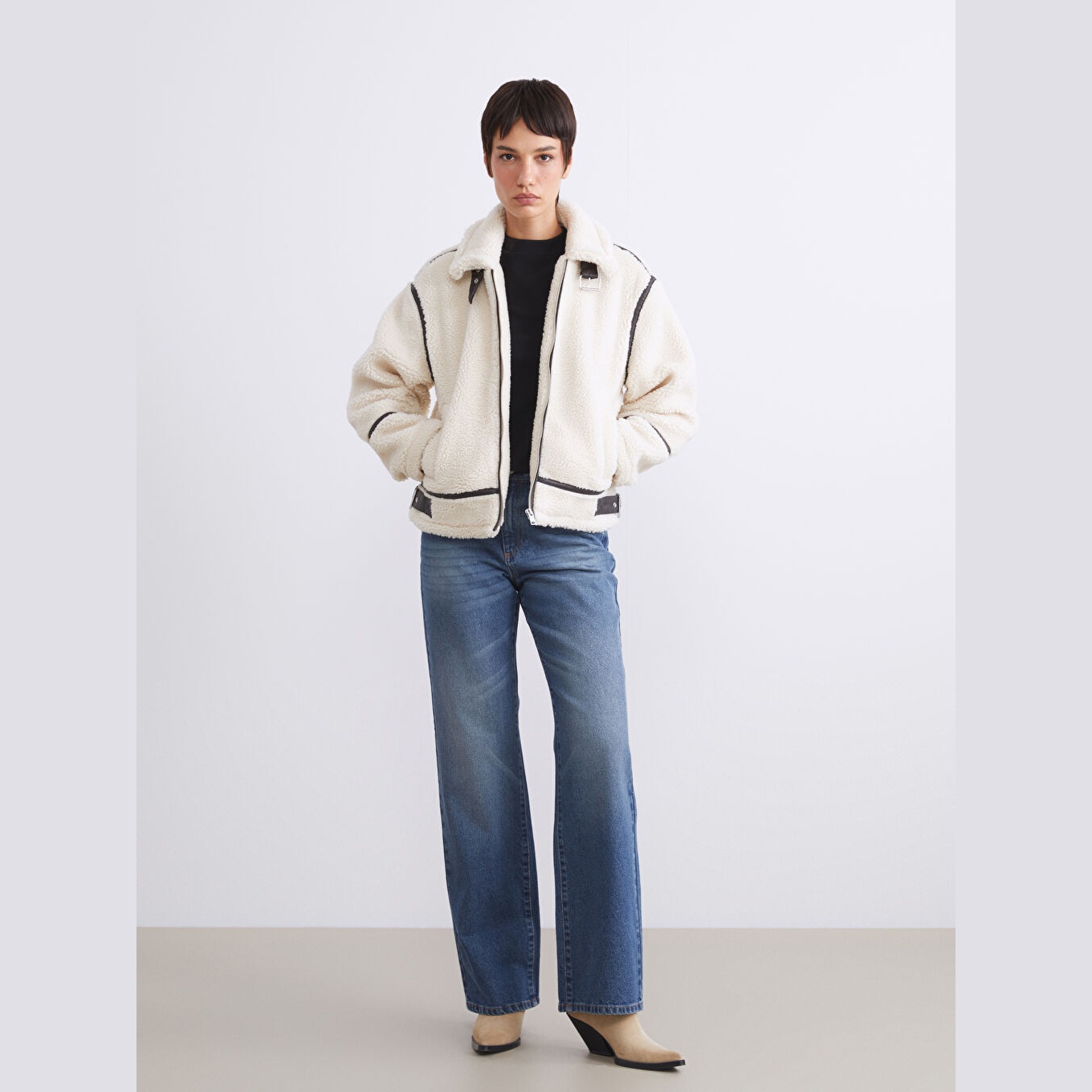 جاكيت نسائي شتوي من LCW Vision – إكرو (قصة واسعة، تصميم قصير، خامة بيليوش ناعمة، بياقة قميص، سماكة عالية، مثالي للإطلالات الشتوية اليومية بأسلوب أنيق ودافئ)