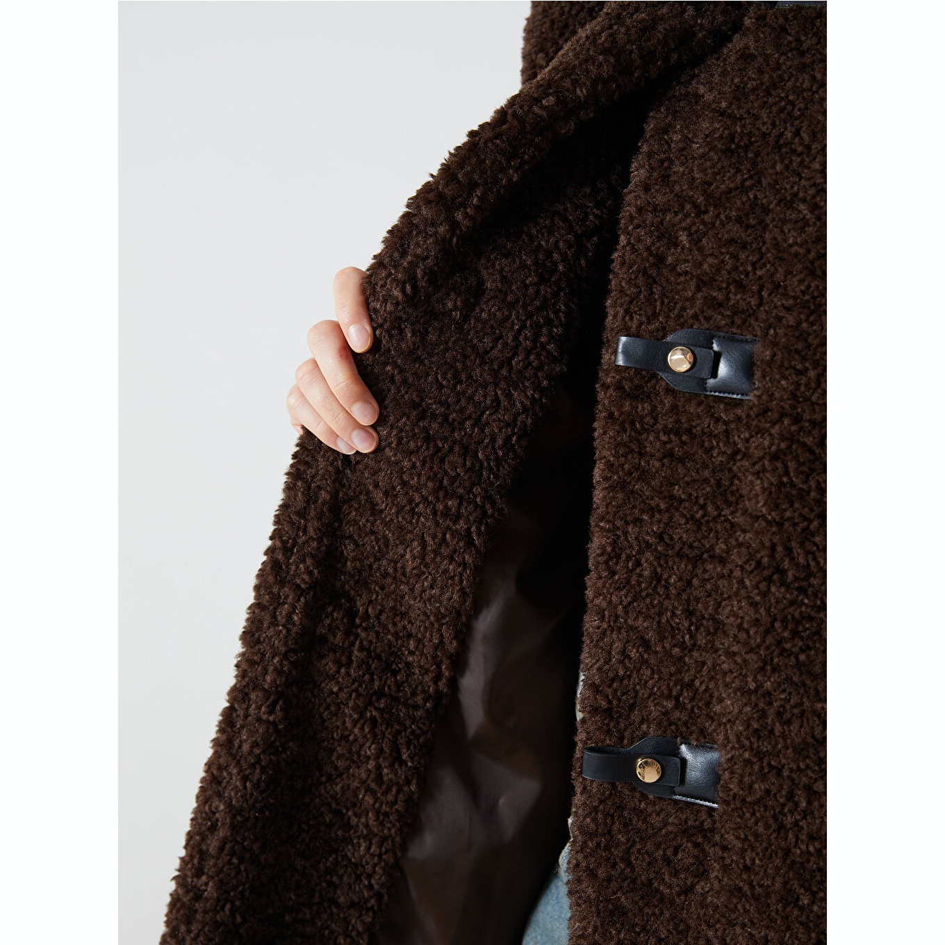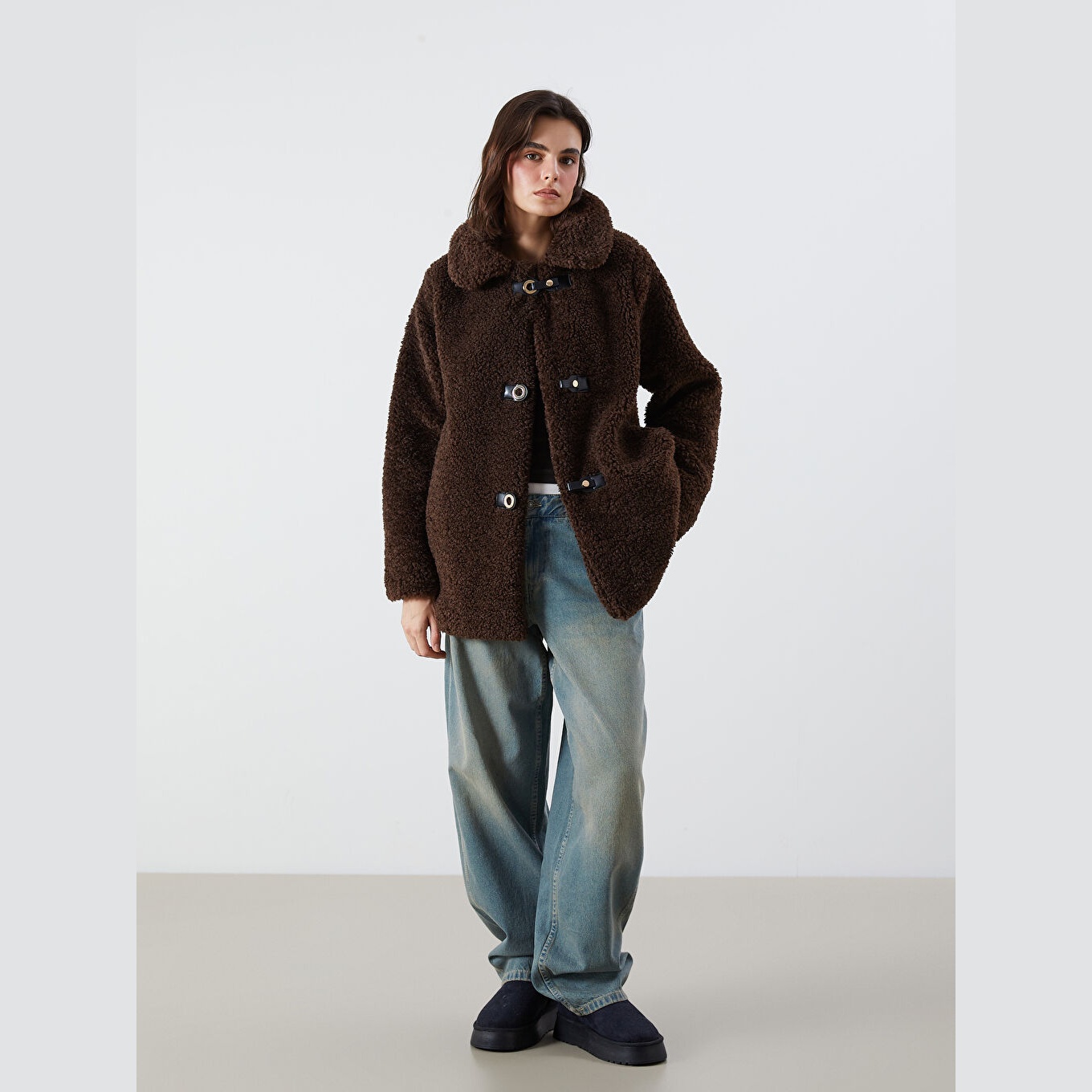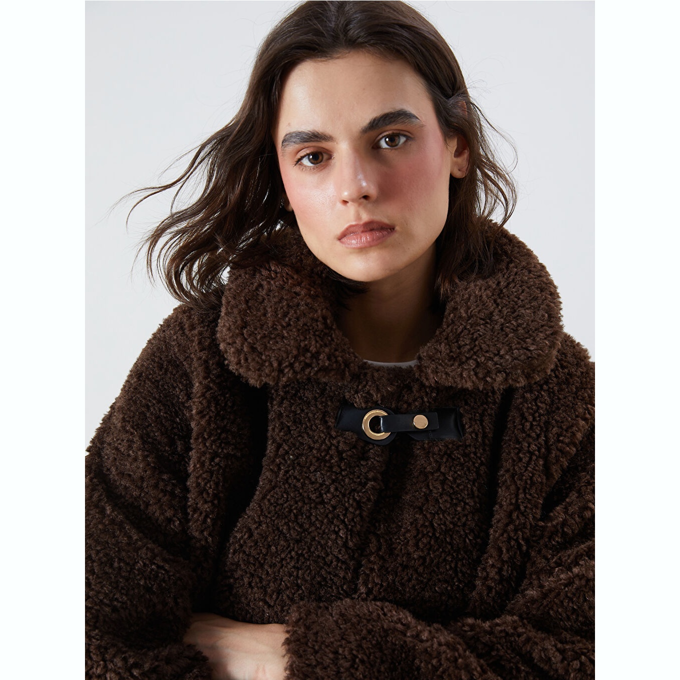 معطف نسائي شتوي من LCW Vision – بني (قصة واسعة، تصميم ميدي، خامة بيليوش ناعمة، بياقة قميص، بدون قبعة، مثالي للإطلالات الشتوية اليومية بأسلوب أنيق ودافئ)