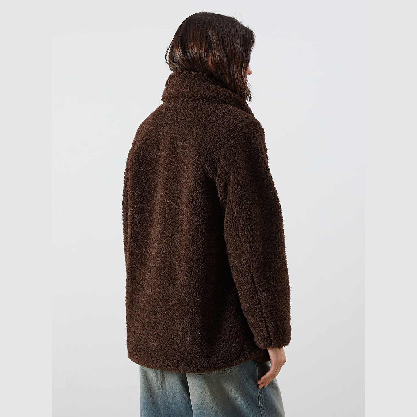معطف شتوي بلون بني من مجموعة LCW Vision، تصميم بياقة قميص (Gömlek Yaka) يمنحك مظهرًا أنيقًا، قصة واسعة (Loose Fit) توفر راحة وأناقة، خامة خارجية من %100 بوليستر بملمس بيليوش ناعم، مبطّنة بالكامل بـ%100 بوليستر، تصميم سادة بدون نقوش، بطول ميدي يُقاس من الكتف، بدون قبعة، مثالي للإطلالات اليومية في الطقس البارد بأسلوب أنيق ومريح.