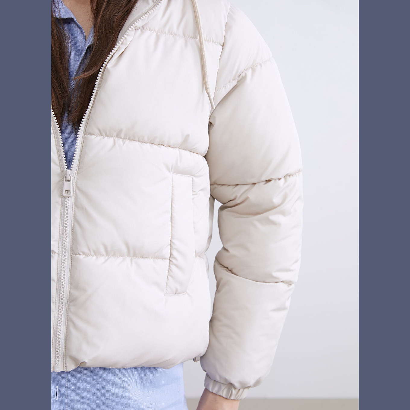 جاكيت شتوي بلون إكرو من مجموعة LCW Vision، تصميم بقبعة ثابتة للحماية من الرياح، قصة واسعة (Loose Fit) تمنحك حرية الحركة وراحة مثالية، خامة خارجية من %100 بوليستر، مبطّنة بالكامل بـبطانة ناعمة من %100 بوليستر، مع حشوة داخلية من %100 بوليستر، تصميم سادة بدون نقوش، بطول قصير يُقاس من الكتف، مزود بسحاب أمامي عملي، مثالي للإطلالات اليومية في الطقس البارد بأسلوب أنيق ومريح.