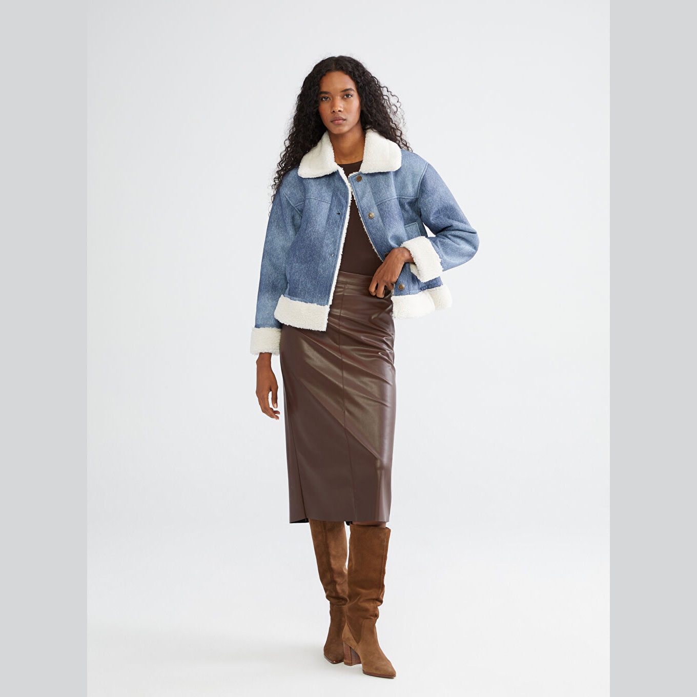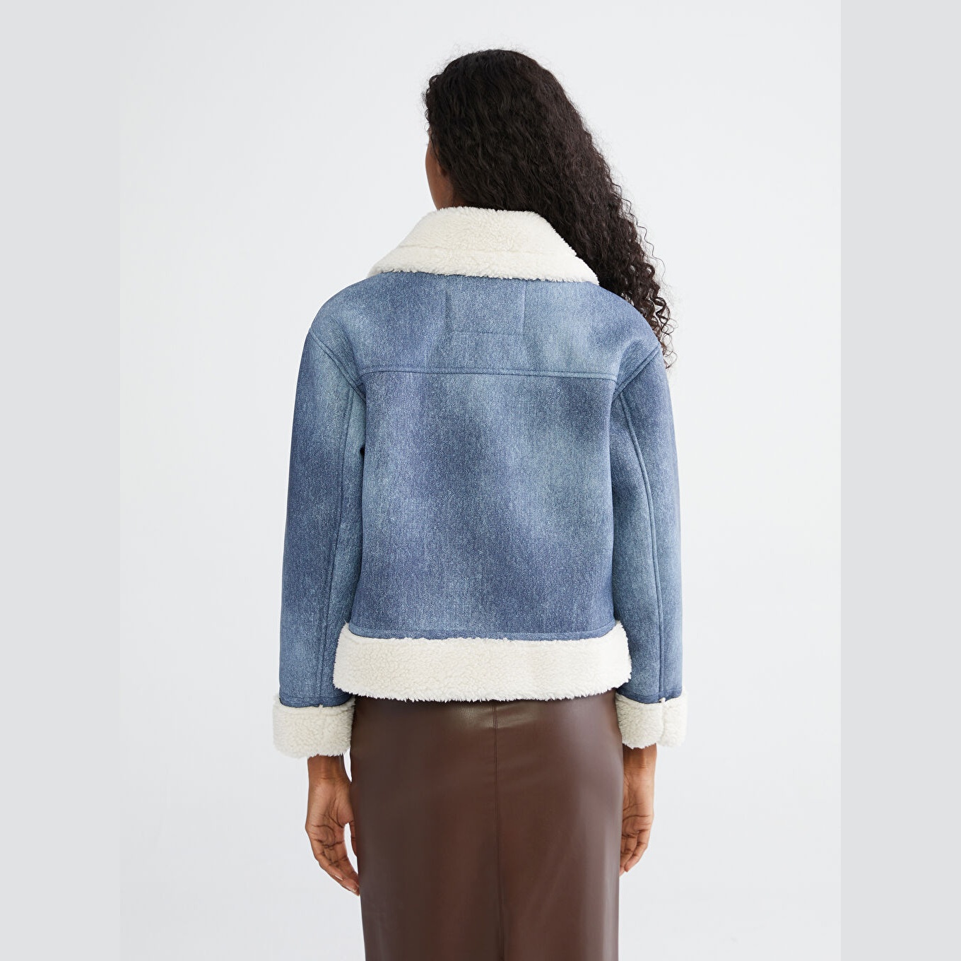 جاكيت نسائي شتوي من LCW Vision – أزرق (قصة واسعة، تصميم قصير، خامة سويدية الملمس مع طبقة بولي يوريثان، بطانة بيليوش، بياقة قميص، بدون قبعة، مثالي للإطلالات اليومية بأسلوب أنيق وعصري)