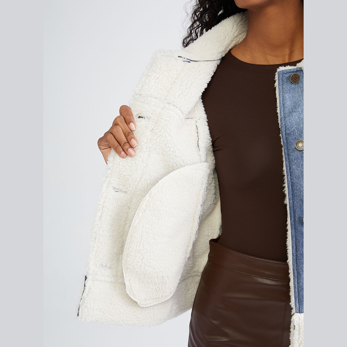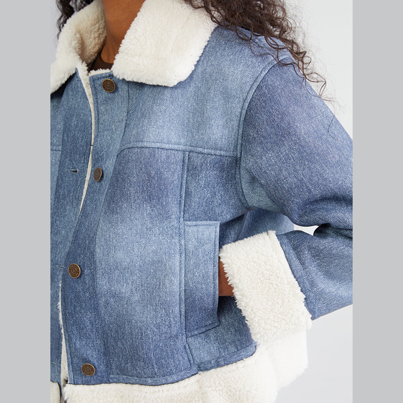 جاكيت شتوي بلون أزرق من مجموعة LCW Vision، تصميم بياقة قميص (Gömlek Yaka) يضفي لمسة كلاسيكية، قصة واسعة (Loose Fit) تمنحك مظهرًا مريحًا وعصريًا، خامة خارجية بملمس سويدي أنيق من %100 بوليستر مع طبقة علوية من %100 بولي يوريثان، مبطّنة بالكامل بـبطانة بيليوش ناعمة من %100 بوليستر، تصميم سادة بدون نقوش، بطول قصير يُقاس من الكتف، بدون قبعة، مثالي للإطلالات اليومية في الطقس البارد بأسلوب أنيق ومريح.