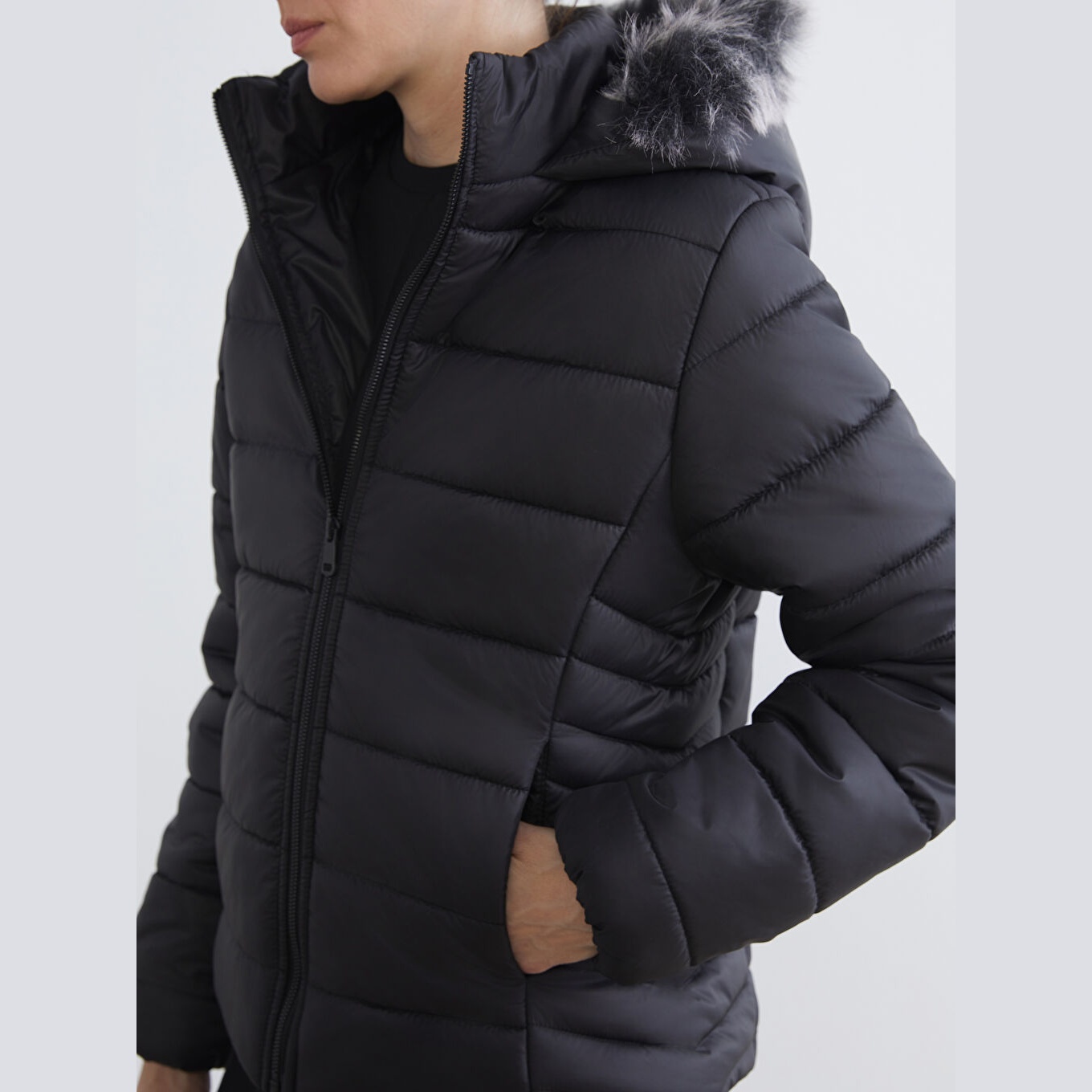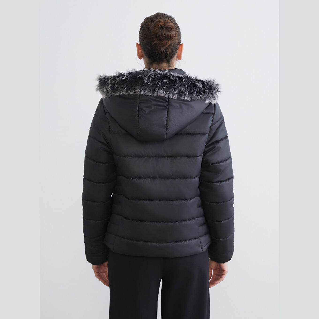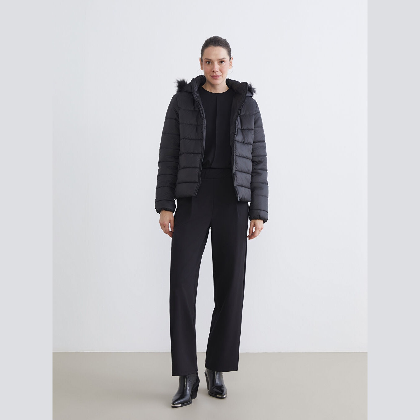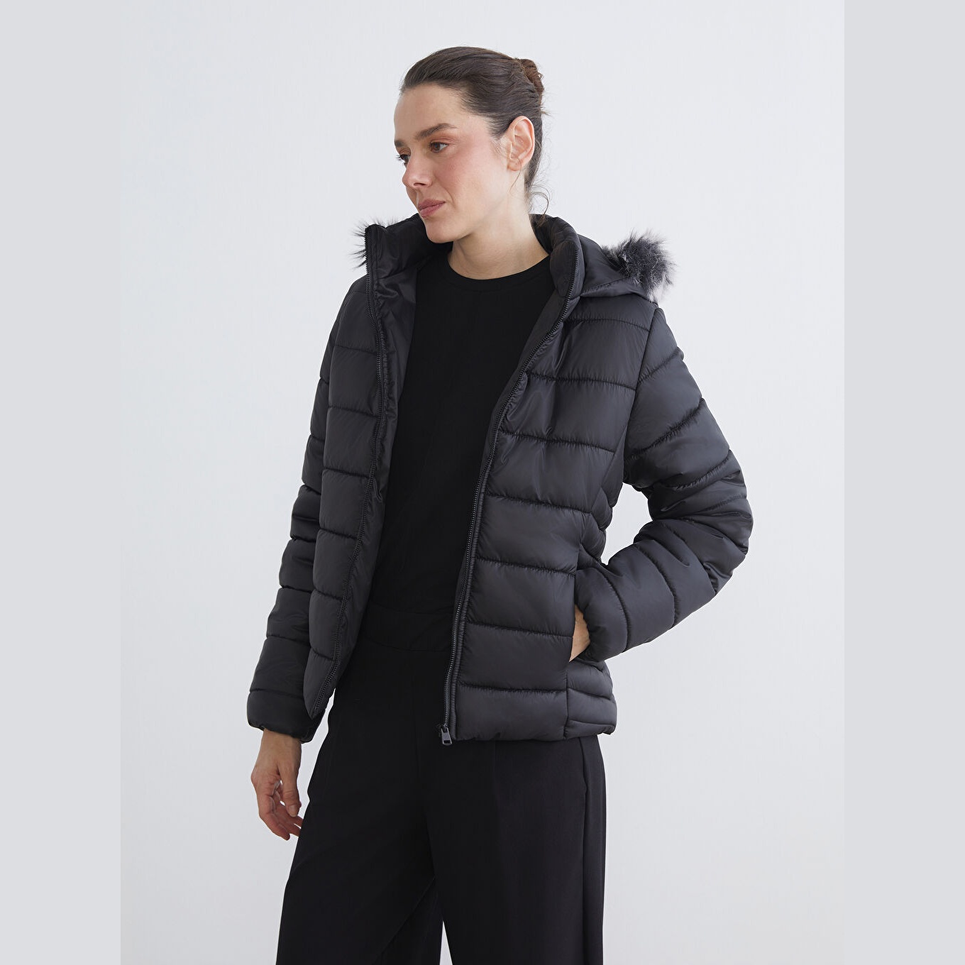 جاكيت نسائي شتوي من LCW ECO – أسود (قصة قياسية، تصميم قصير، خامة بوليستر سادة، قبعة ثابتة، سحاب أمامي، مبطّن بالكامل، مثالي للإطلالات الشتوية اليومية بأسلوب عملي ودافئ)