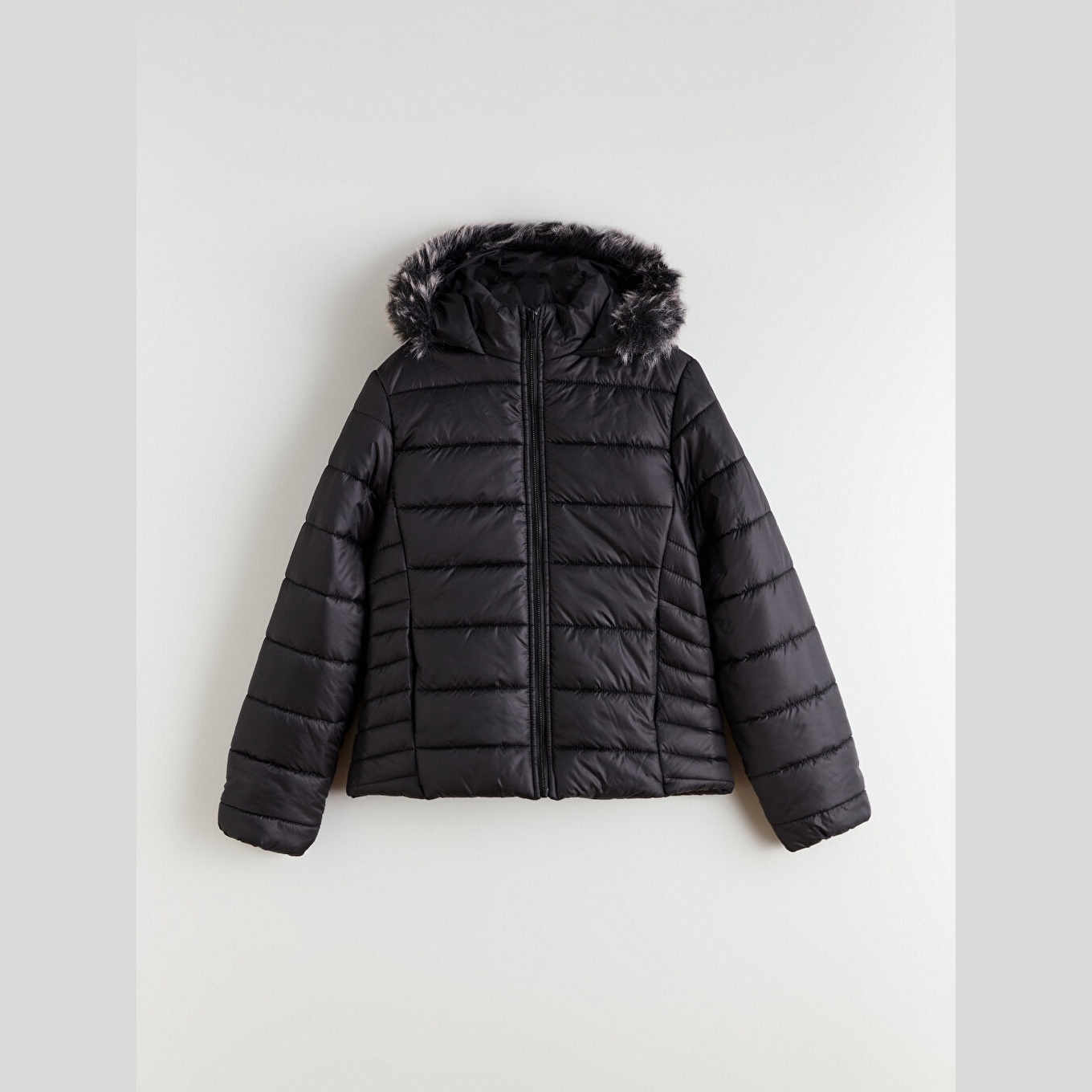 جاكيت شتوي بلون أسود من مجموعة LCW ECO، تصميم بقبعة ثابتة للحماية من الرياح، قصة قياسية تمنحك مظهرًا متوازنًا وراحة مثالية، خامة خارجية من %100 بوليستر، مبطّنة بالكامل بـبطانة سميكة محشوة من %100 بوليستر، تصميم سادة بدون نقوش، بطول قصير يُقاس من الكتف، مزود بسحاب أمامي عملي، مثالي للإطلالات اليومية في الطقس البارد بأسلوب عملي وأنيق.
