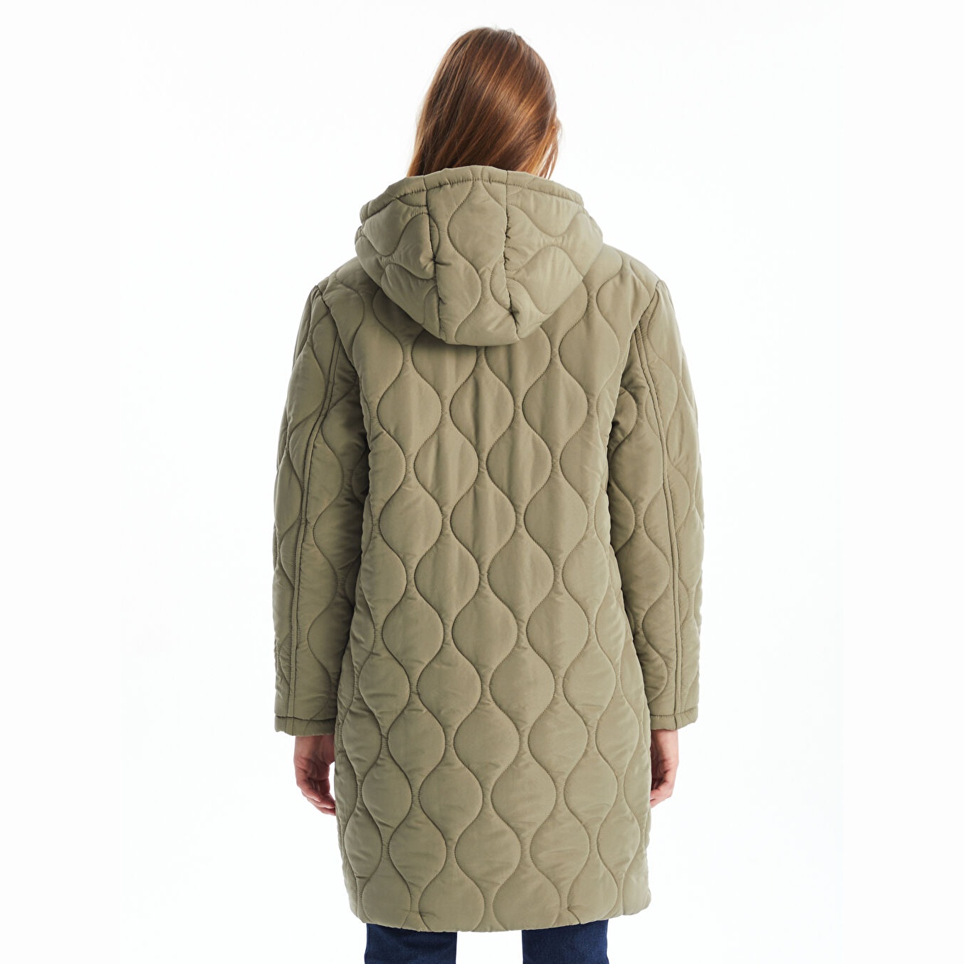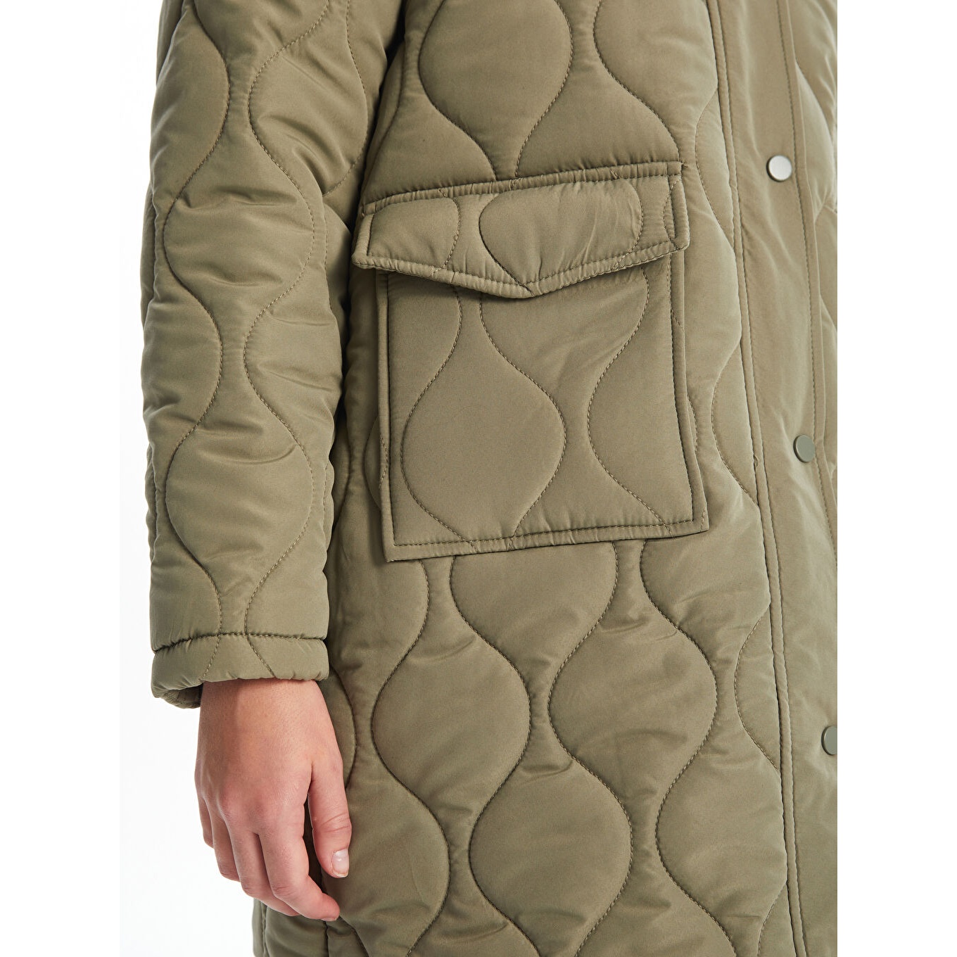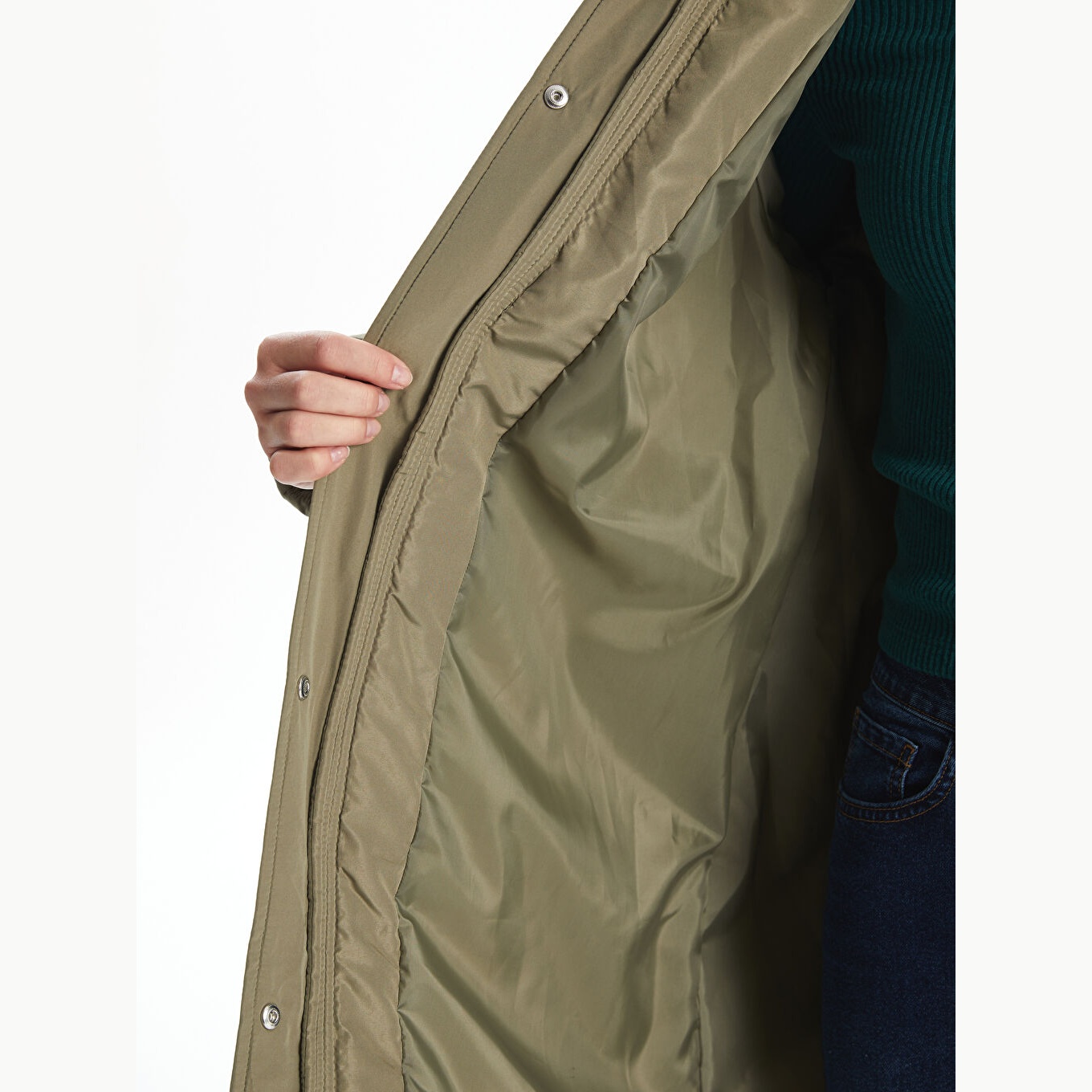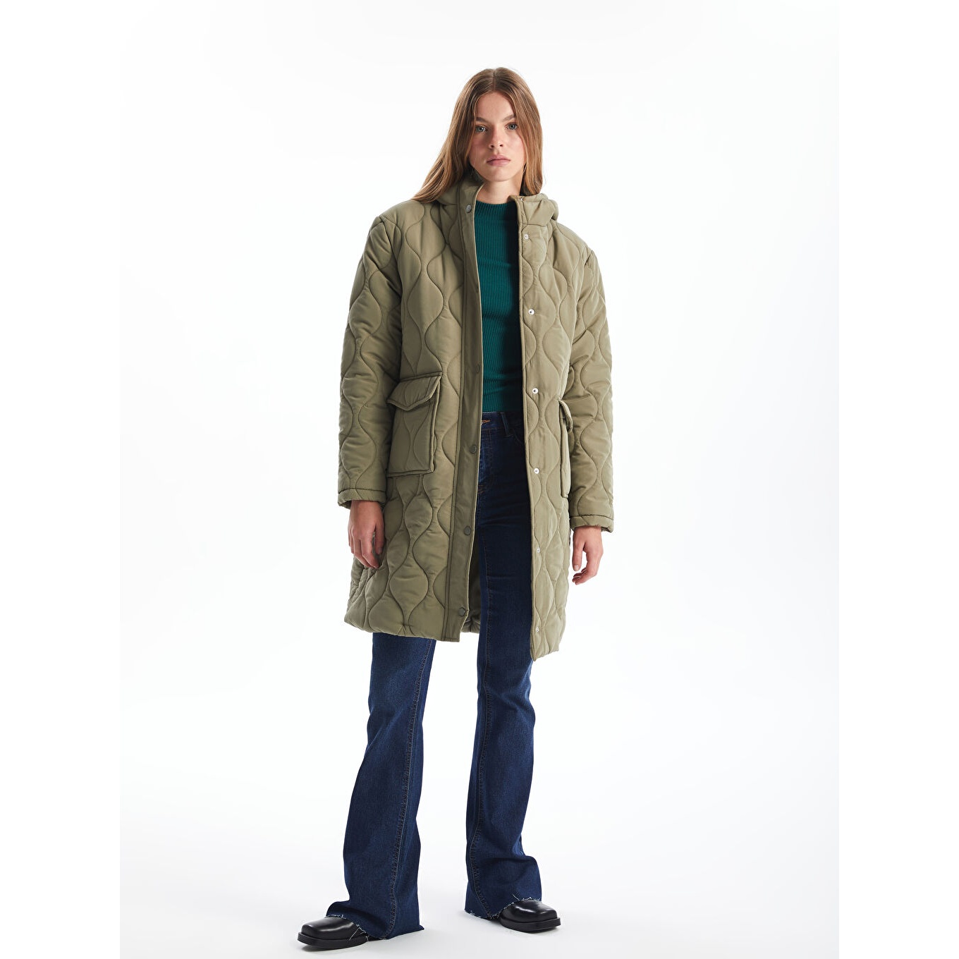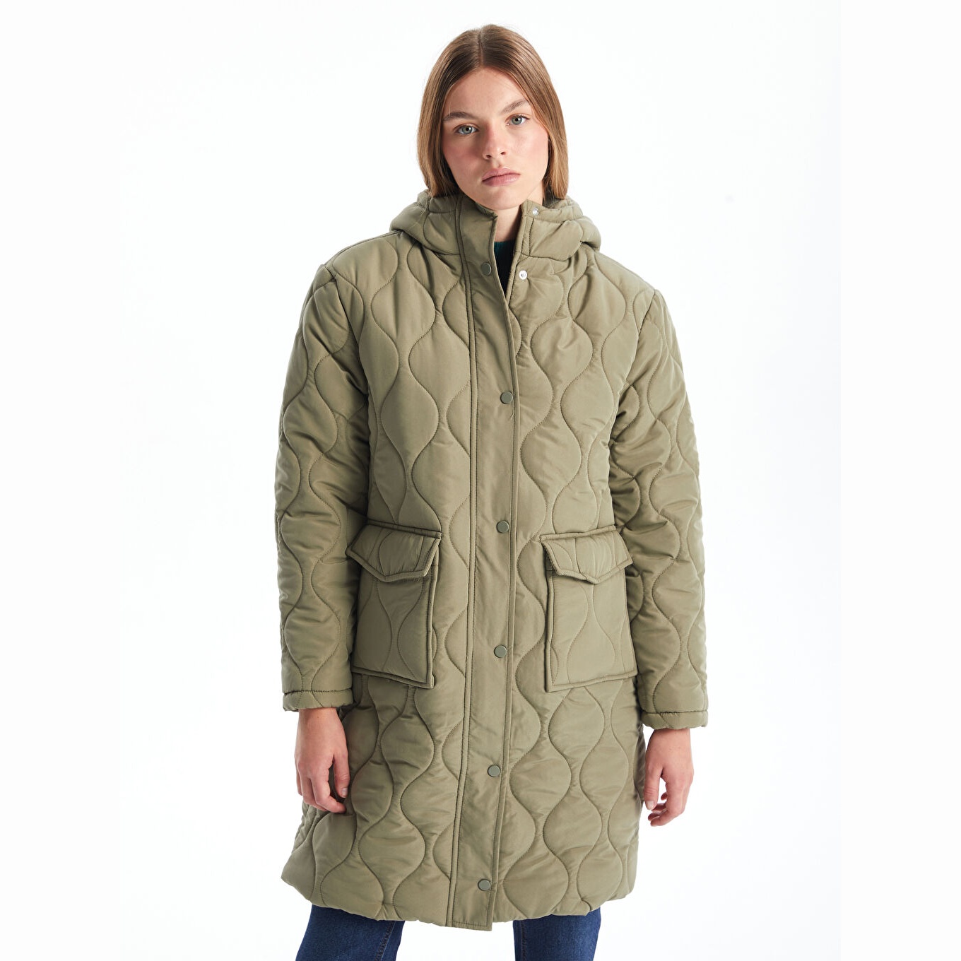 جاكيت نسائي شتوي من LCW Vision – زيتي (قصة واسعة، تصميم ميدي، خامة بوليستر مبطنة، قبعة ثابتة، سحاب أمامي، مثالي للإطلالات الشتوية اليومية بأسلوب عملي ودافئ)