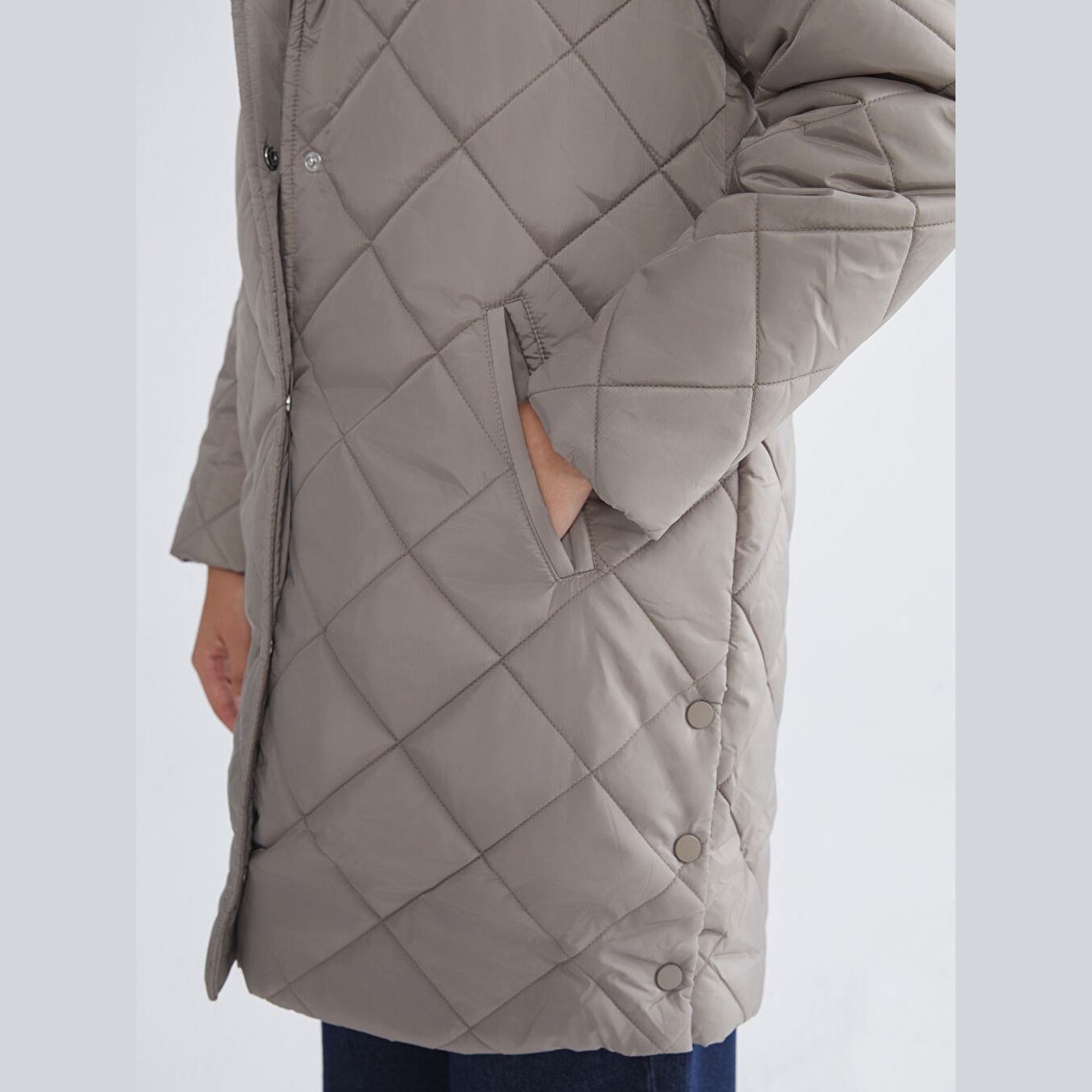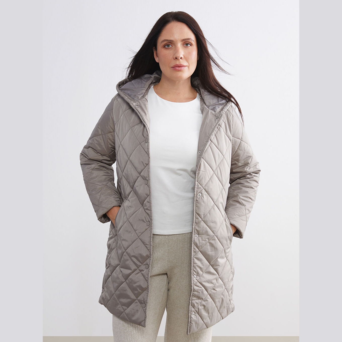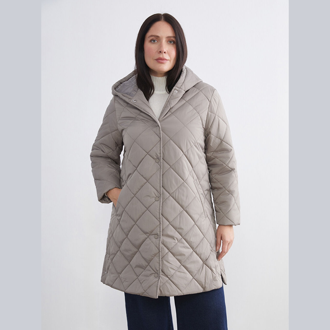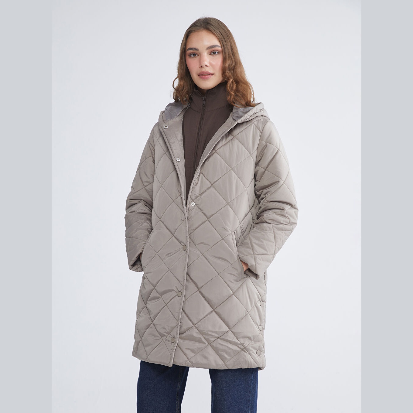 جاكيت نسائي شتوي من LCW Modest – بيج (قصة واسعة، تصميم ميدي، خامة بوليستر كابيتوني، قبعة ثابتة، سحاب أمامي، خفيف السماكة، مثالي للإطلالات الشتوية المحتشمة بأسلوب عملي وأنيق)