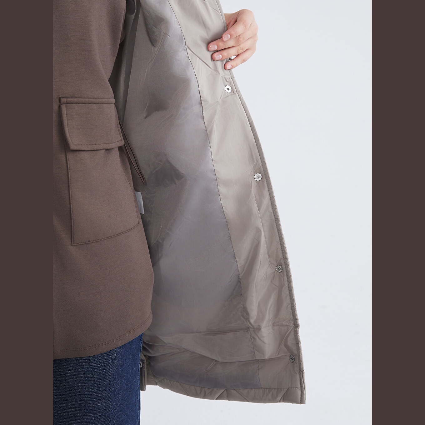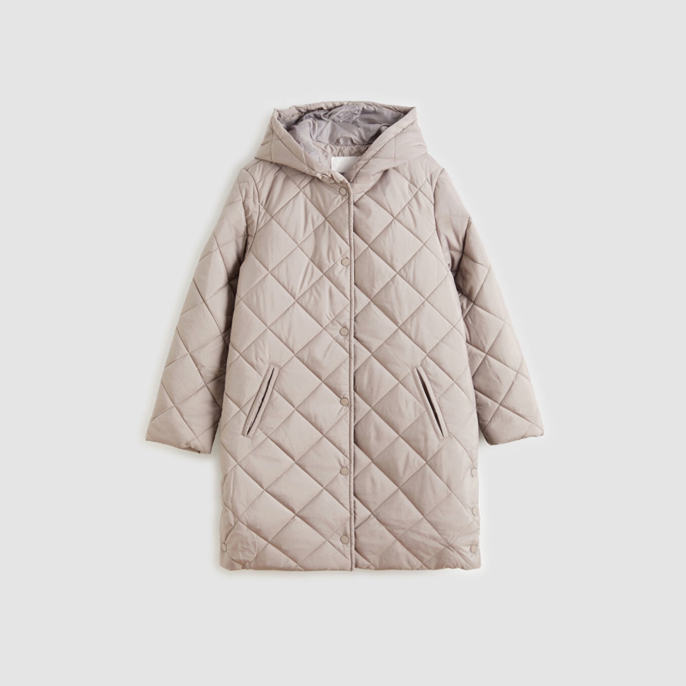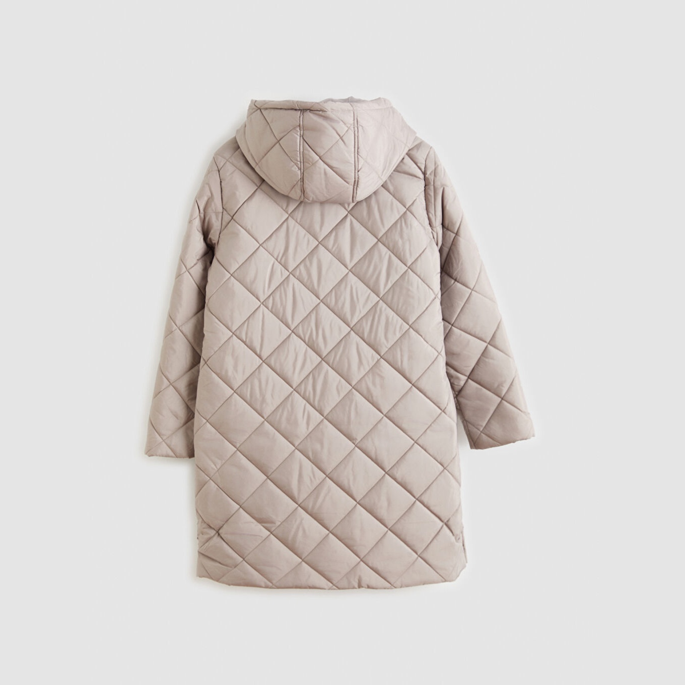 جاكيت شتوي بلون بيج من مجموعة LCW Modest، تصميم بقبعة ثابتة للحماية من الرياح، قصة واسعة تمنحك راحة وأناقة، خامة خارجية من %100 بوليستر بنمط كابيتوني مبطن، مبطّنة بالكامل بـ%100 بوليستر، مع حشوة داخلية من %100 بوليستر، بطول ميدي يُقاس من الكتف، مزود بسحاب أمامي عملي، مثالي للإطلالات اليومية في الطقس البارد بأسلوب محتشم وخفيف.