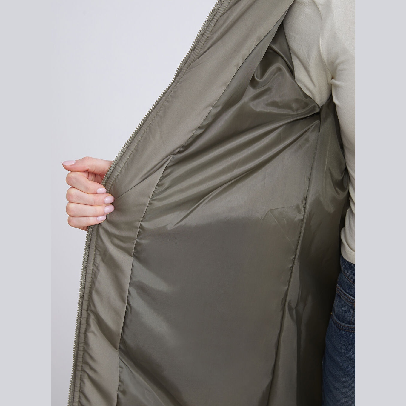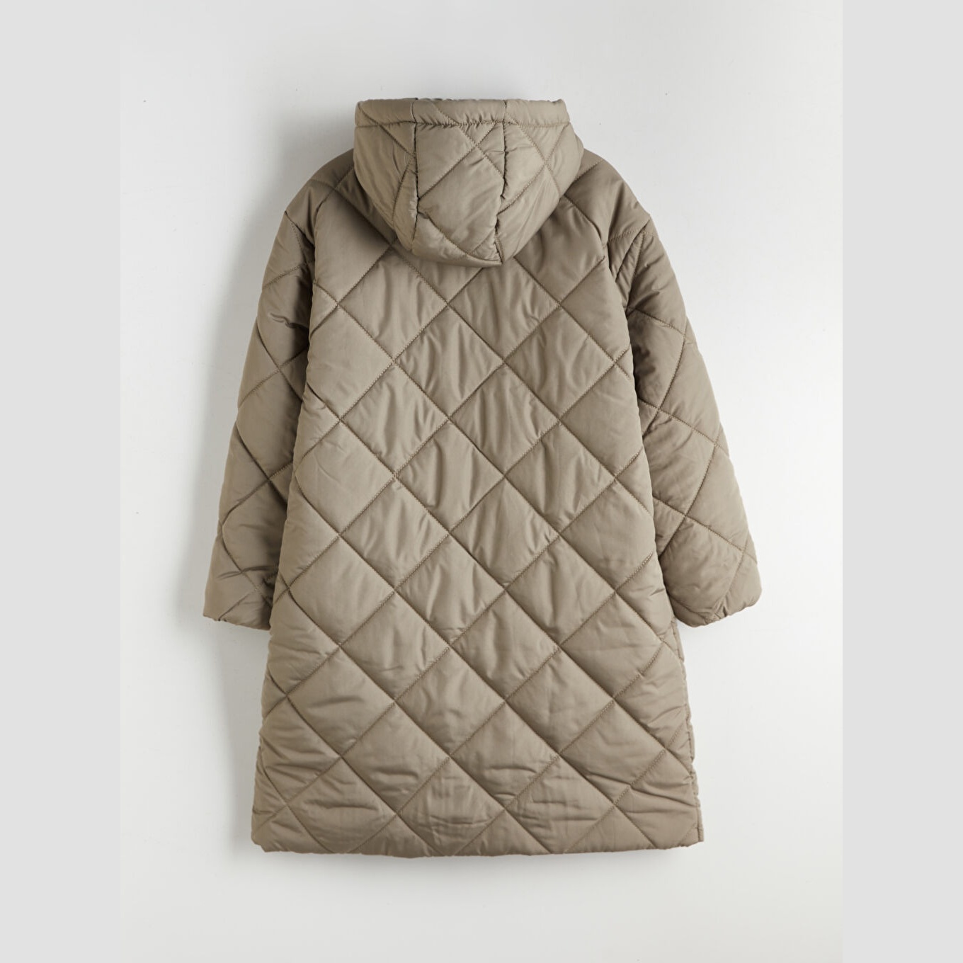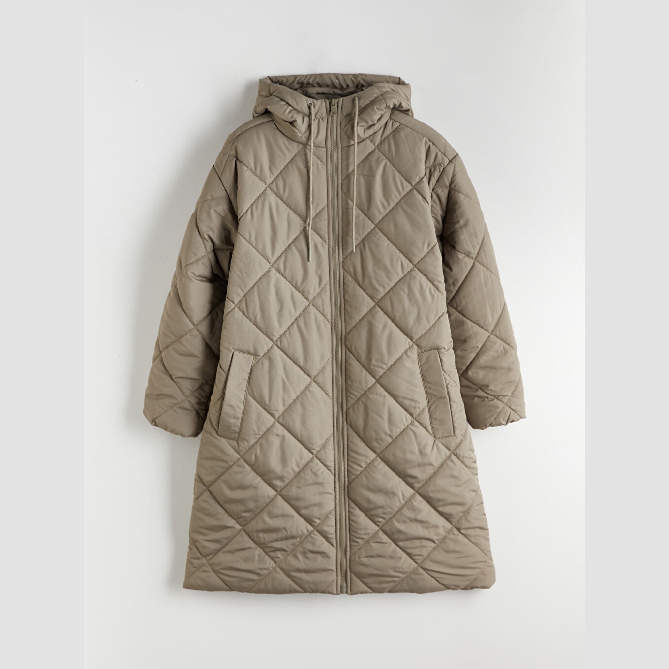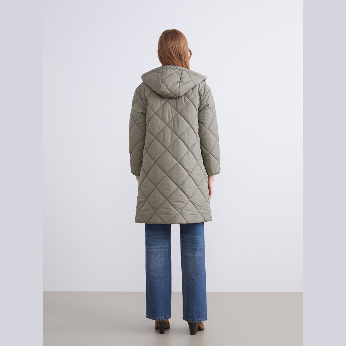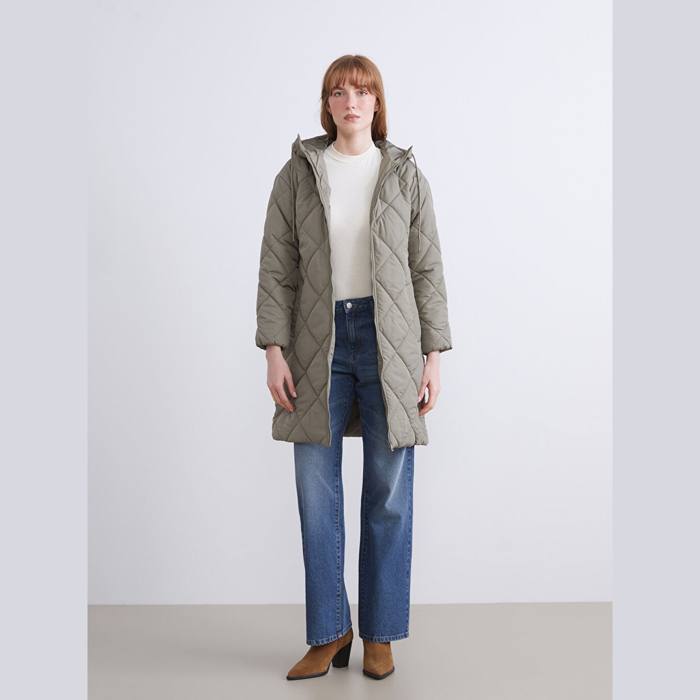 جاكيت نسائي شتوي كابيتوني من LCWAIKIKI Classic – زيتي (قصة قياسية، تصميم طويل، خامة بوليستر، قبعة ثابتة، تطريز كابيتوني، سحاب أمامي، مثالي للإطلالات الشتوية المحتشمة ضمن مجموعة المقاسات الكبيرة)