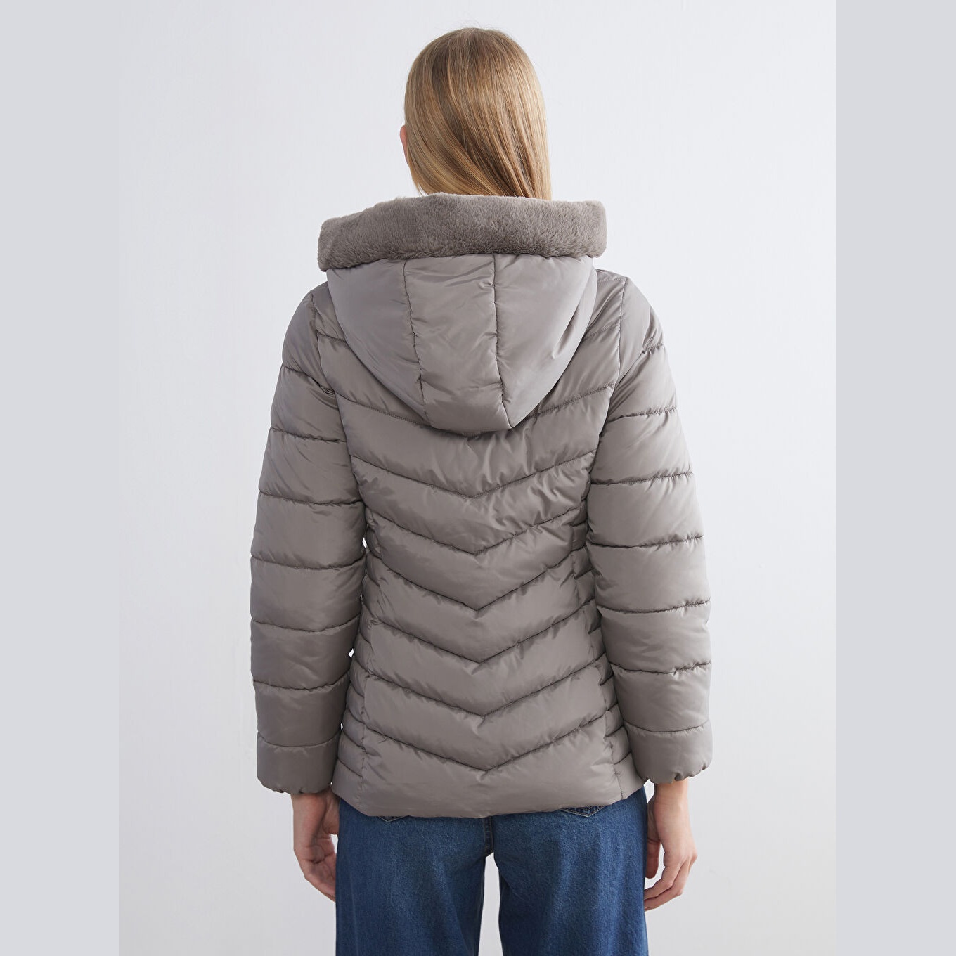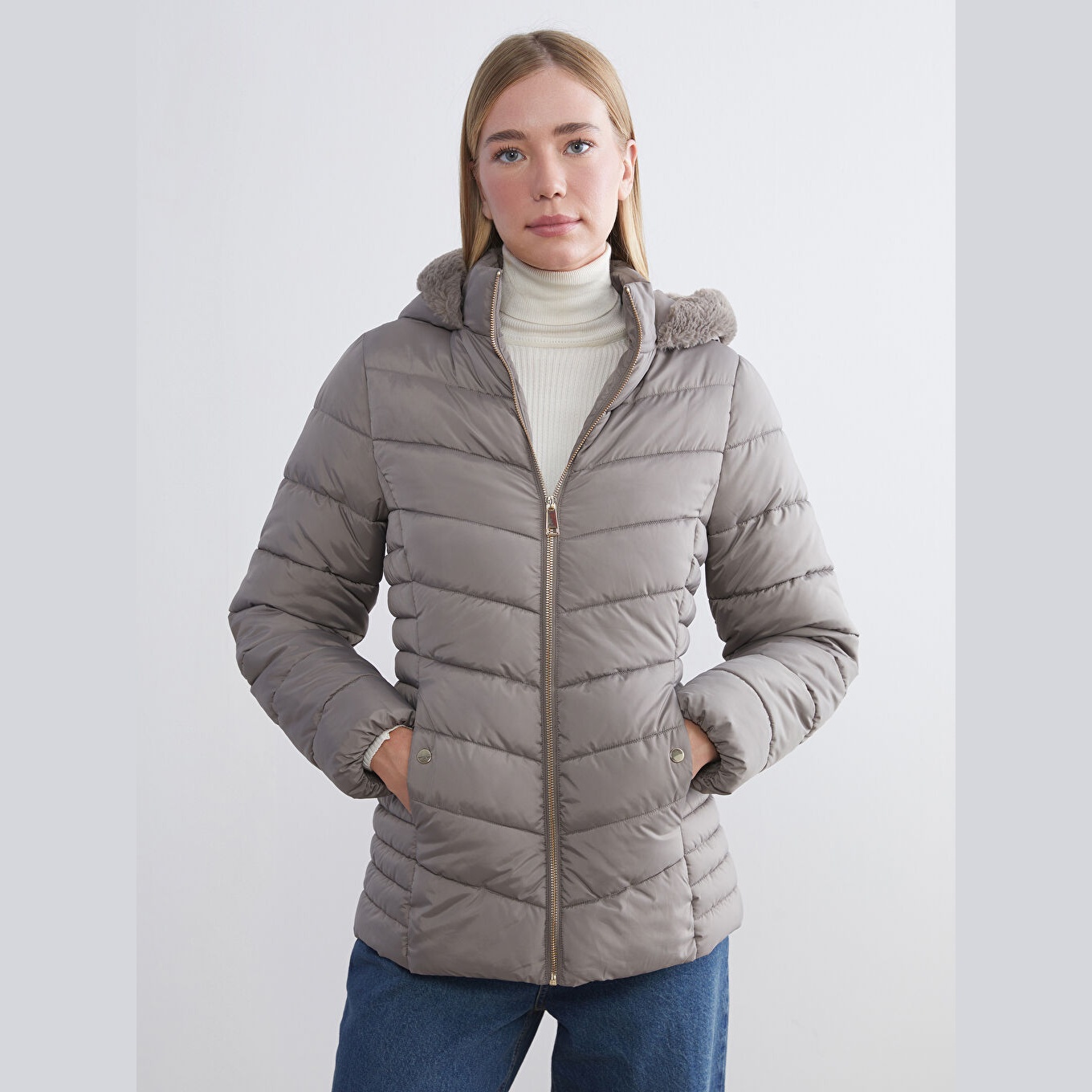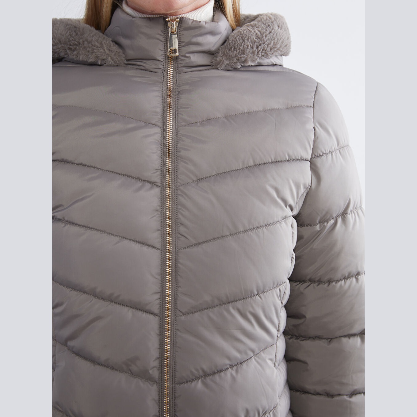 جاكيت نسائي شتوي من LCWAIKIKI Classic – بني (قصة قياسية، تصميم ميدي، خامة بوليستر، قبعة ثابتة مبطنة بالفرو، سماكة عالية، مثالي للإطلالات الشتوية المحتشمة ضمن مجموعة المقاسات الكبيرة)