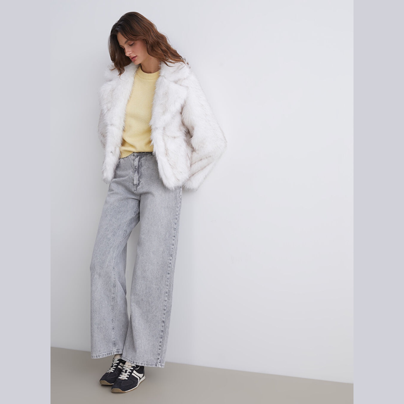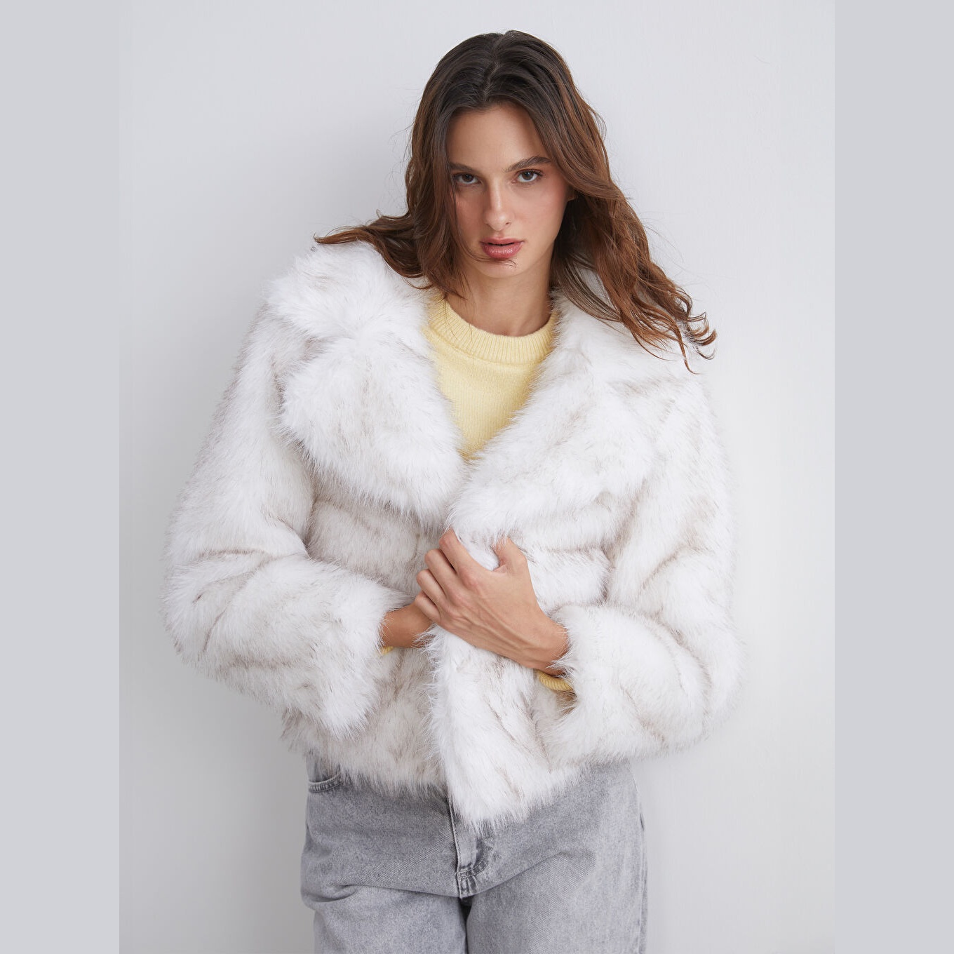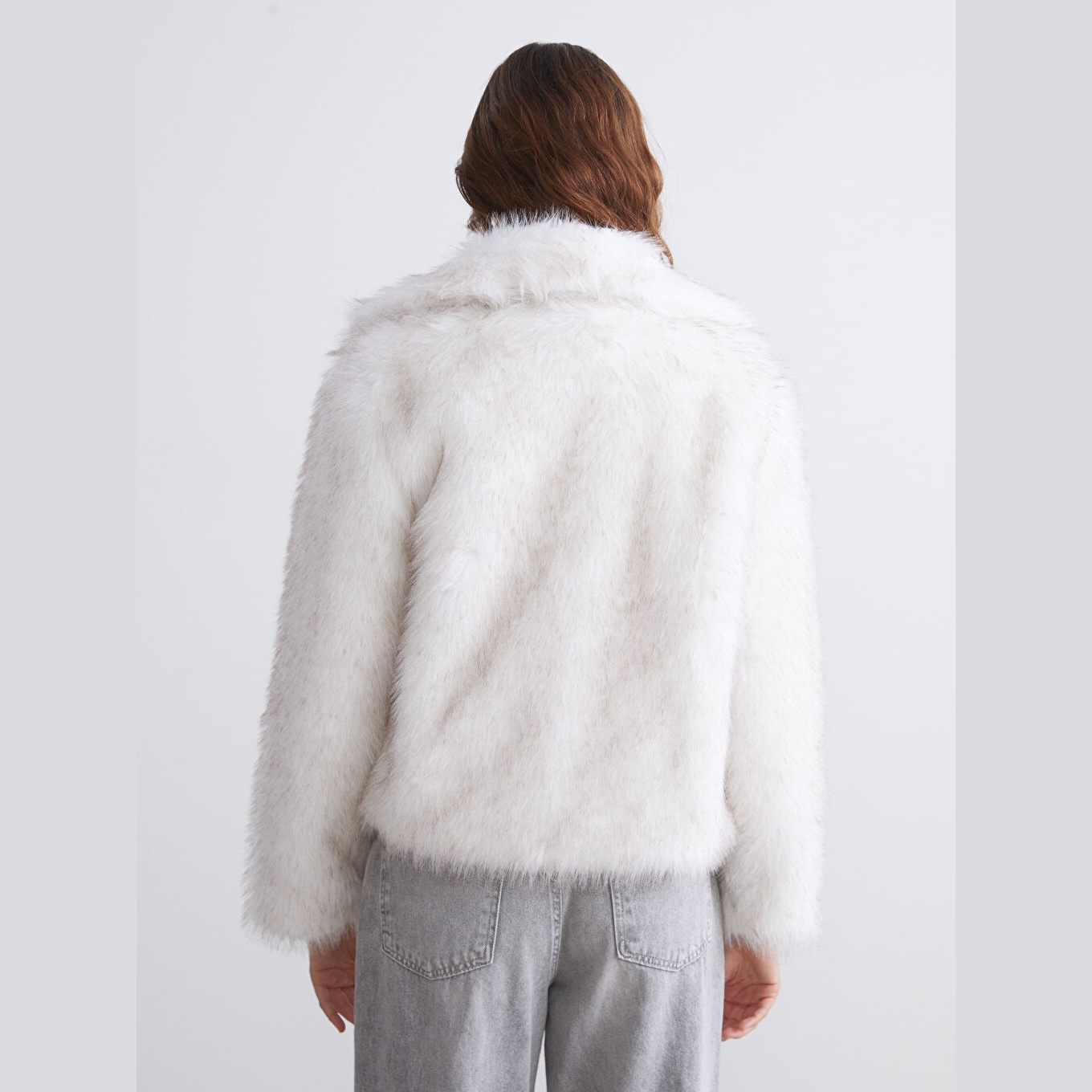 جاكيت نسائي شتوي من LCW Vision – إكرو (خامة فرو صناعي، ياقة جاكيت، تصميم قصير، قصة قياسية، مثالي للإطلالات الشتوية الفاخرة)
