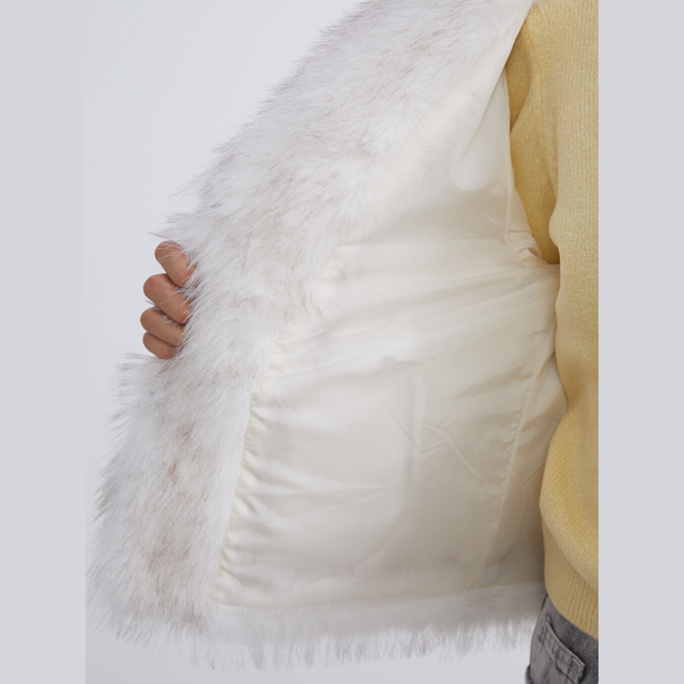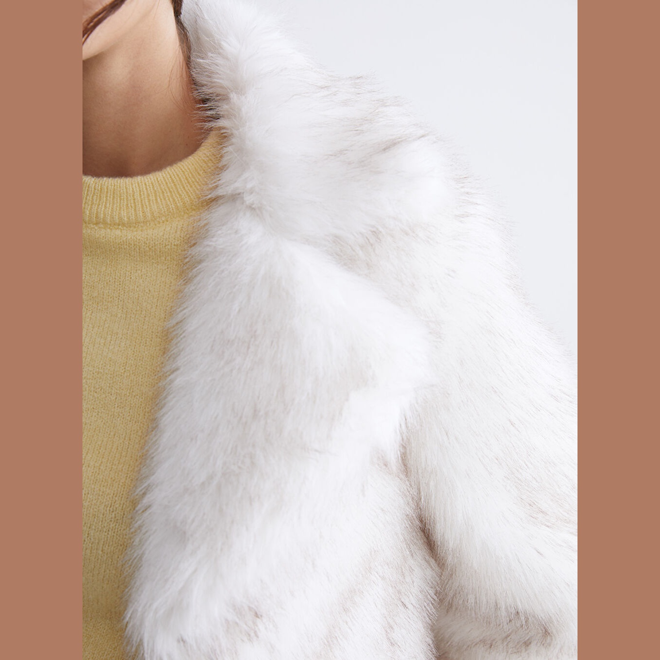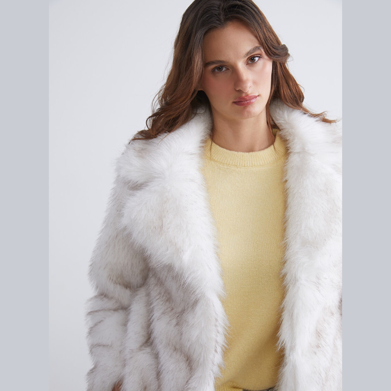 جاكيت نسائي شتوي من LCW Vision – إكرو (خامة فرو صناعي، ياقة جاكيت، تصميم قصير، قصة قياسية، مثالي للإطلالات الشتوية الفاخرة)