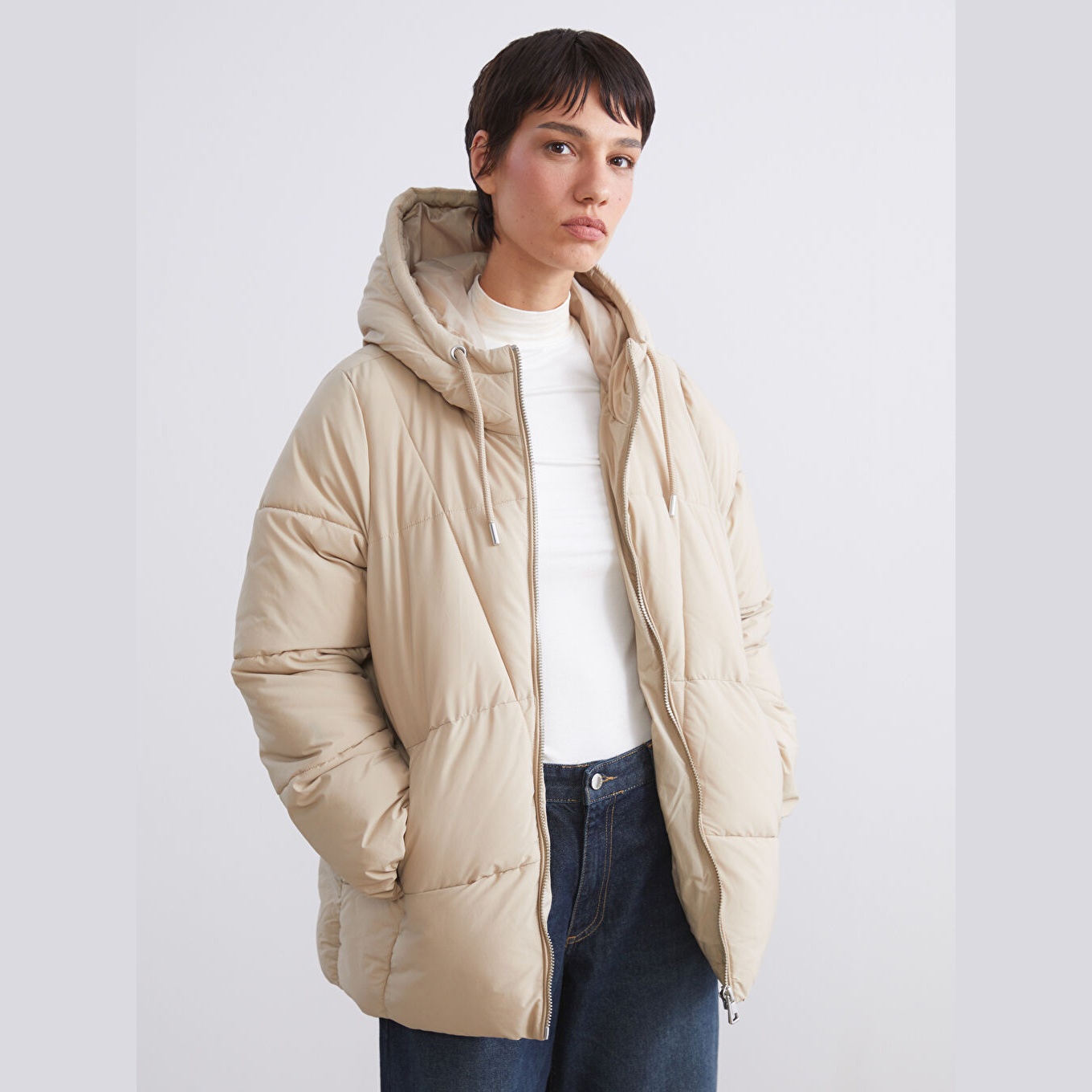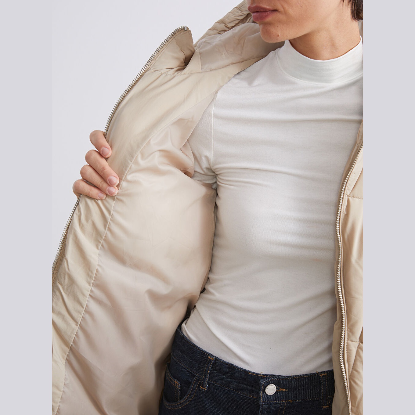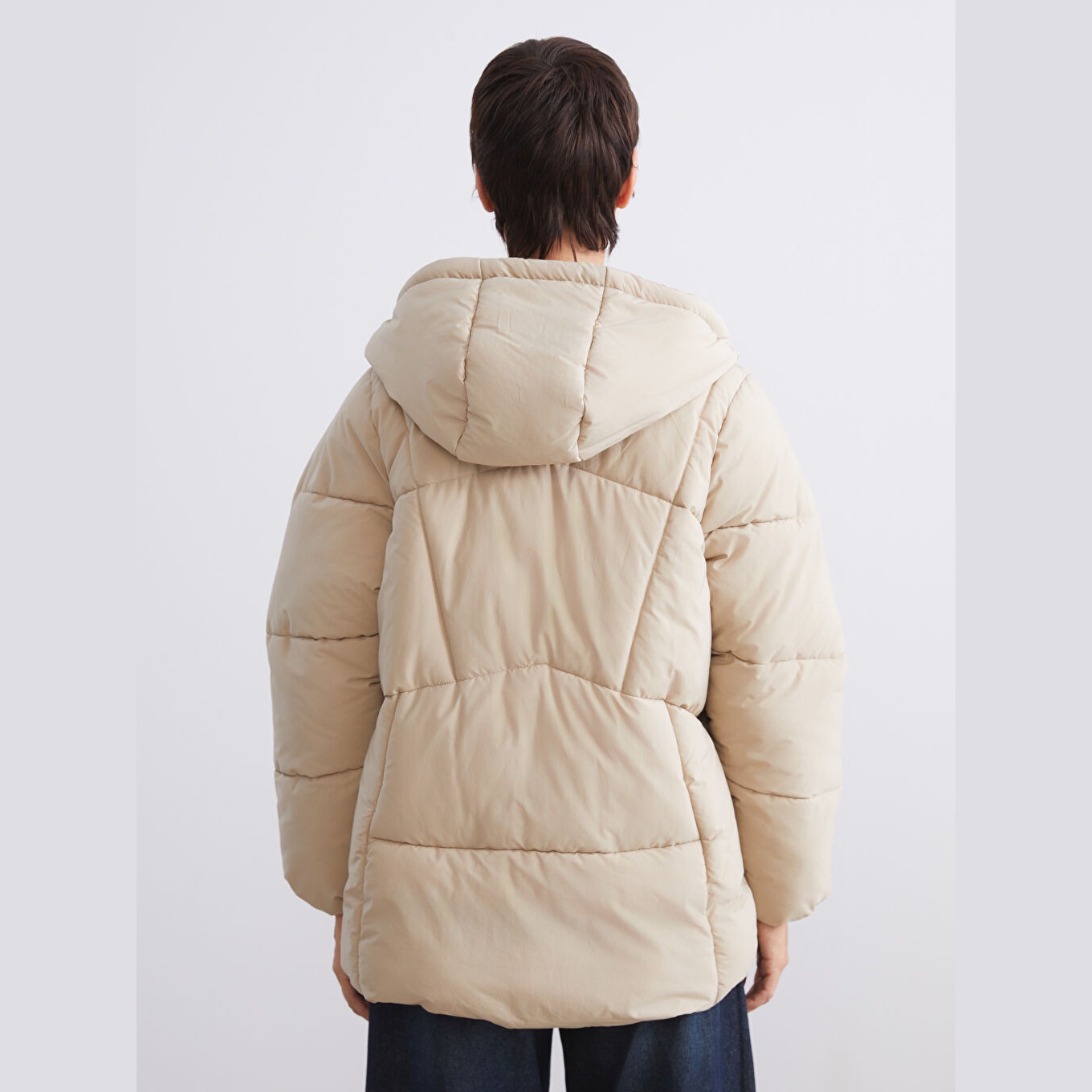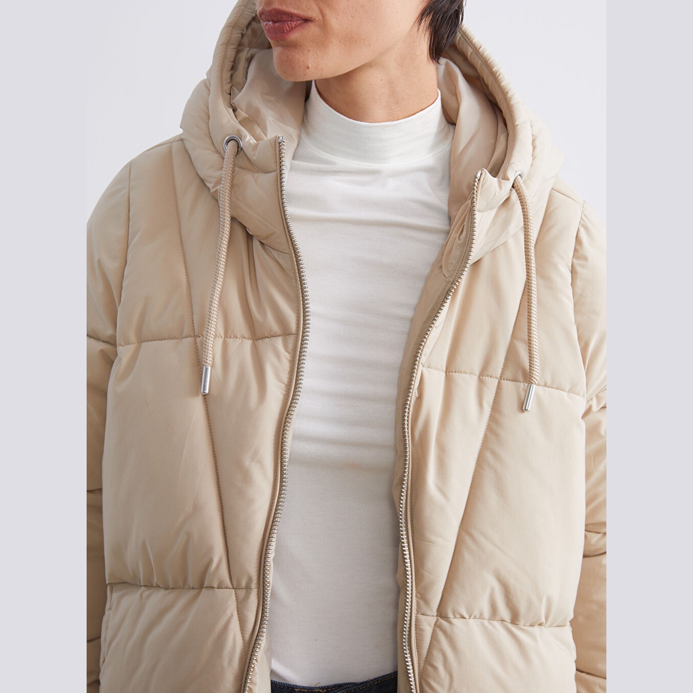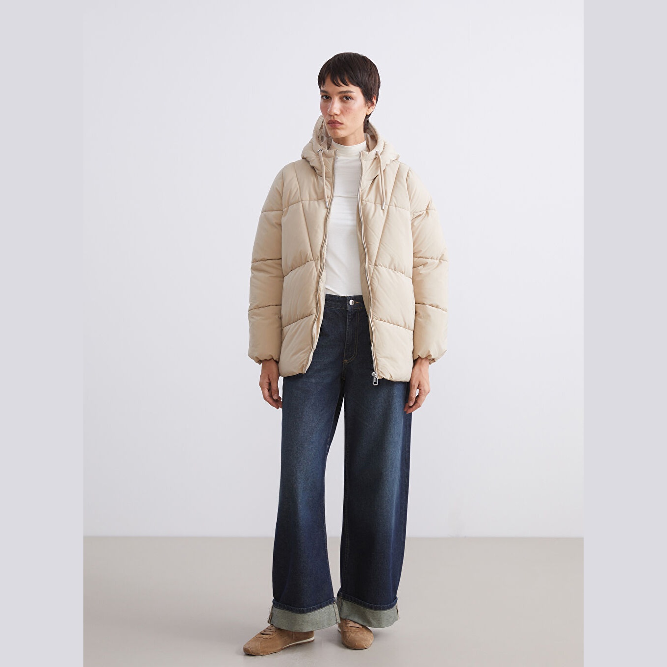 جاكيت نسائي شتوي من LCW Vision – بيج (تصميم مبطّن، قصة واسعة، خامة تقنية، بغطاء رأس ثابت، مثالي للإطلالات الشتوية العملية والعصرية)
