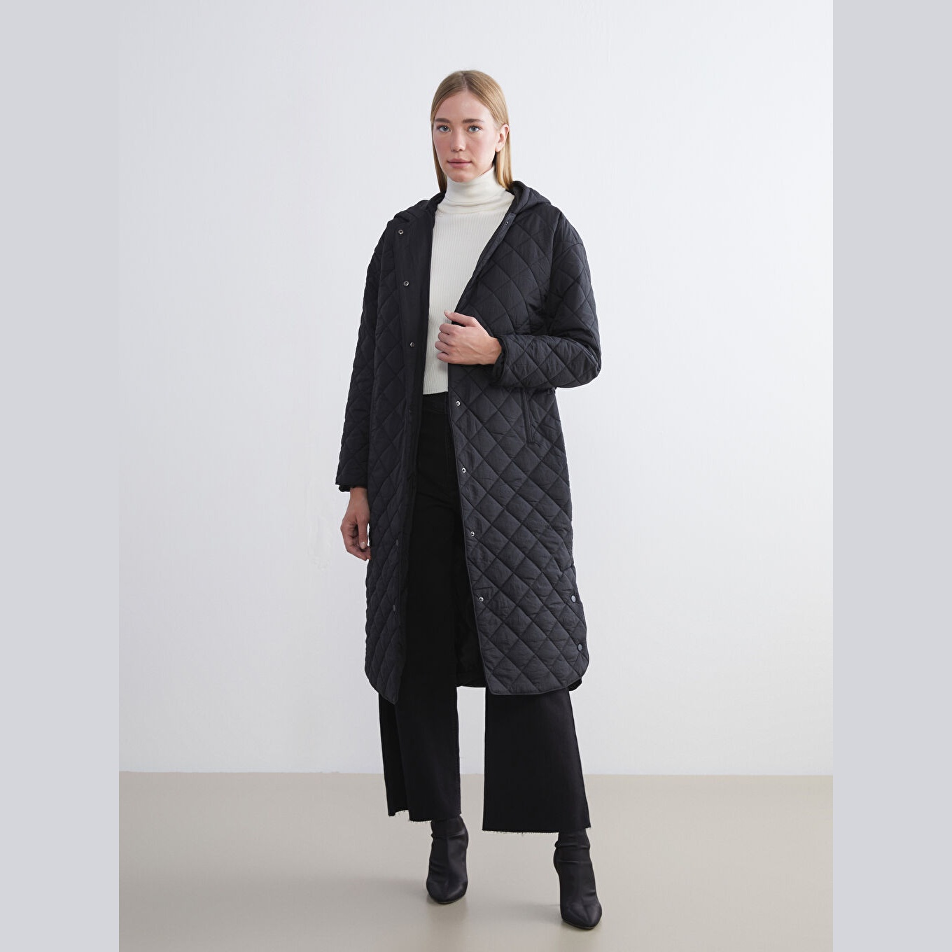 جاكيت شتوي بلون أسود من مجموعة LCWAIKIKI Classic – Büyük Beden، تصميم مبطّن بنمط كابيتوني (Kapitone) يمنحك مظهرًا أنيقًا ودفئًا مثاليًا، خامة خارجية من كرينكل (Krinkle) تضيف ملمسًا عصريًا، قصة واسعة (Oversize) توفر راحة وانسيابية، غطاء رأس ثابت (Kapüşonlu) للحماية من الرياح، بطول ميدي يُقاس من الكتف، مثالي للإطلالات اليومية أو الخارجية في الشتاء بأسلوب عملي وراقي.