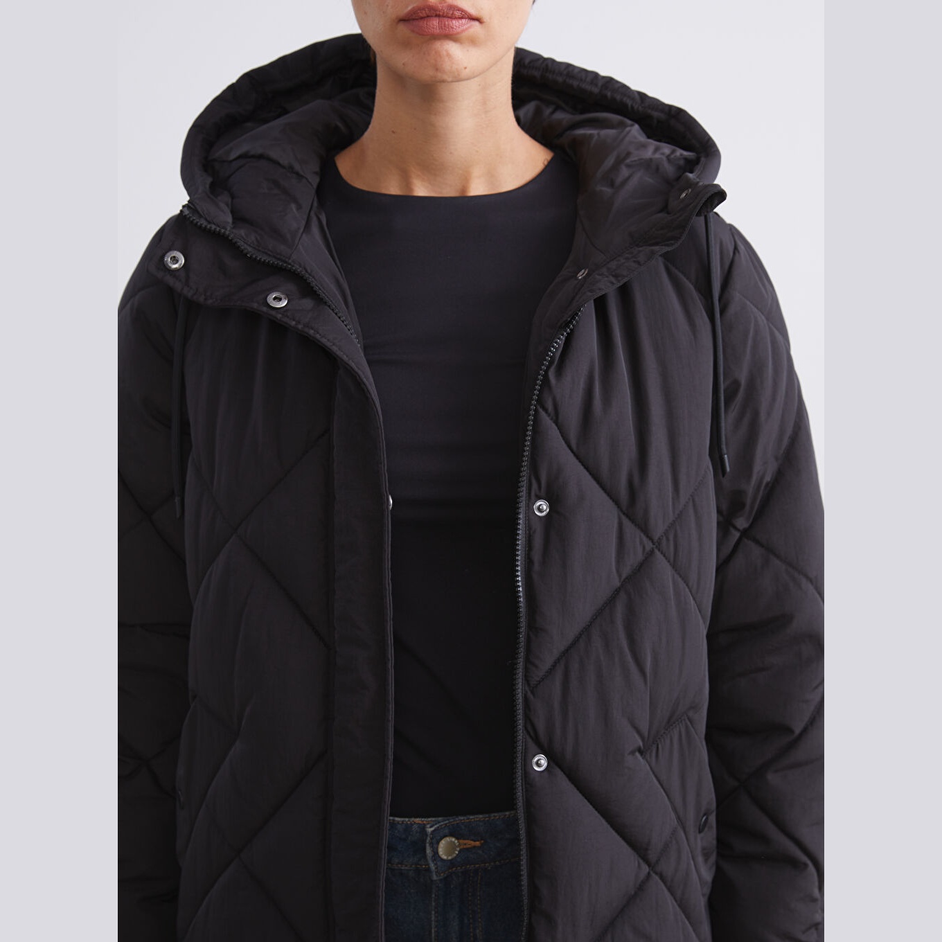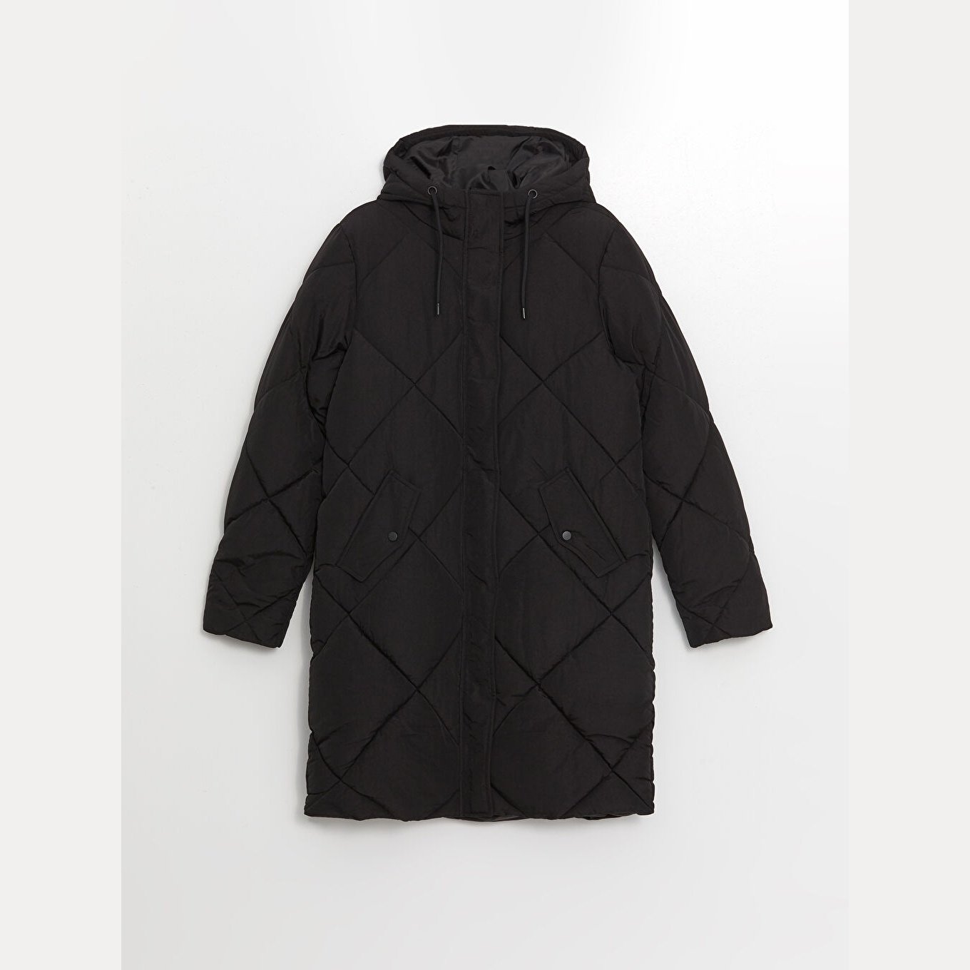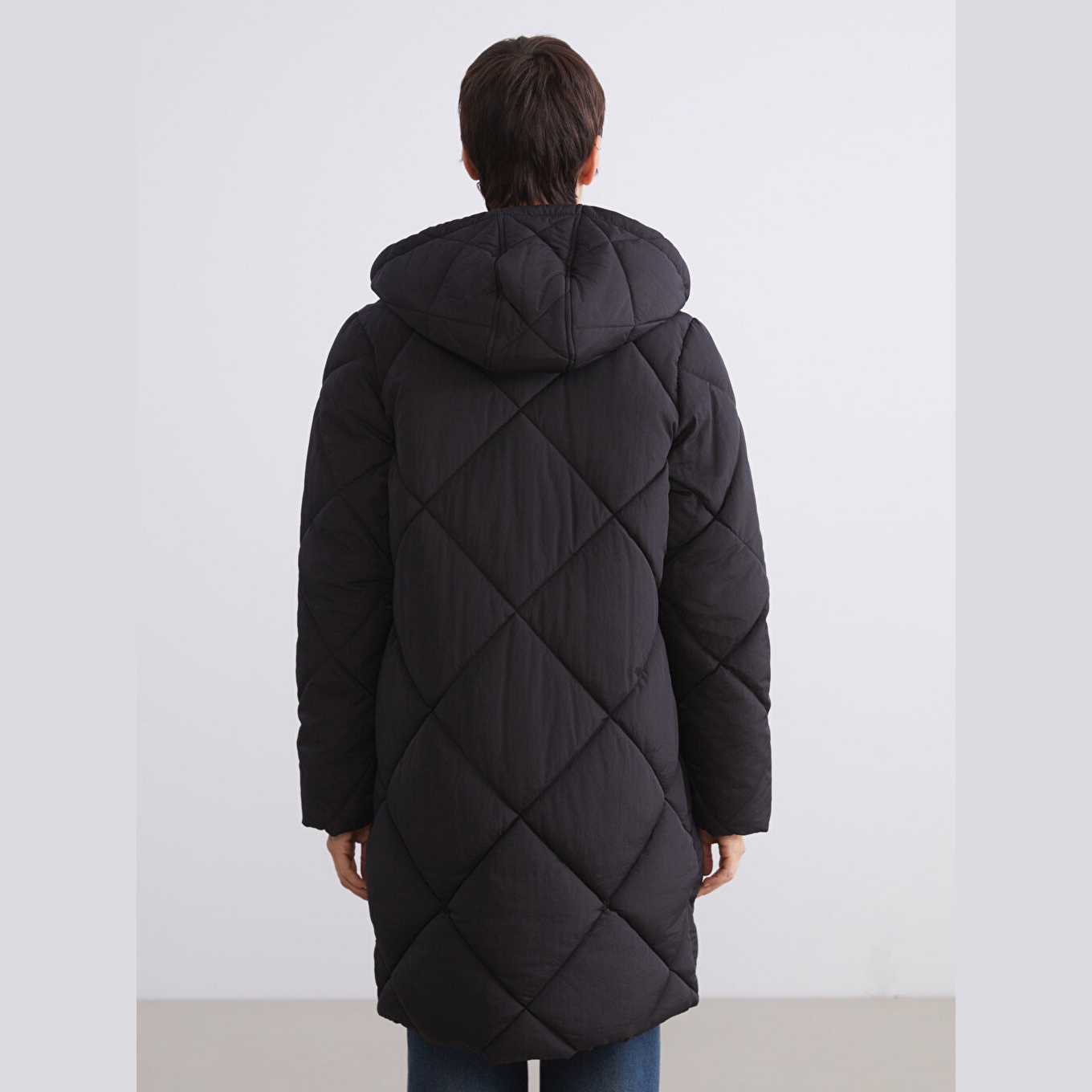 جاكيت شتوي بلون أسود من مجموعة LCW Vision، تصميم مبطّن بنمط كابيتوني (Kapitone) يمنحك مظهرًا أنيقًا ودفئًا مثاليًا، قصة قياسية (Standart & Regular) توفر راحة وانسيابية، غطاء رأس ثابت (Sabit Kapüşonlu) للحماية من الرياح، خامة خارجية من %100 بولياميد، مع بطانة داخلية وحشوة دافئة من %100 بوليستر، بطول ميدي يُقاس من الكتف، مثالي للإطلالات اليومية أو الخارجية في الشتاء بأسلوب عملي وراقي.