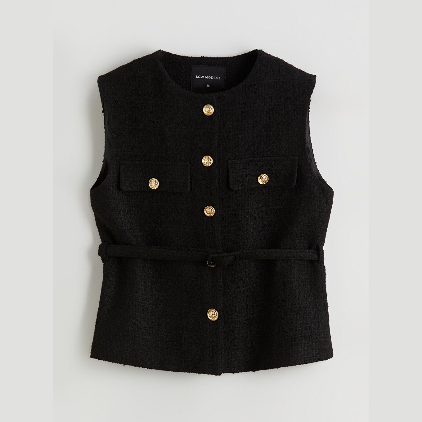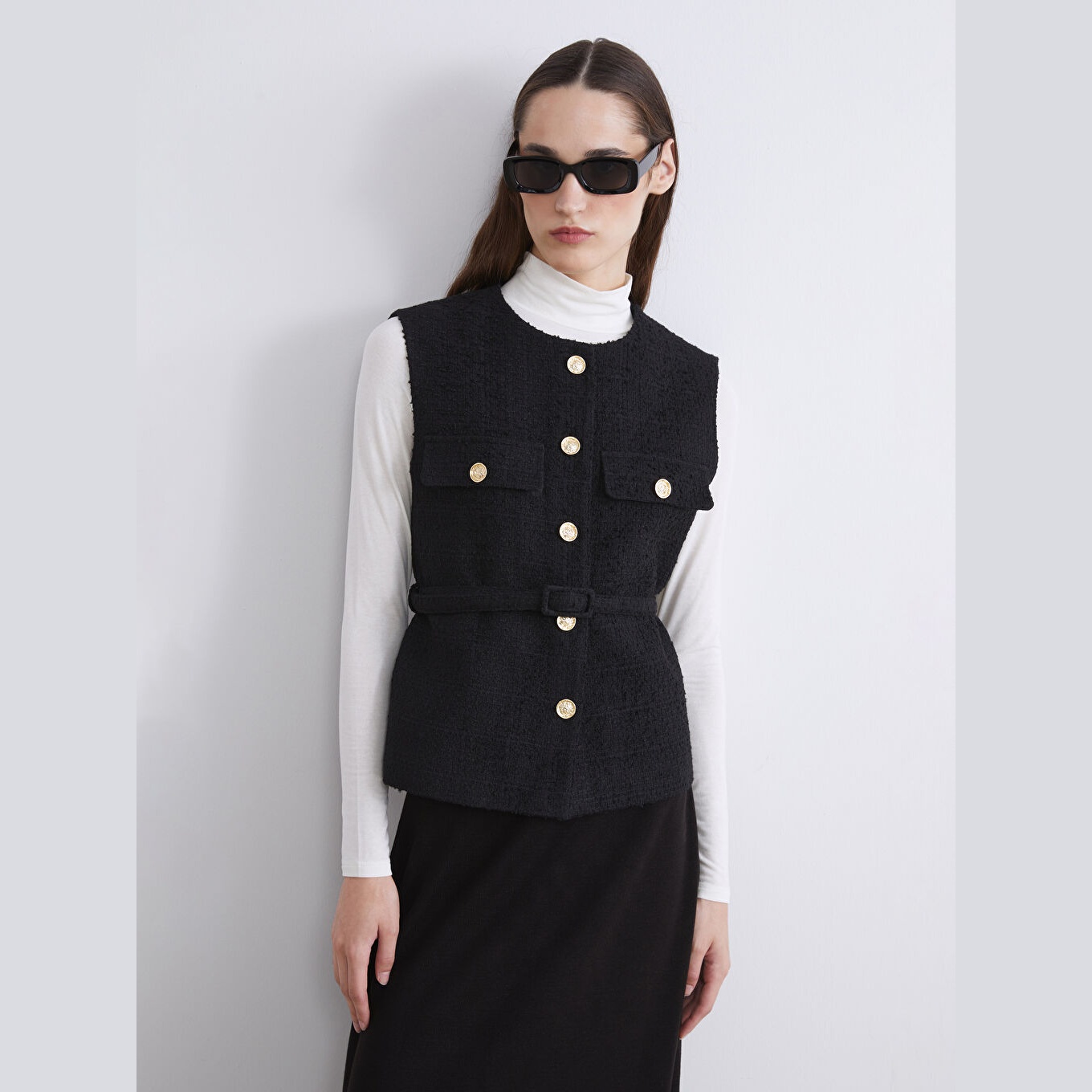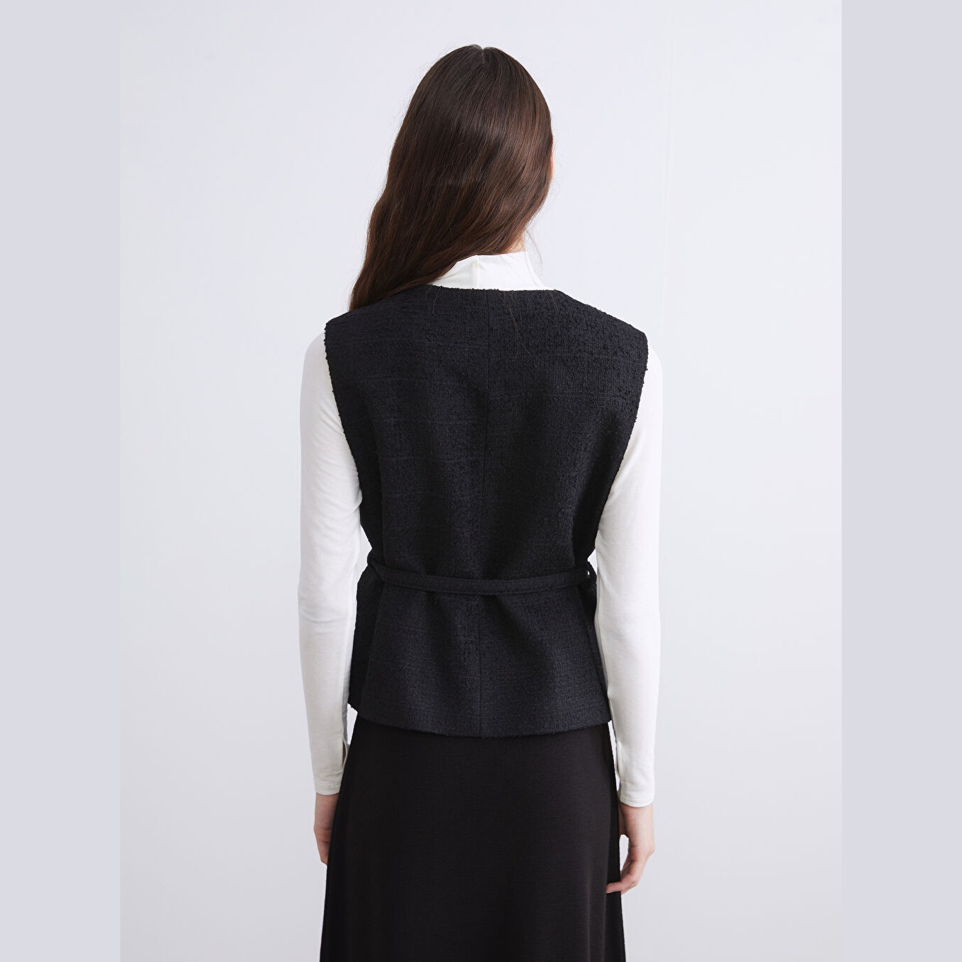 فيست شتوي بلون أسود من مجموعة LC Waikiki الكلاسيكية، يتميز بياقة دائرية أنيقة تضيف لمسة رسمية ناعمة، وقصة قياسية تمنحك مظهرًا متوازنًا ومحتشمًا. مصنوع من خامة تويد متينة بتركيبة %50 قطن، %25 بوليستر، %23 أكريليك، %2 فيسكون، مع بطانة داخلية من %100 بوليستر، بدون أكمام، بسماكة متوسطة، ويُغلق بأزرار أمامية، مما يجعله مثاليًا للتنسيق مع القمصان أو البلوزات في الإطلالات اليومية أو العملية.