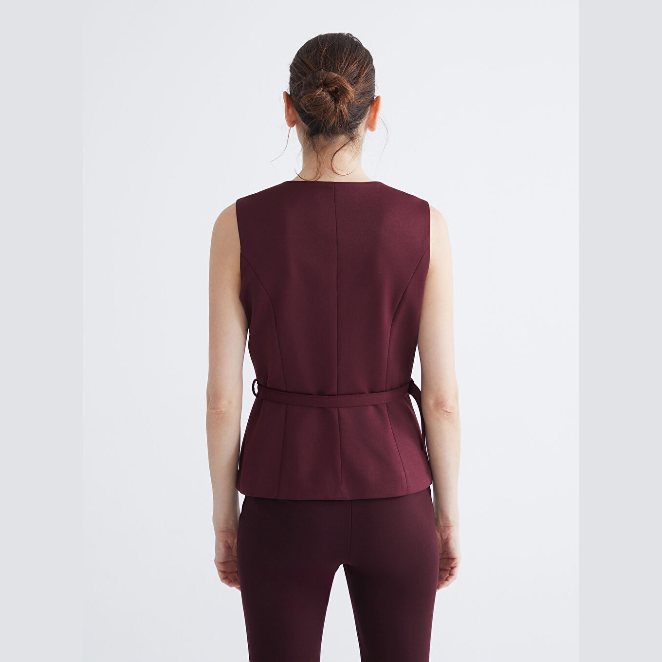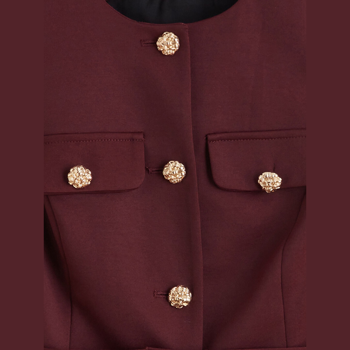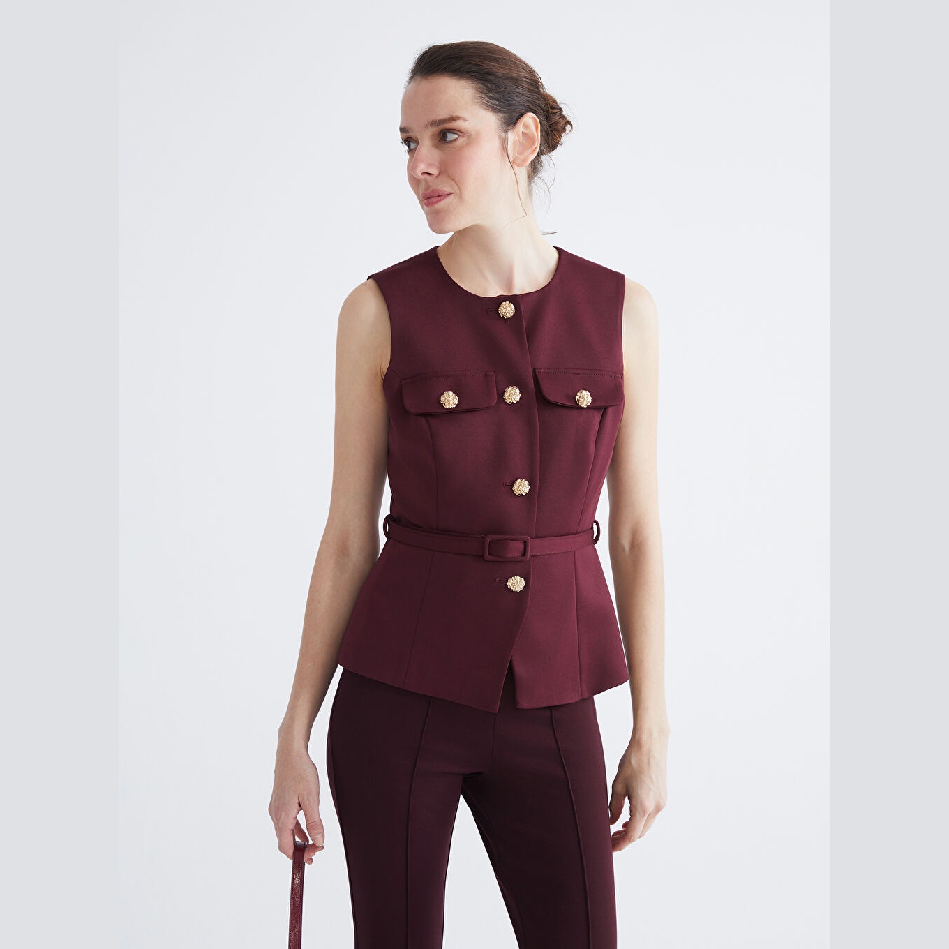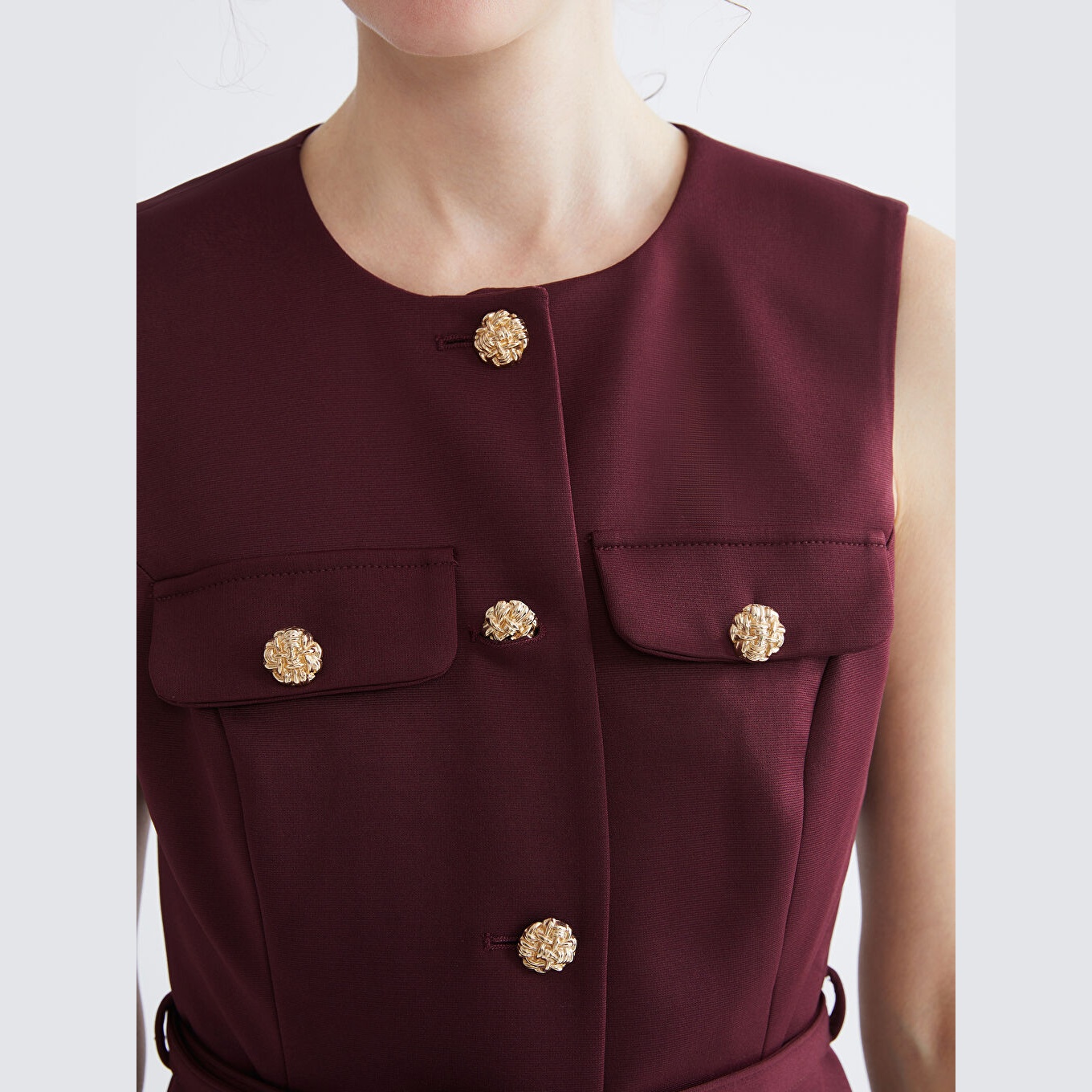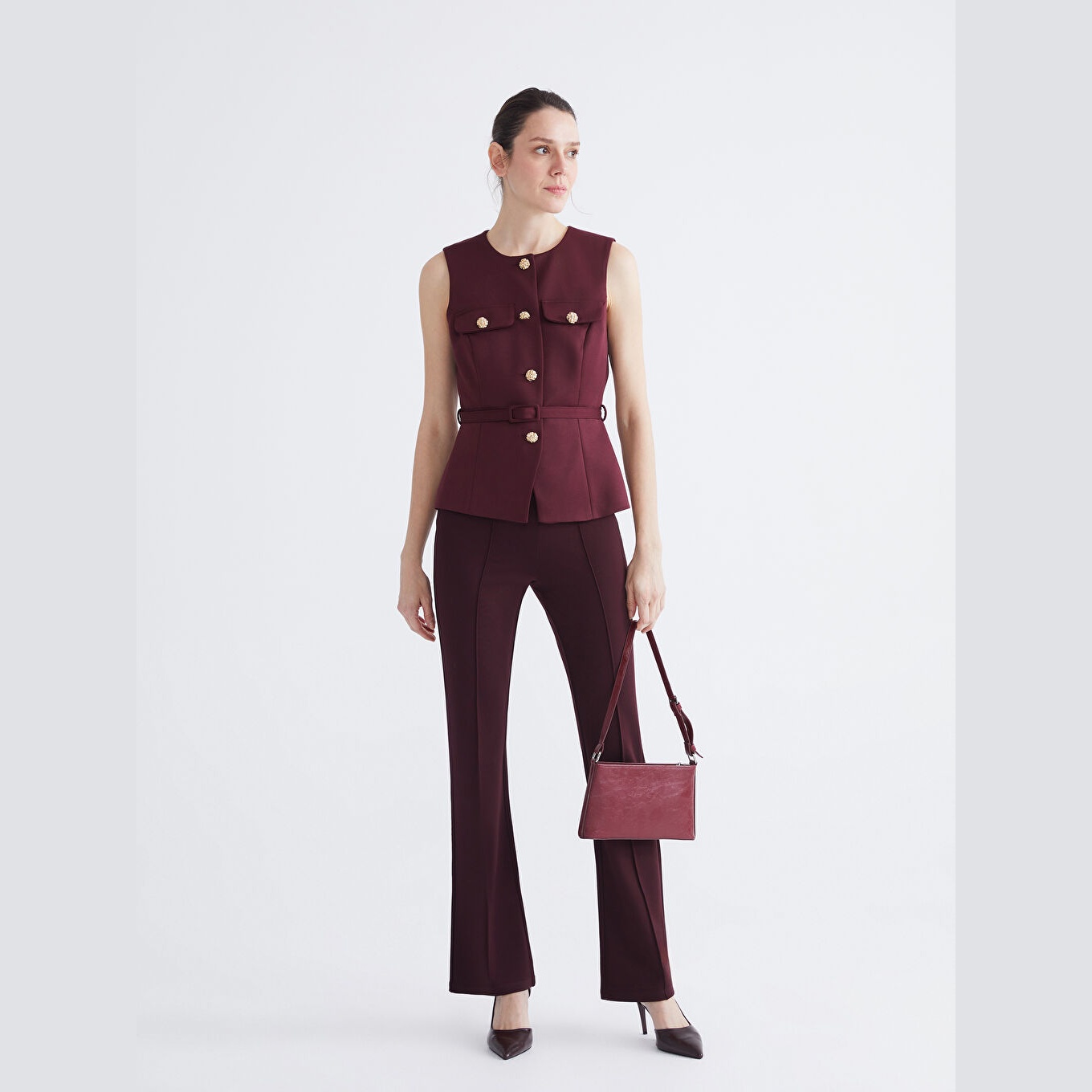 فيست نسائي شتوي – بوردو (ياقة دائرية، خامة بونتي، تصميم بكِمر، قصة قياسية، بطول متوسط)