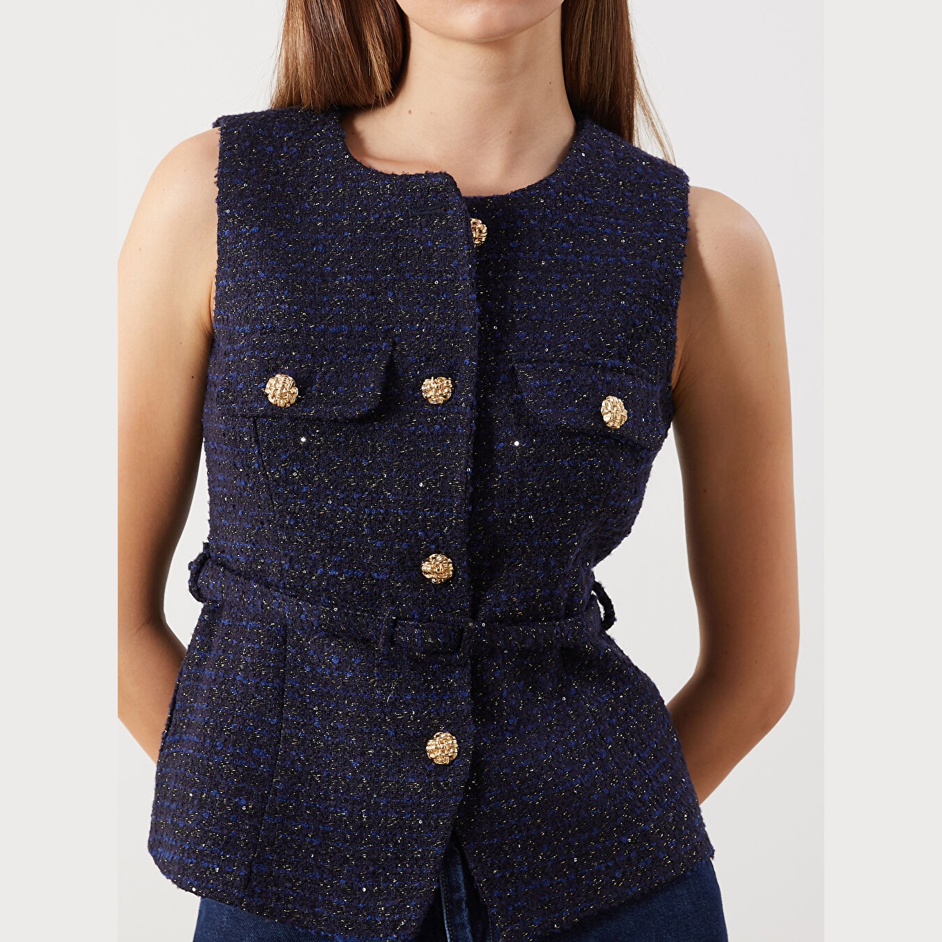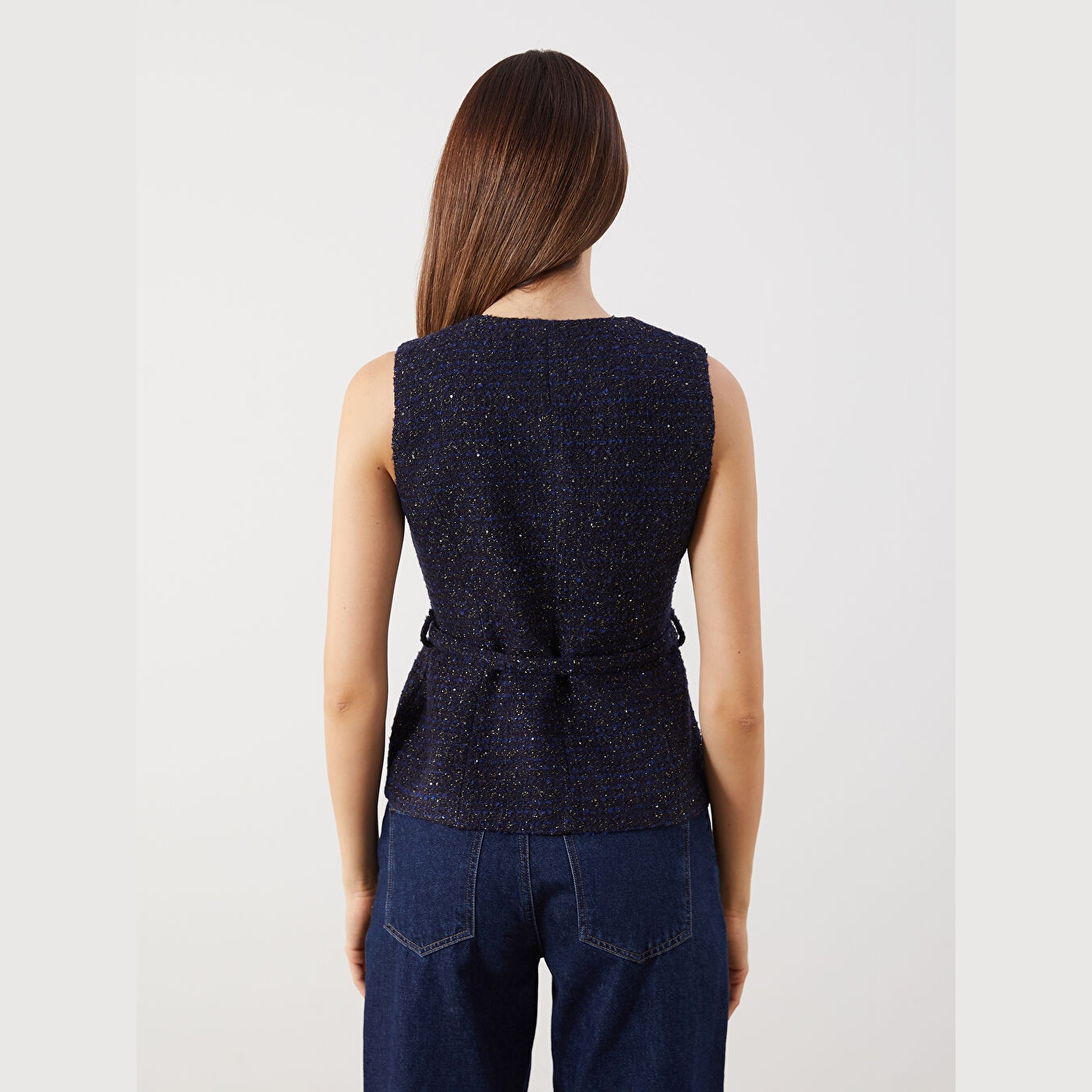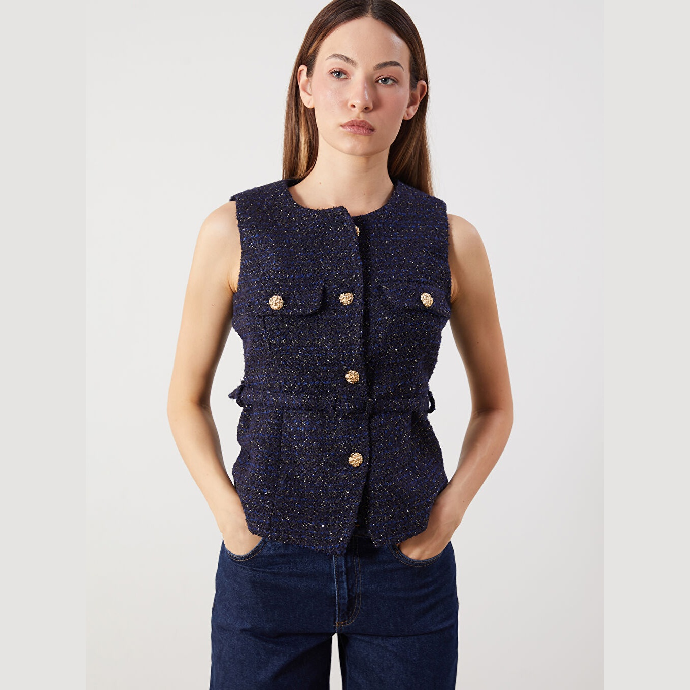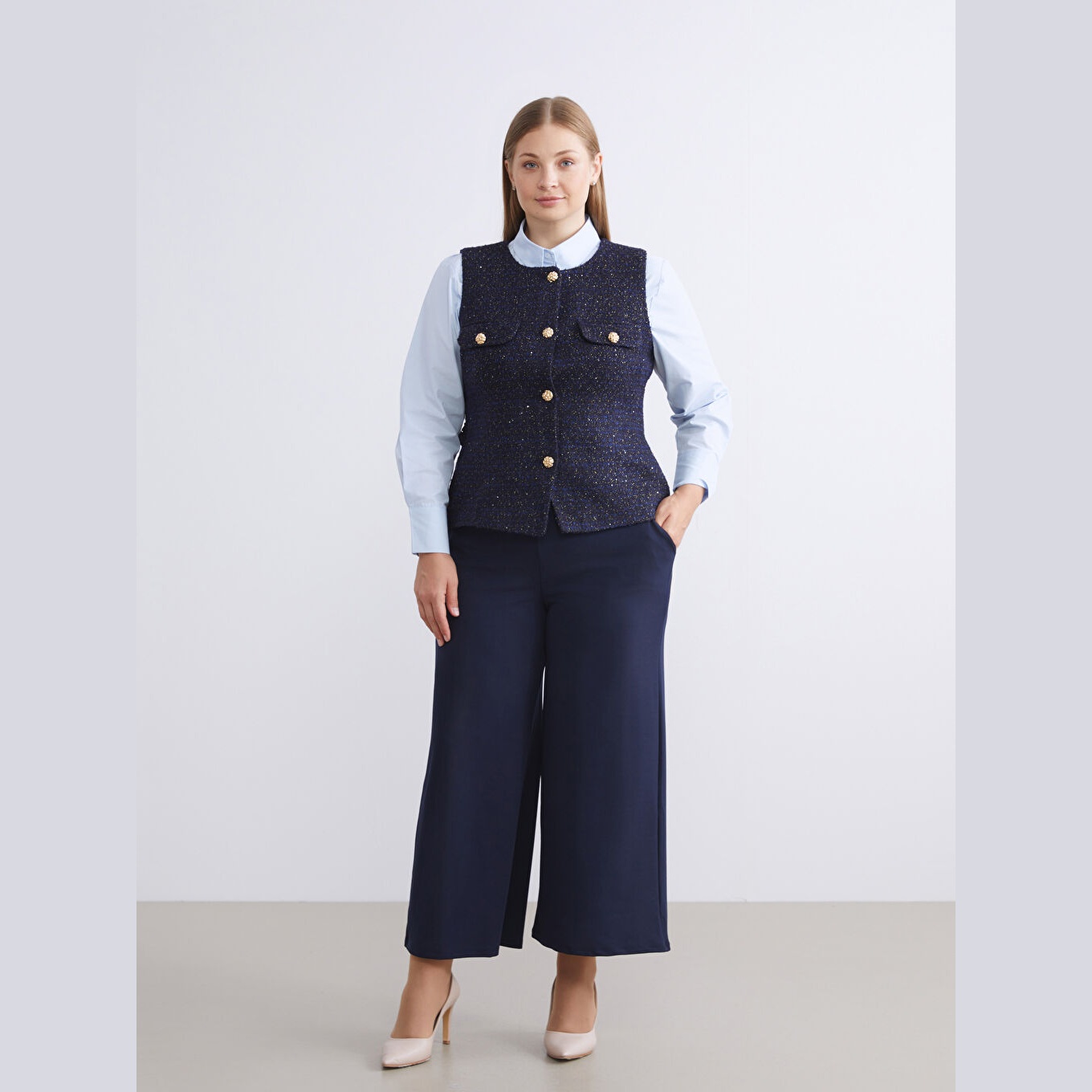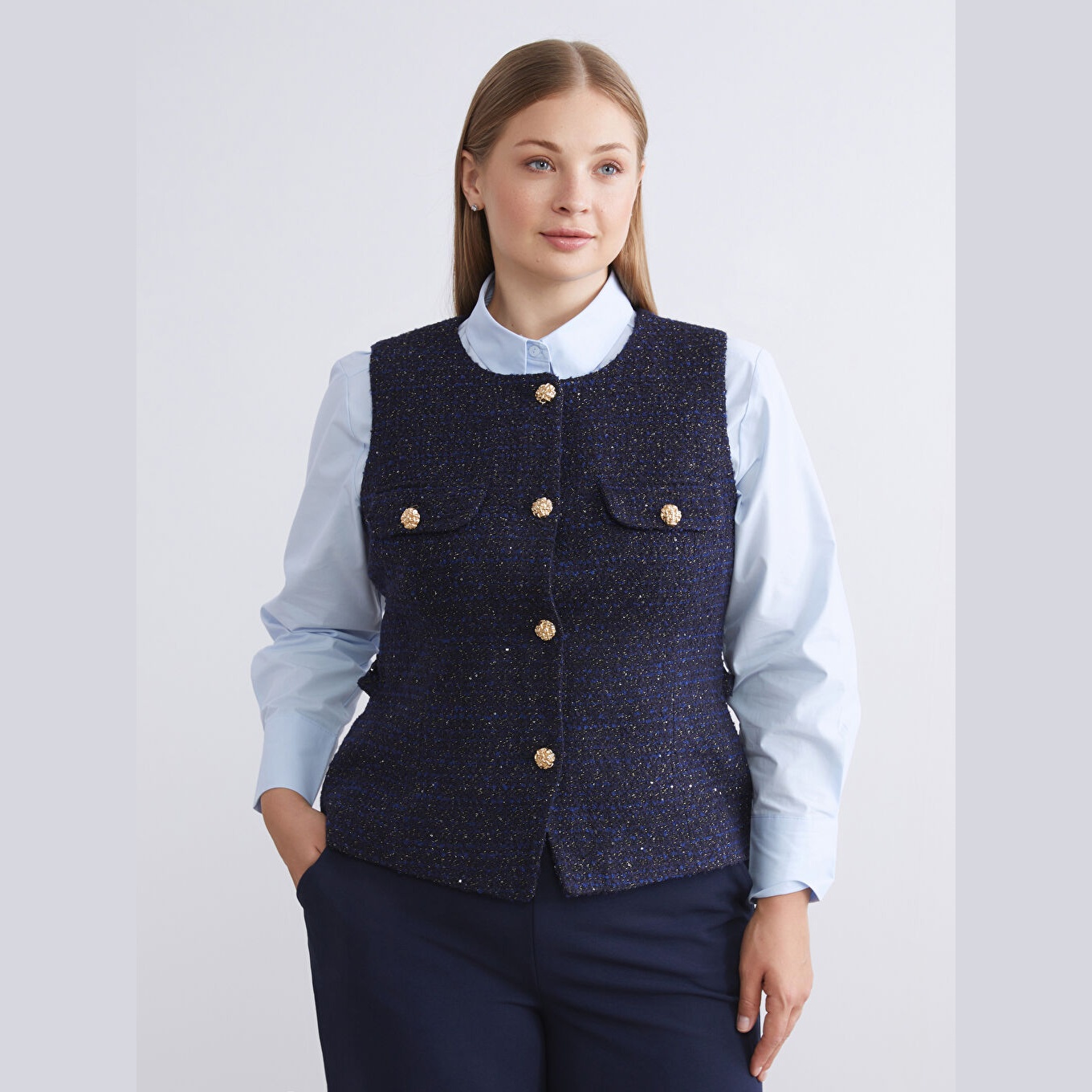 فيست شتوي بلون أزرق كلاسيكي من مجموعة LC Waikiki للمقاسات الكبيرة، يتميز بياقة دائرية أنيقة (Bisiklet Yaka) تضيف لمسة ناعمة، وقصة قياسية تمنحك مظهرًا متوازنًا ومحتشمًا. مصنوع من خامة بوليڤيسكون متينة بتركيبة غنية تشمل %68 أكريليك، %24 بوليستر، %2 فيسكون، %2 قطن، %2 بولياميد، %1 صوف، %1 خيط معدني، مع بطانة داخلية من %100 بوليستر، بدون أكمام، بسماكة شتوية متوسطة، بطول قصير يُقاس من الكتف، ويأتي ضمن طقم مكوّن من قطعتين مع كِمر مرفق لإبراز الخصر وتنسيق الإطلالة.